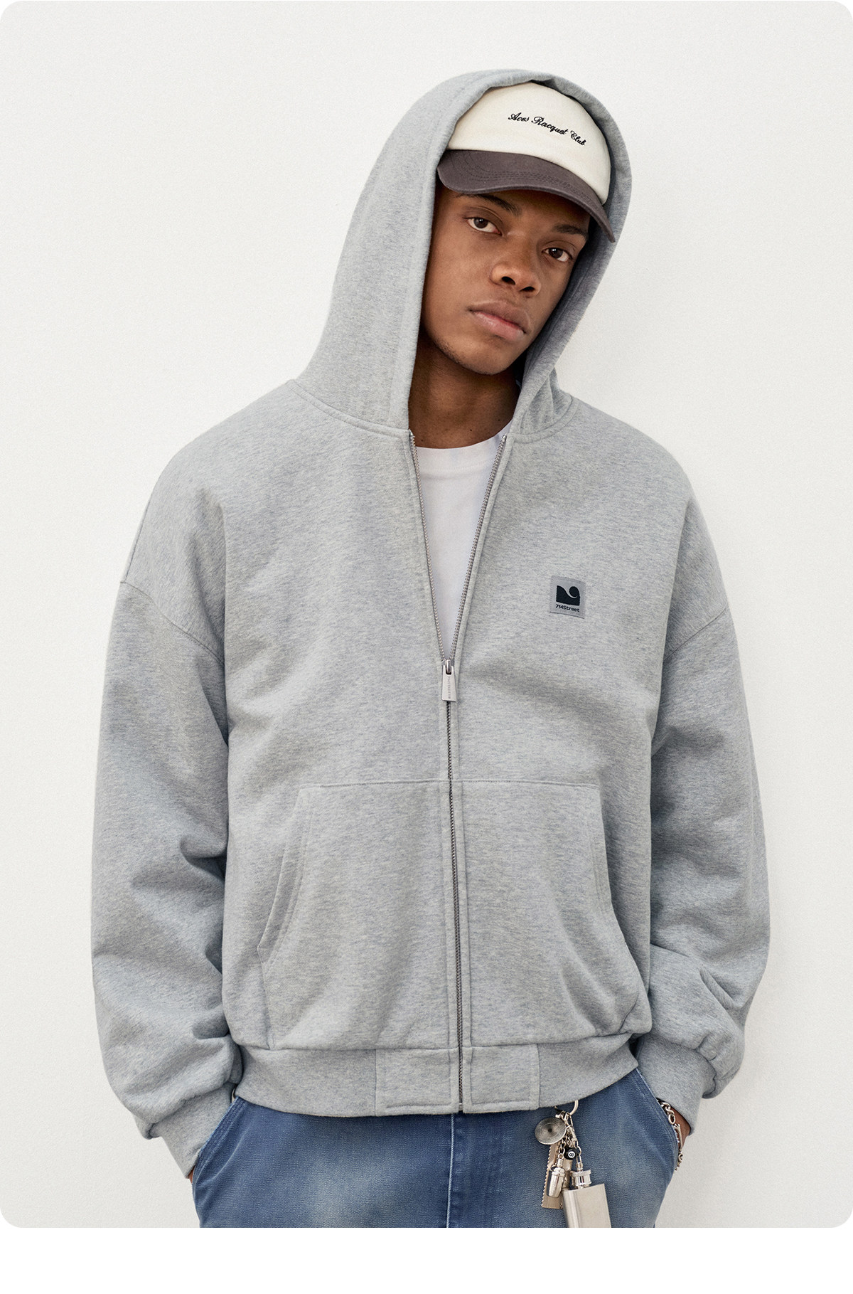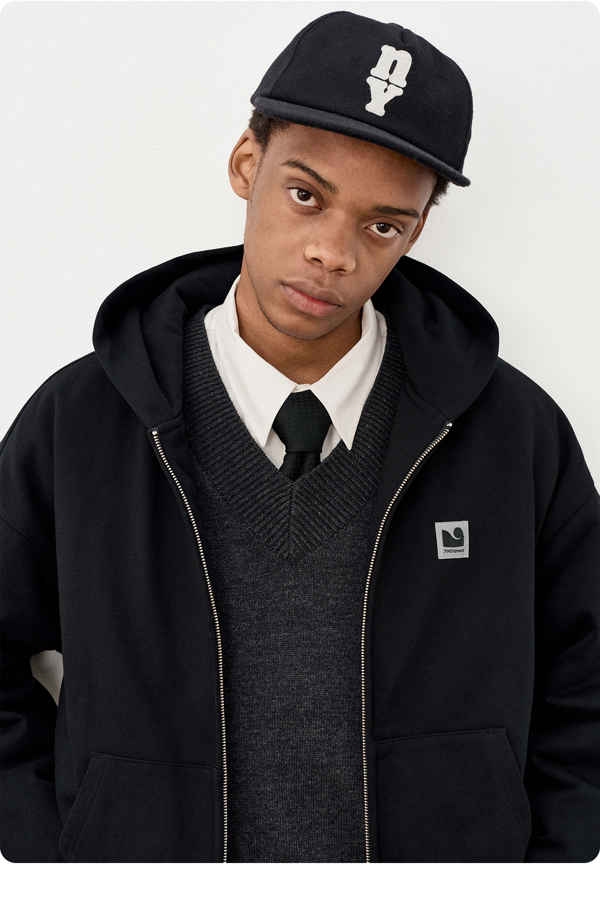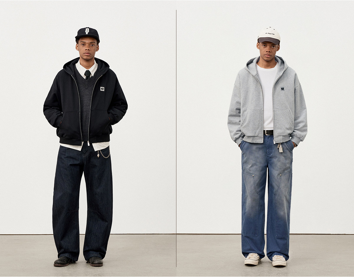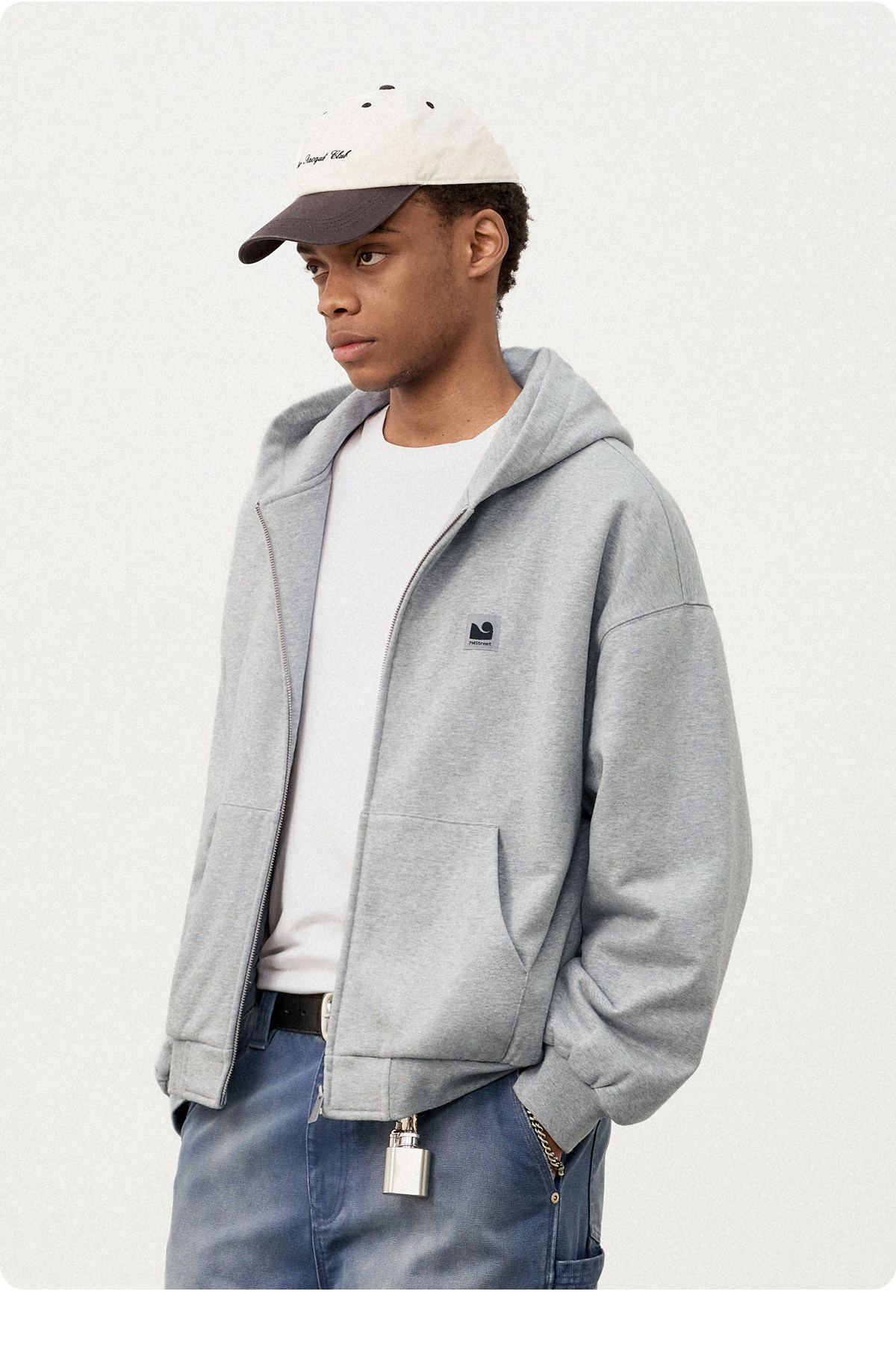 714street日系连帽卫衣开衫2025冬季潮牌夹棉外套宽松针织棉服男