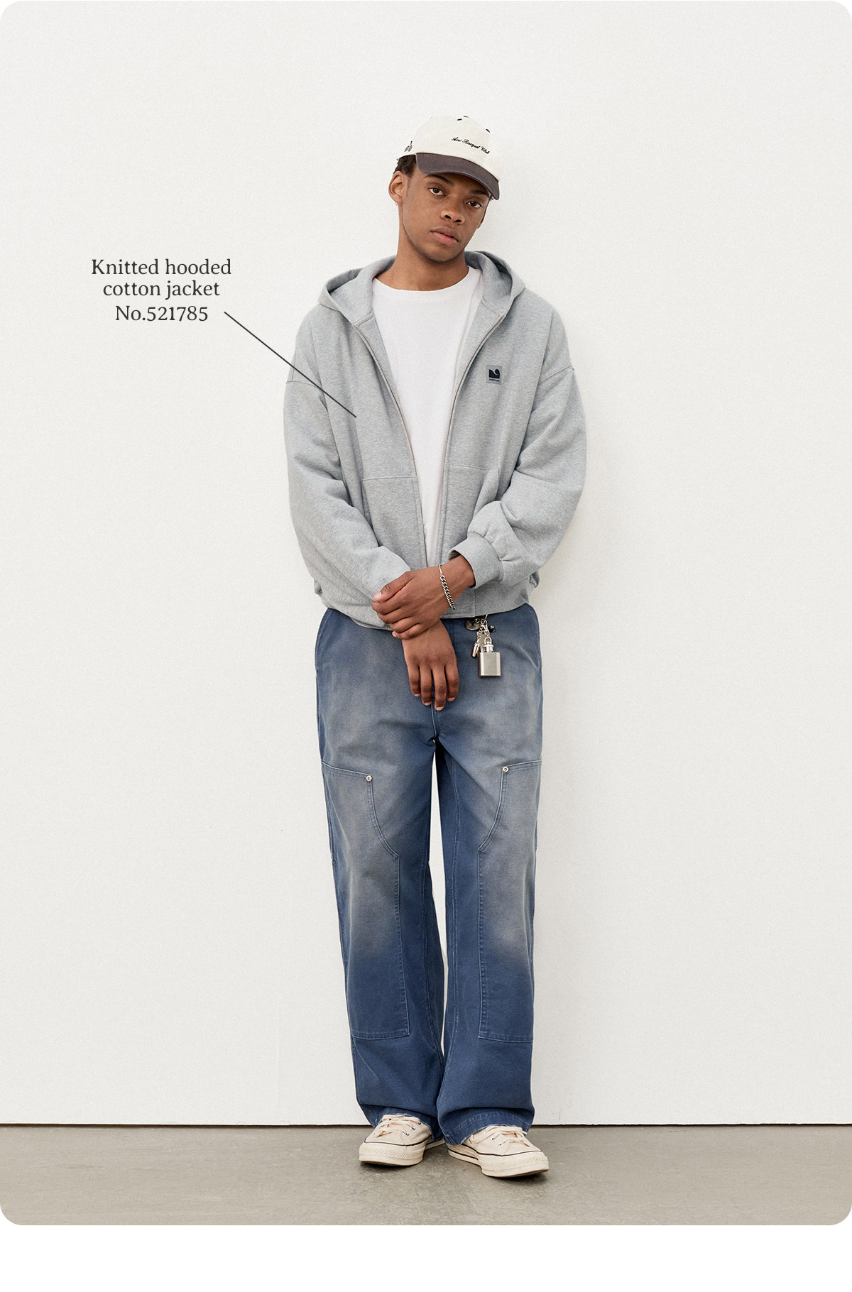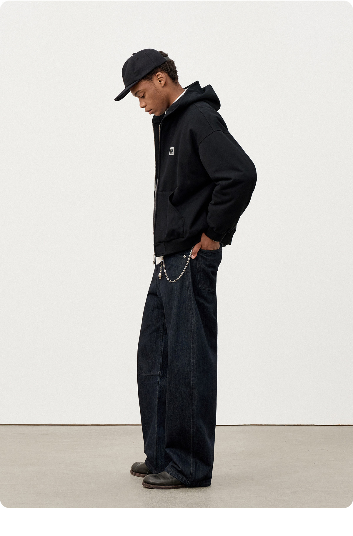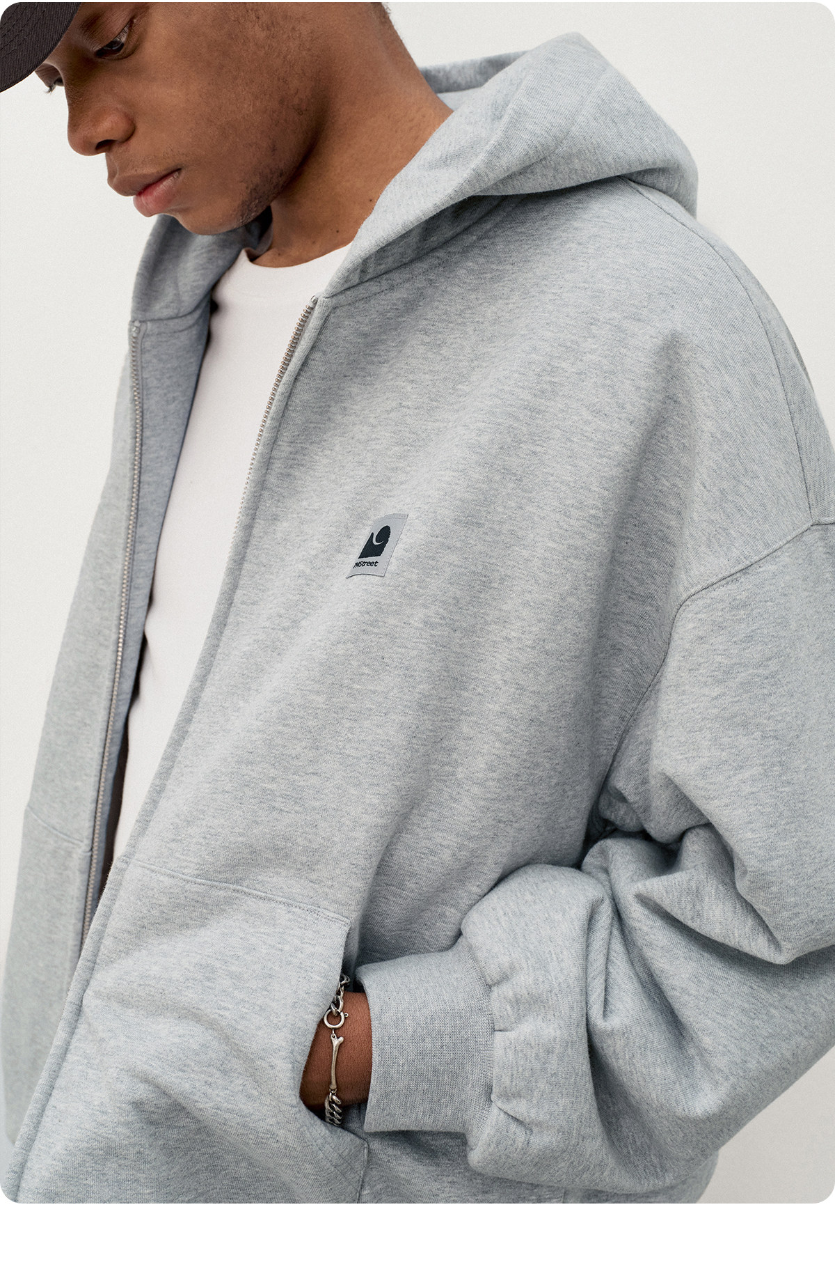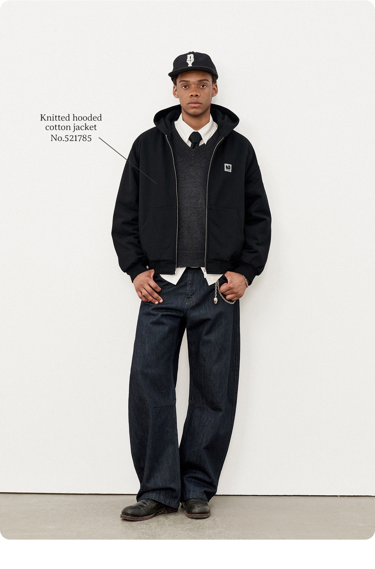 714street日系连帽卫衣开衫2025冬季潮牌夹棉外套宽松针织棉服男