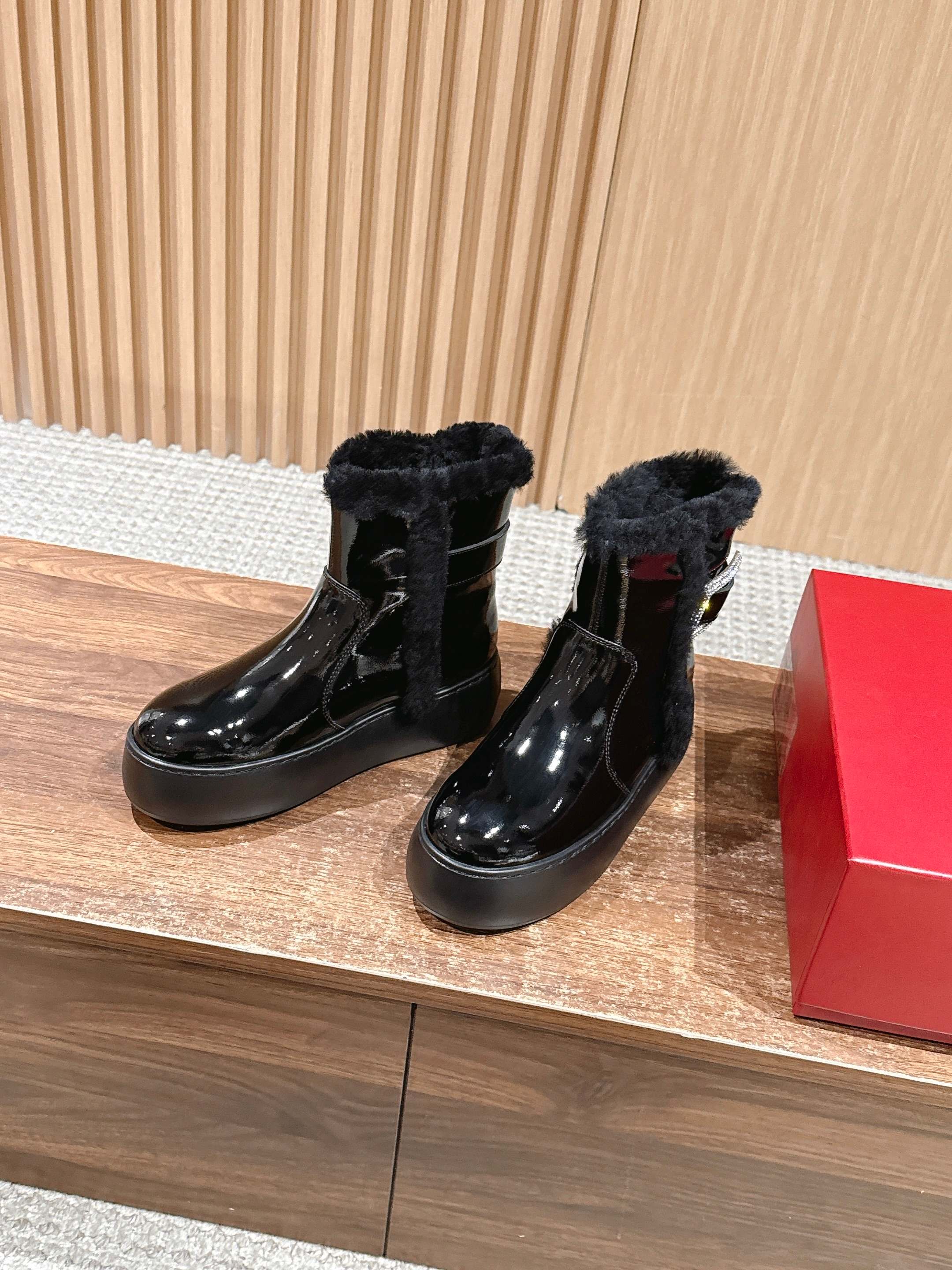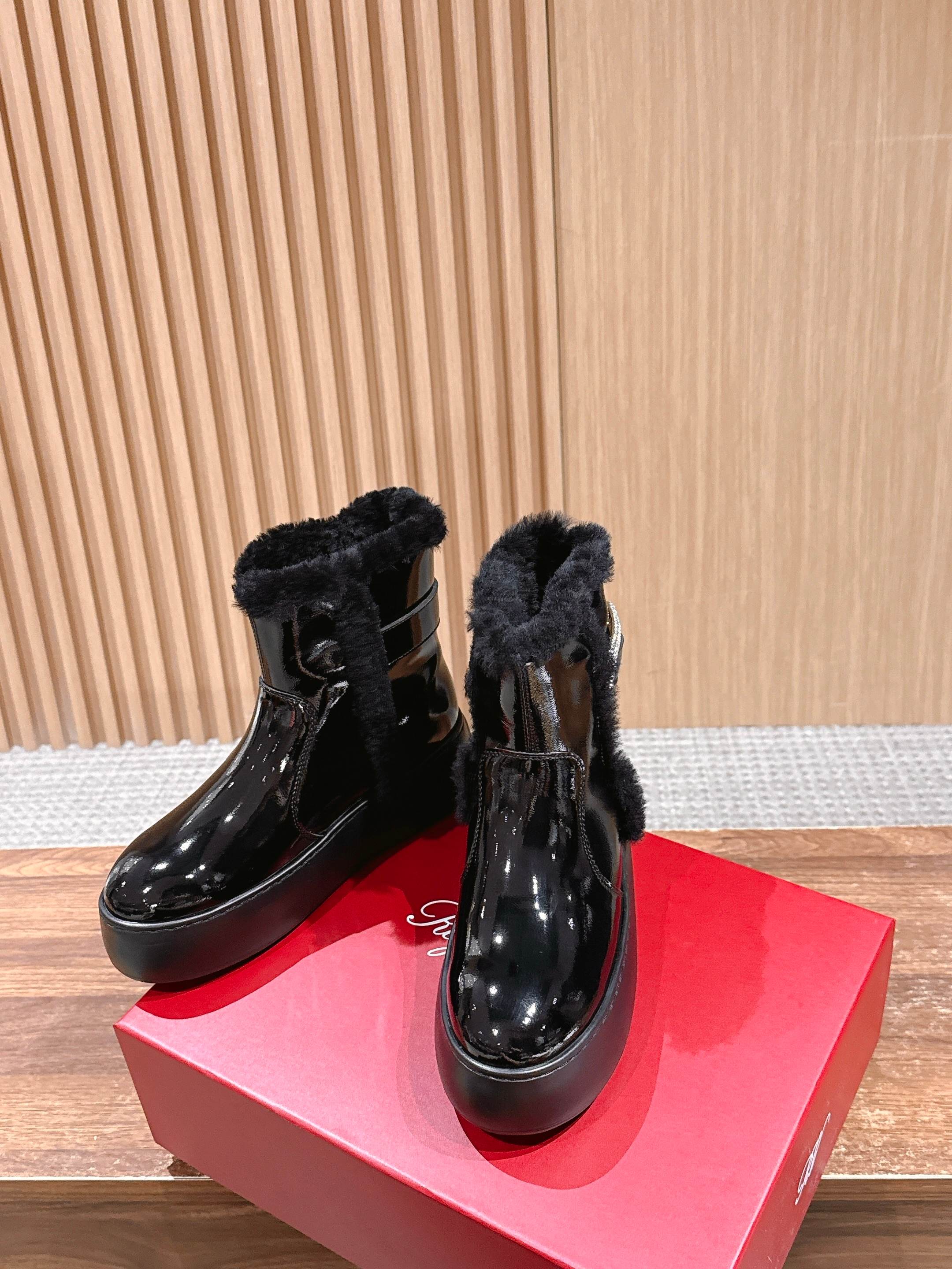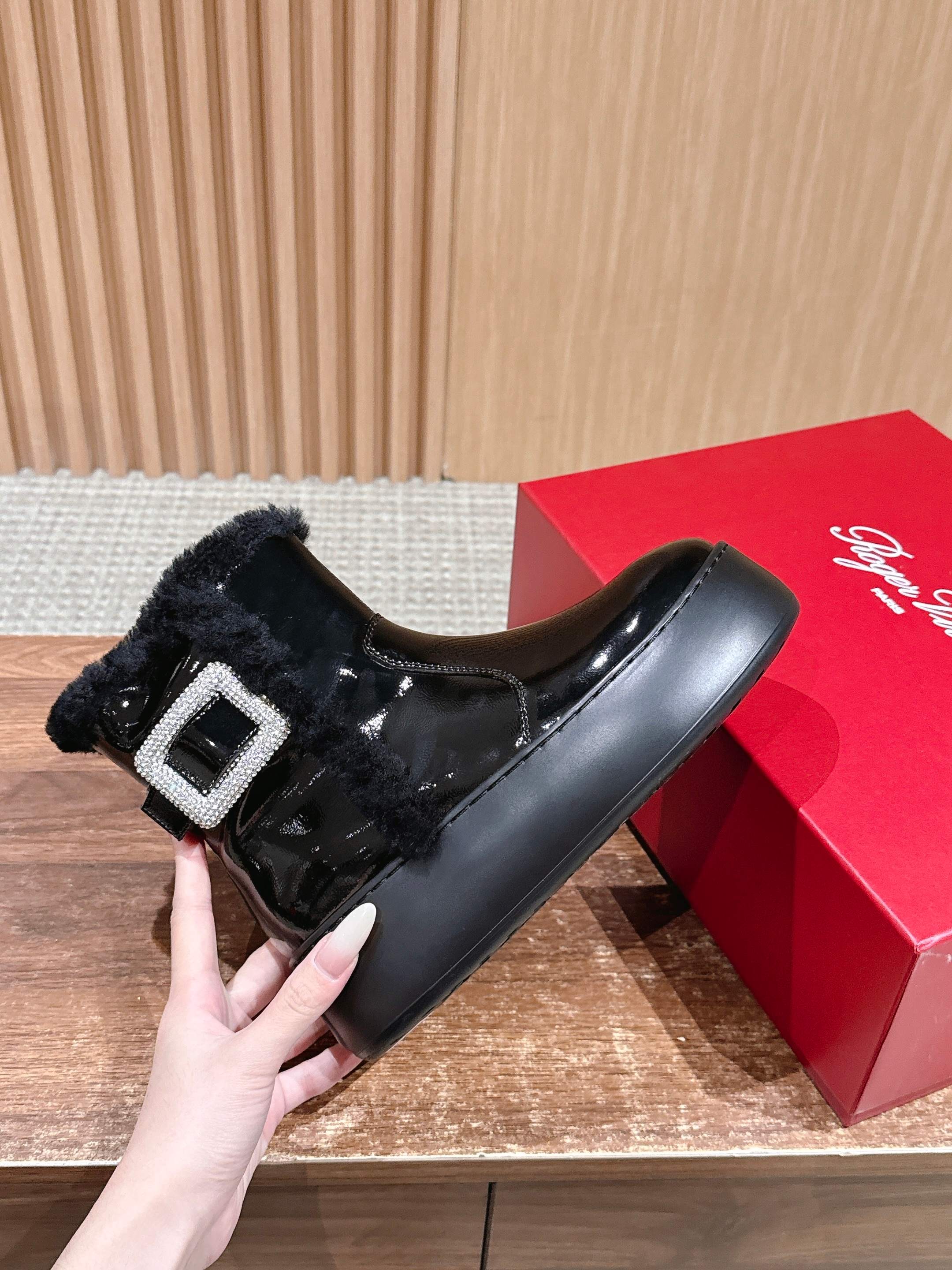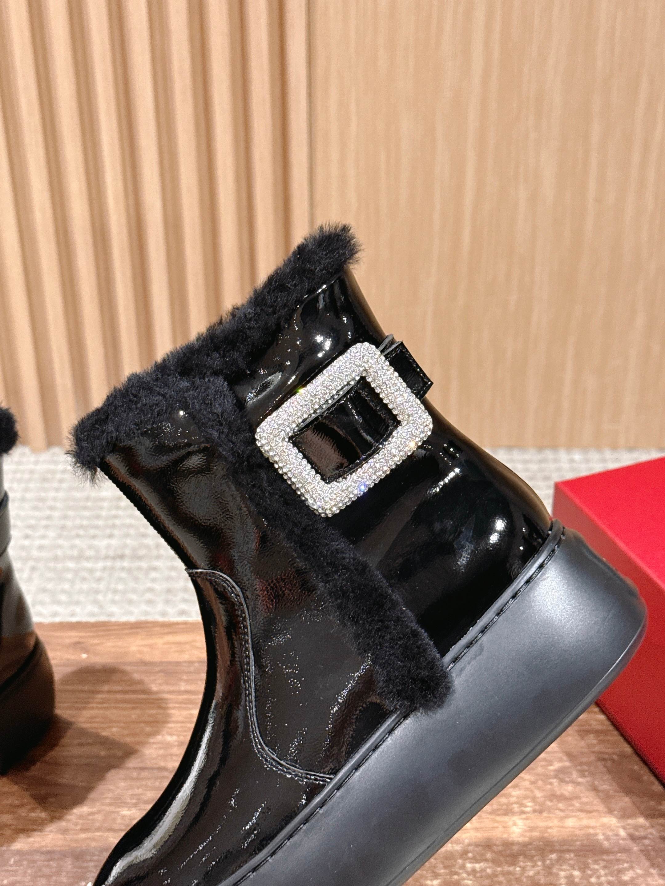 𝐑𝐎𝐆𝐄𝐑 𝐕𝐈𝐕𝐈𝐄𝐑#罗杰维维亚秋冬新款雪地靴 油蜡皮 鞋面设计 有光泽感 同时兼并 时尚与潮流 点缀 经典 方形钻扣。增高5cm 轻质外底,舒适与高度并存 走过路过不要错过~ Size:35-39(40定制不退换)