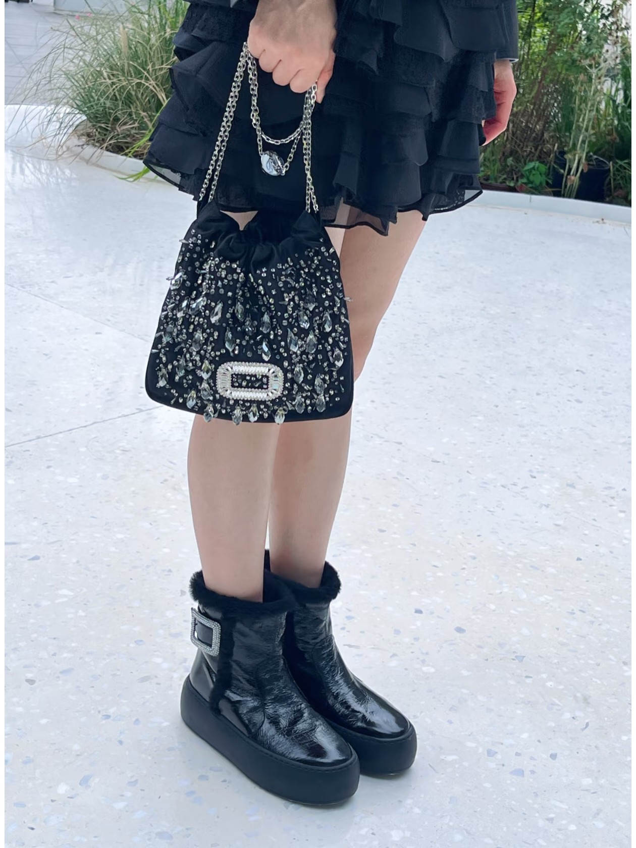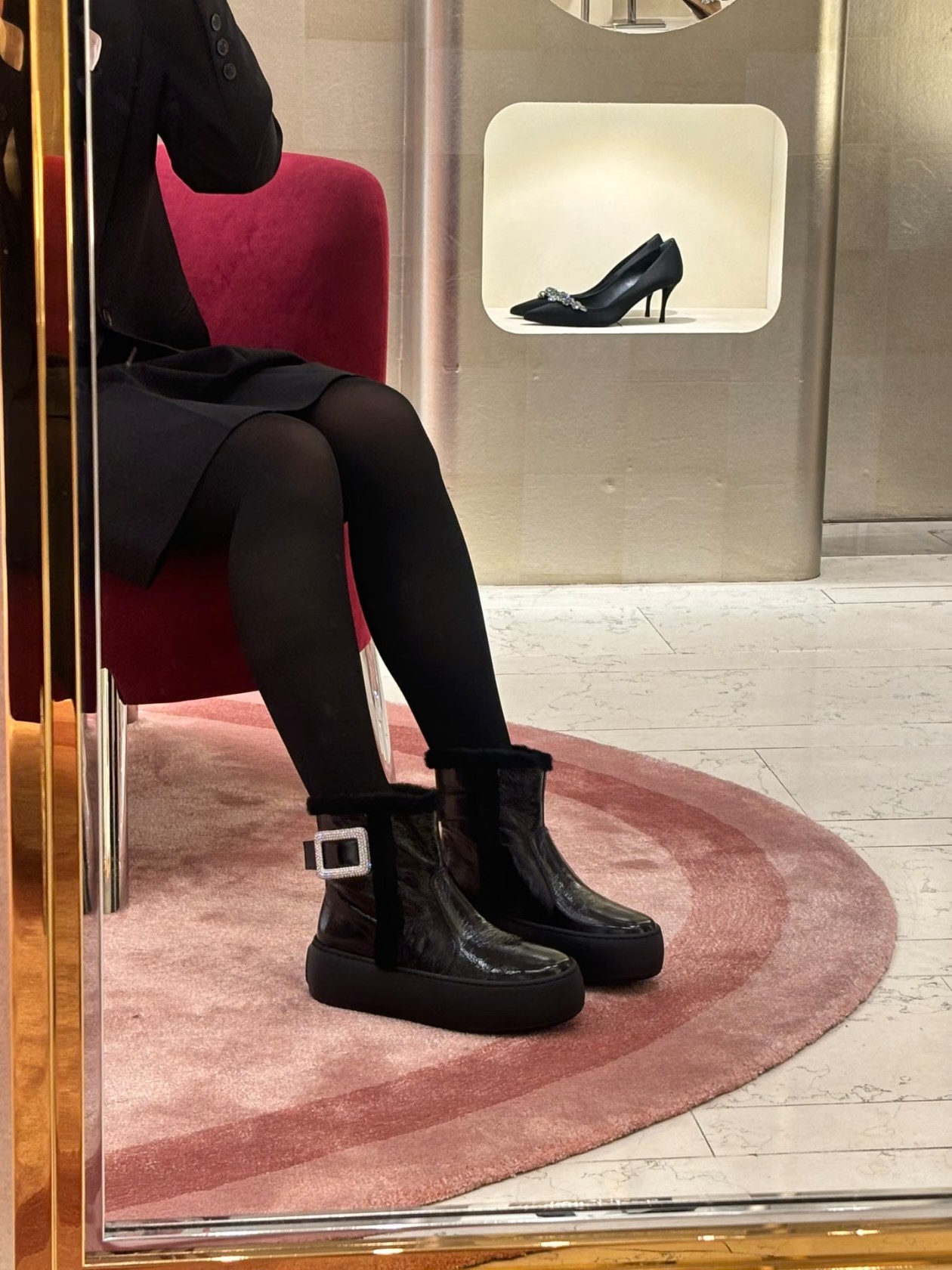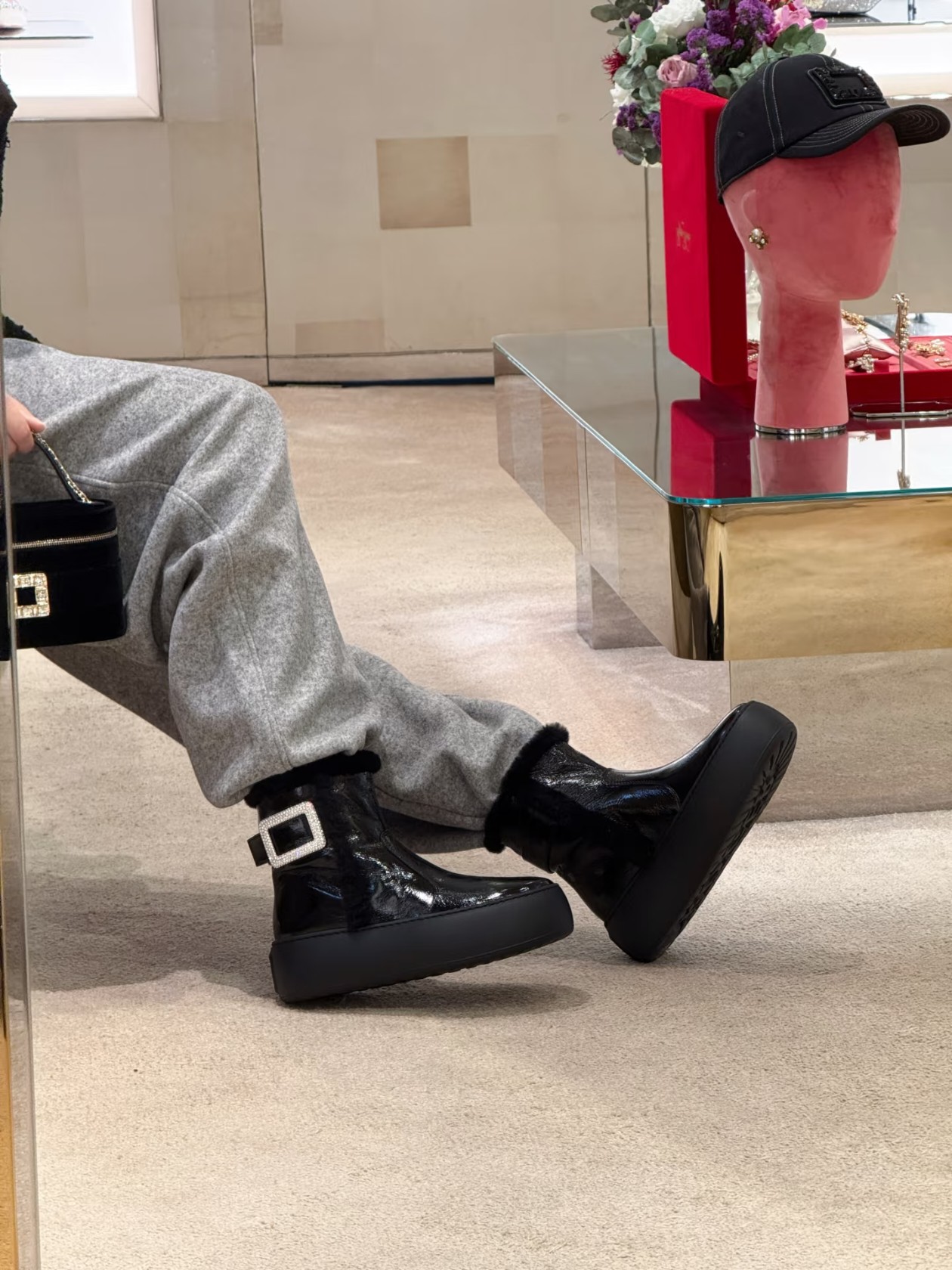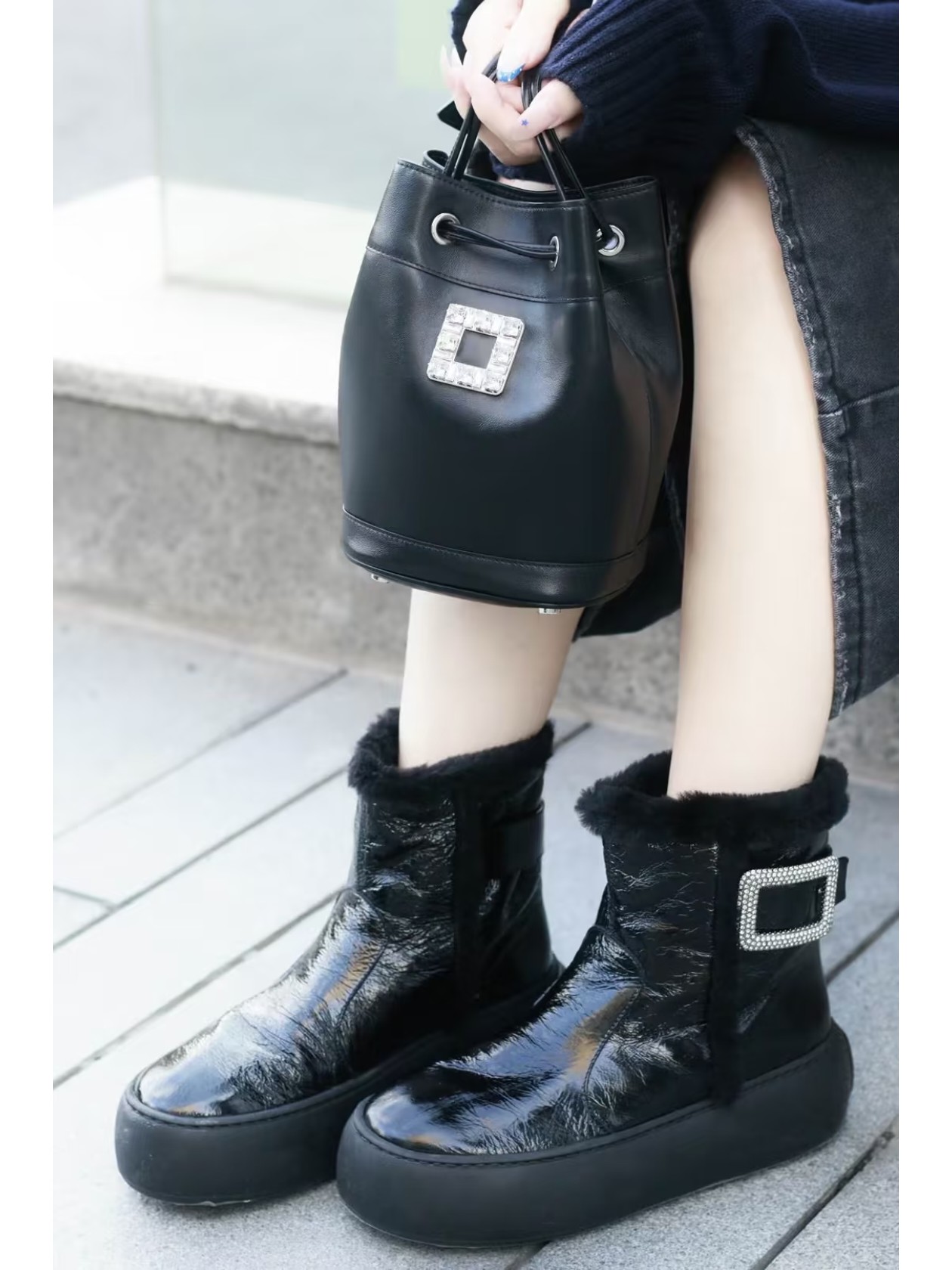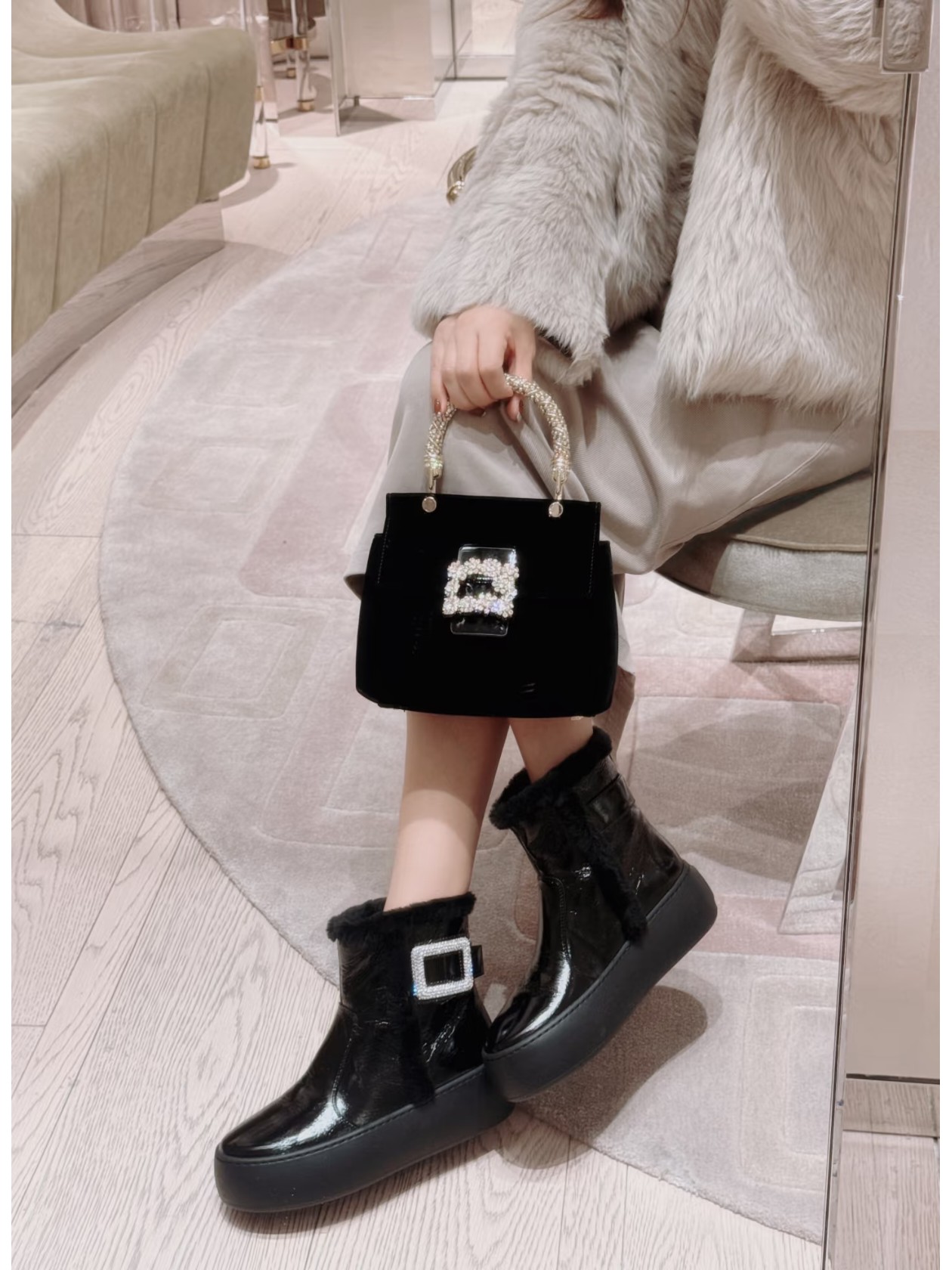 𝐑𝐎𝐆𝐄𝐑 𝐕𝐈𝐕𝐈𝐄𝐑#罗杰维维亚秋冬新款雪地靴 油蜡皮 鞋面设计 有光泽感 同时兼并 时尚与潮流 点缀 经典 方形钻扣。增高5cm 轻质外底,舒适与高度并存 走过路过不要错过~ Size:35-39(40定制不退换)