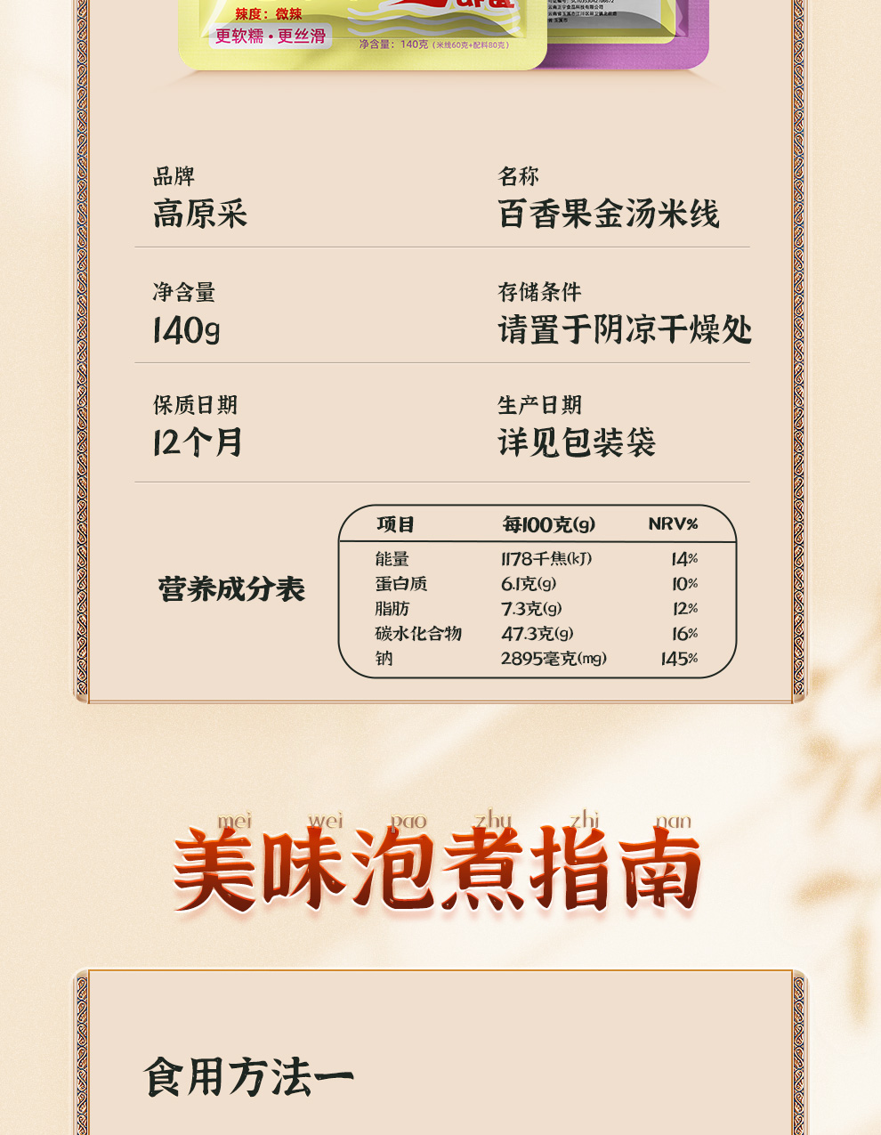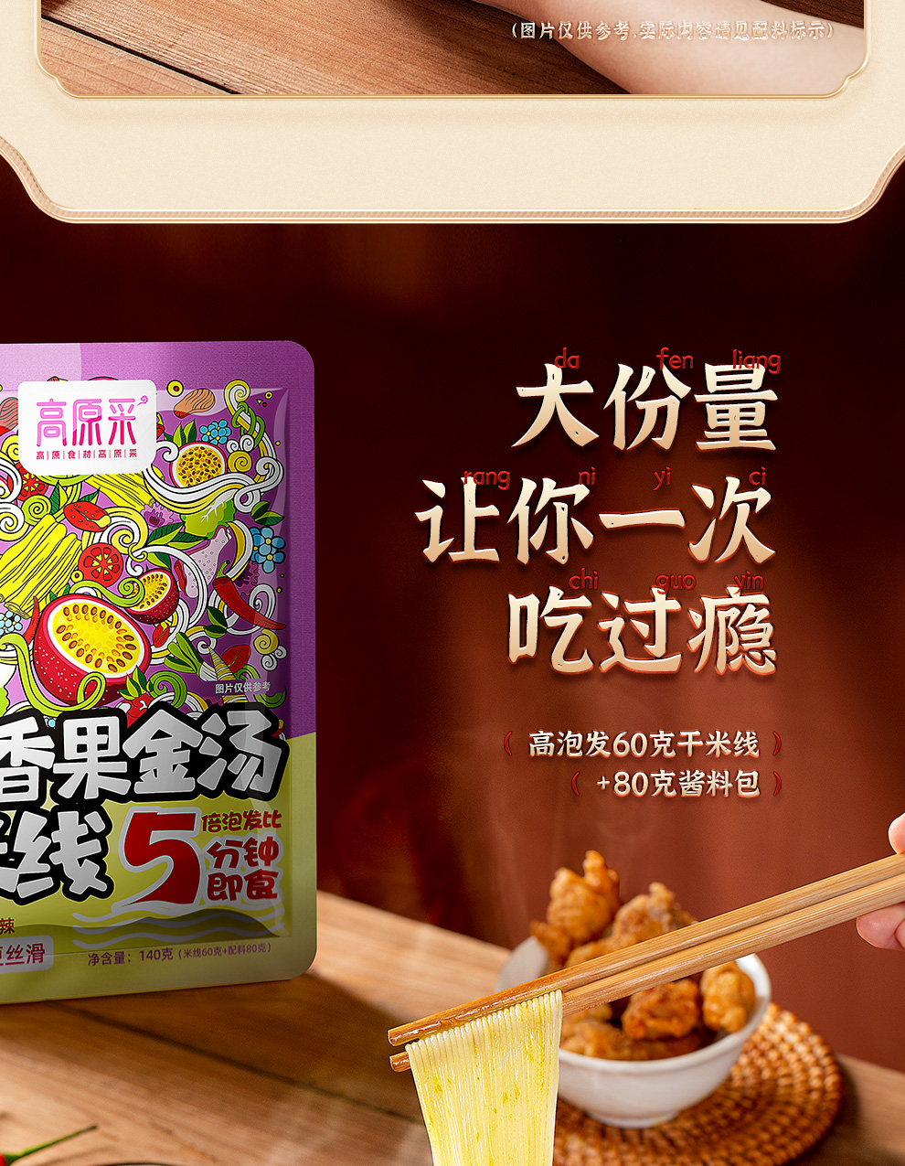 【高原采】 💞惠享版💞 百香果金汤干米线 袋装140g 果香四溢 酸爽开胃