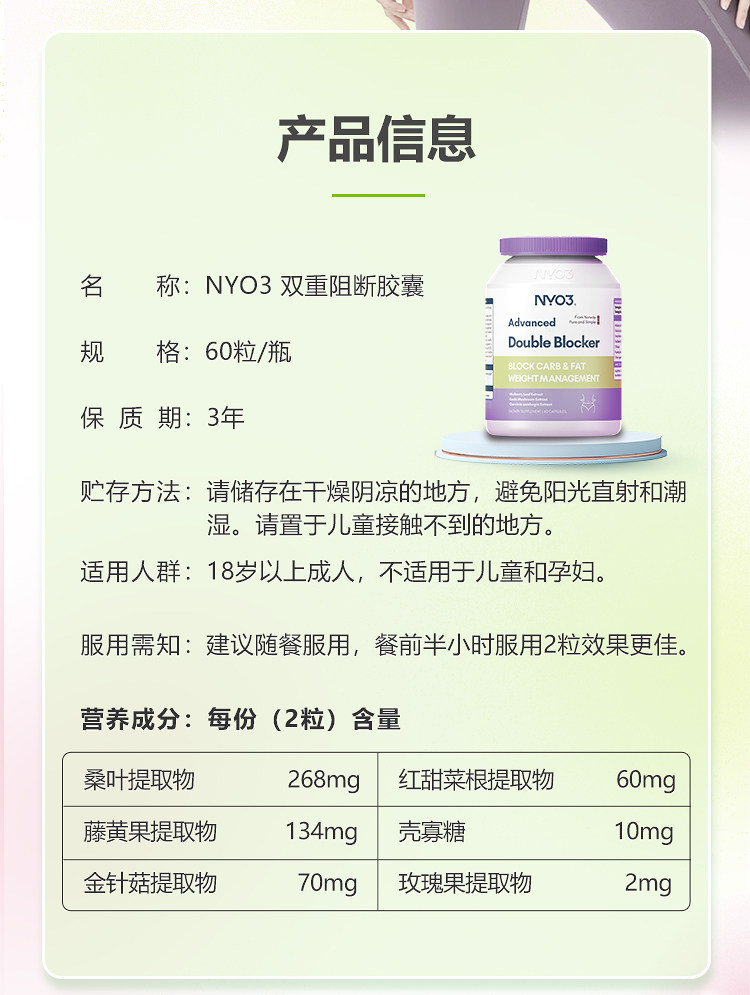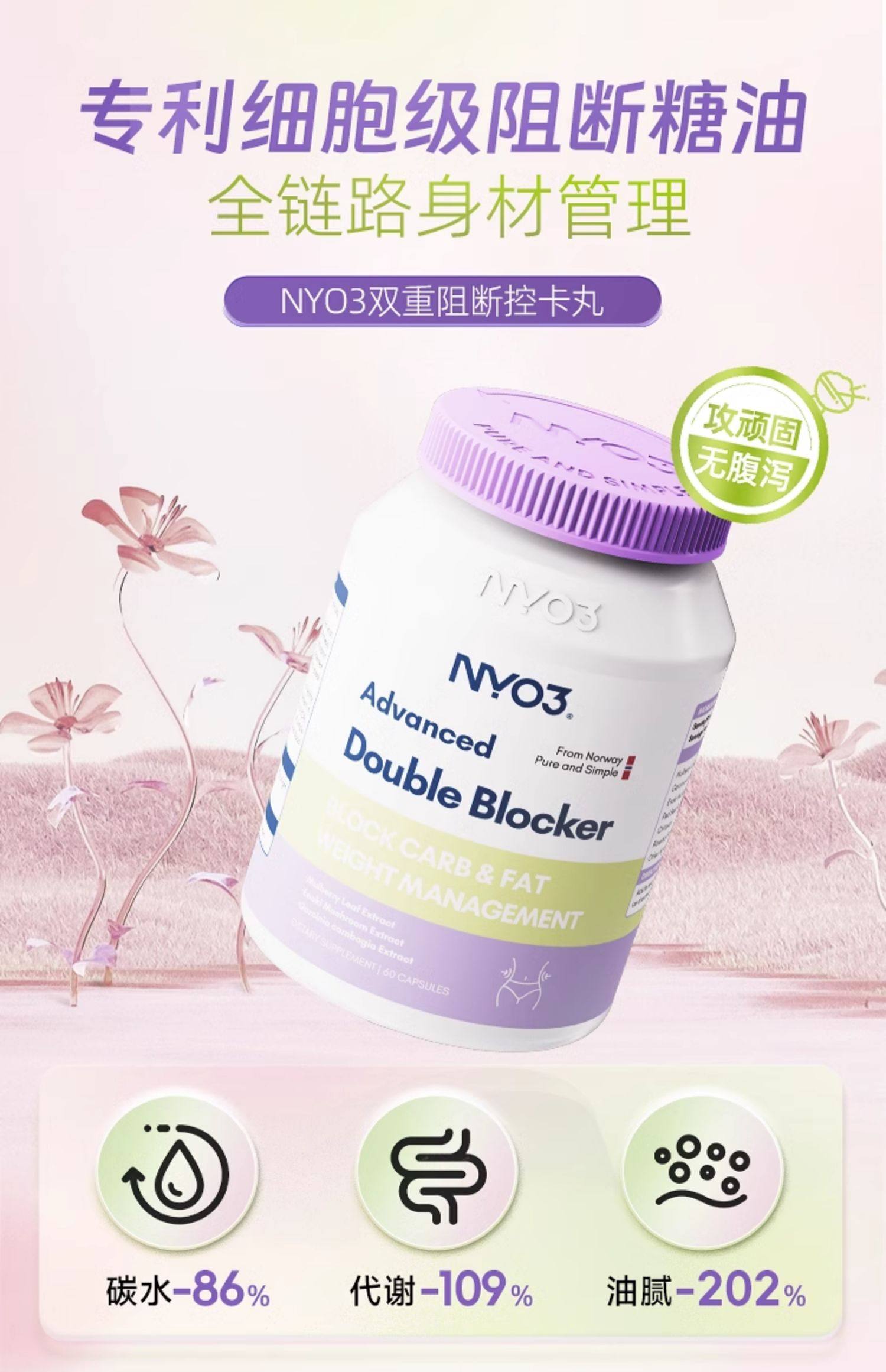 挪威NYO3双阻控卡丸控糖肚腩阻断碳水脂肪纯植物阻断碳水卡路里