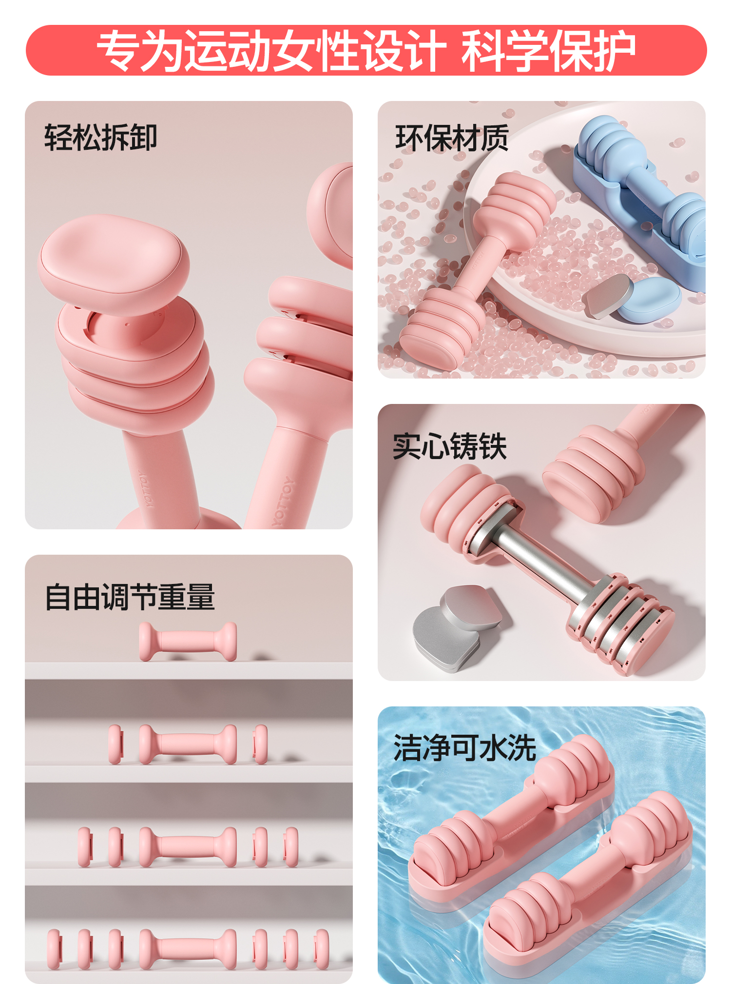 哑铃女士可调节重量健身家用2kg5kg一对杠铃棒铃实心铸铁铃壶器材