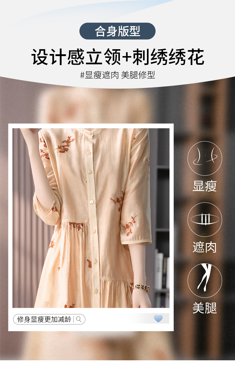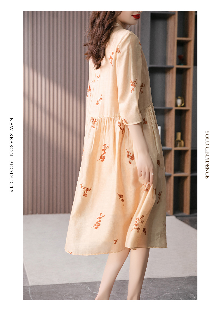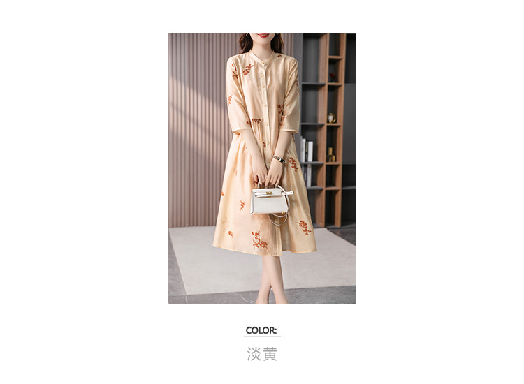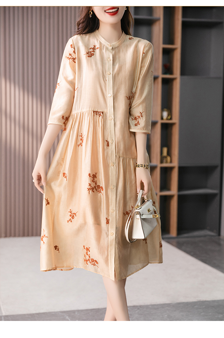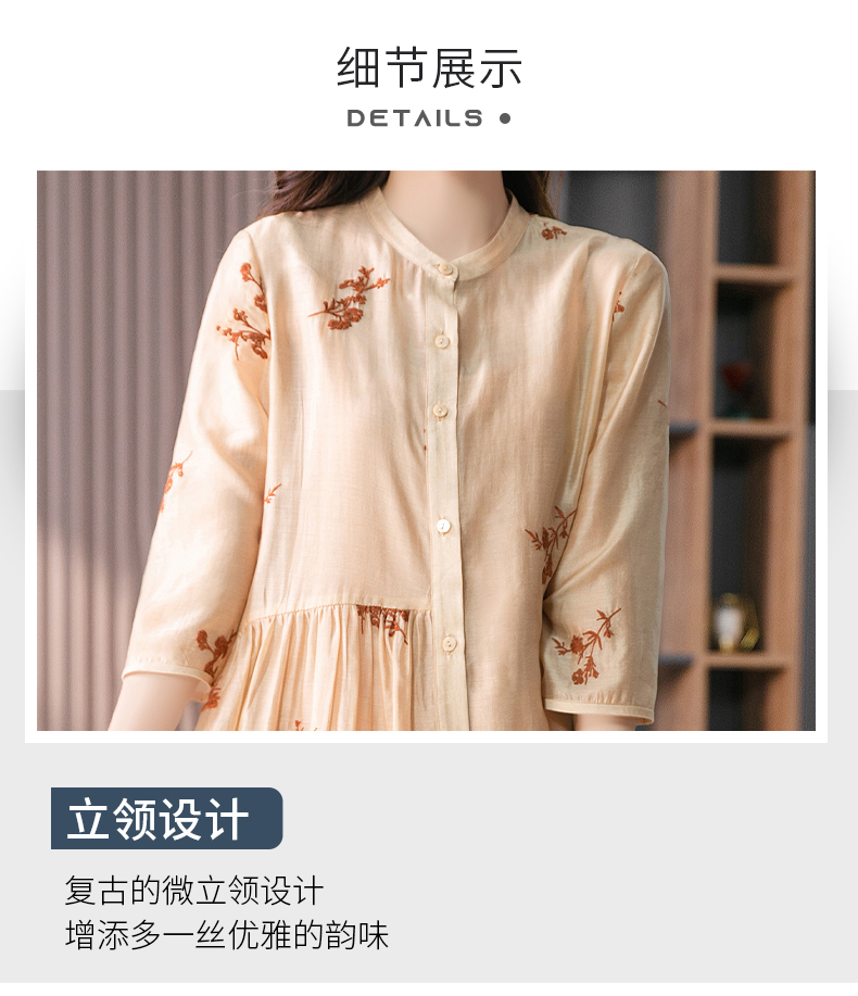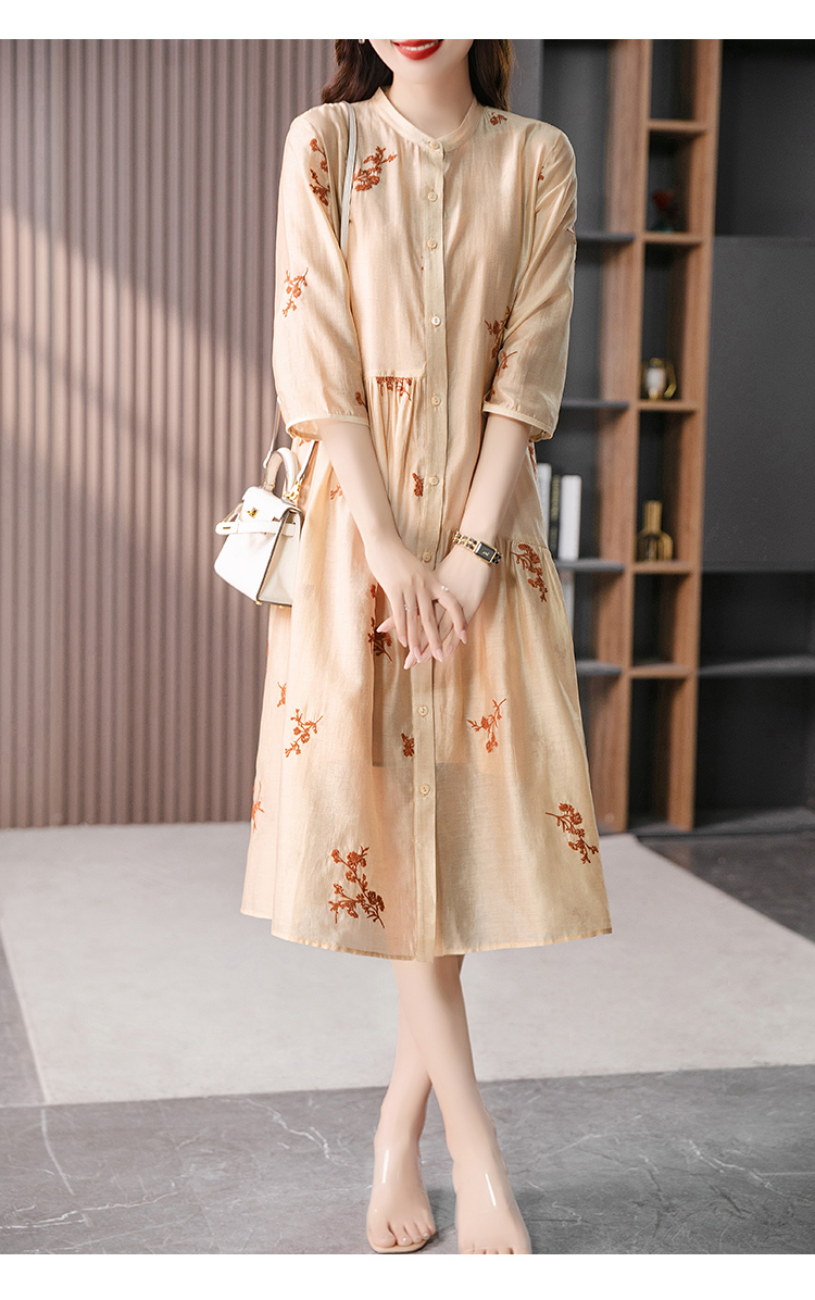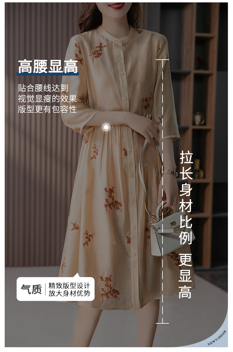 YX【现货7天】设计感立领刺绣绣花连衣裙女2023夏季新款韩版长款衬衫裙子