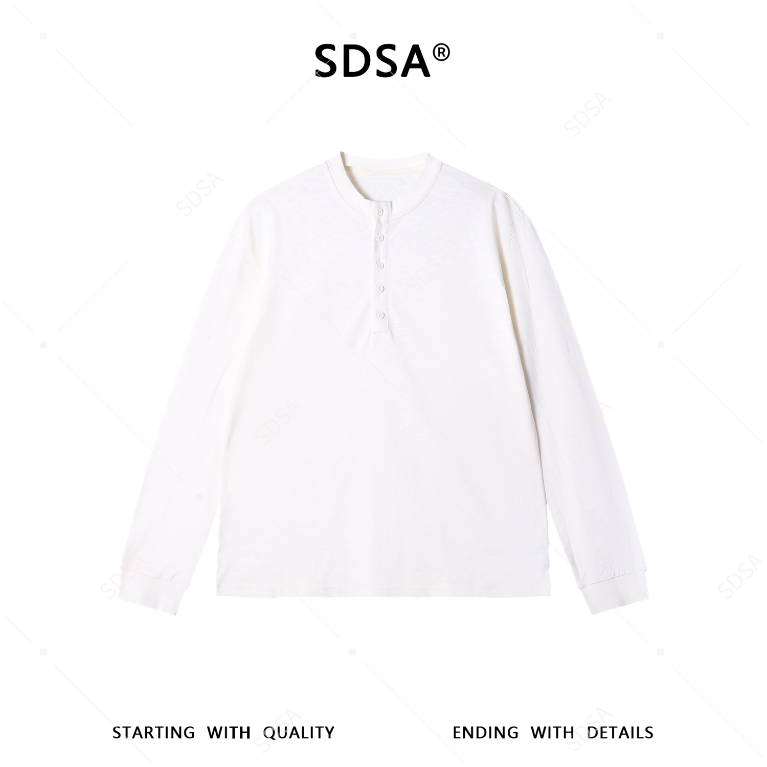 88057SDSA男装2026新款高贵轻奢韩版纯色百搭透气半纽扣圆领长袖T恤潮