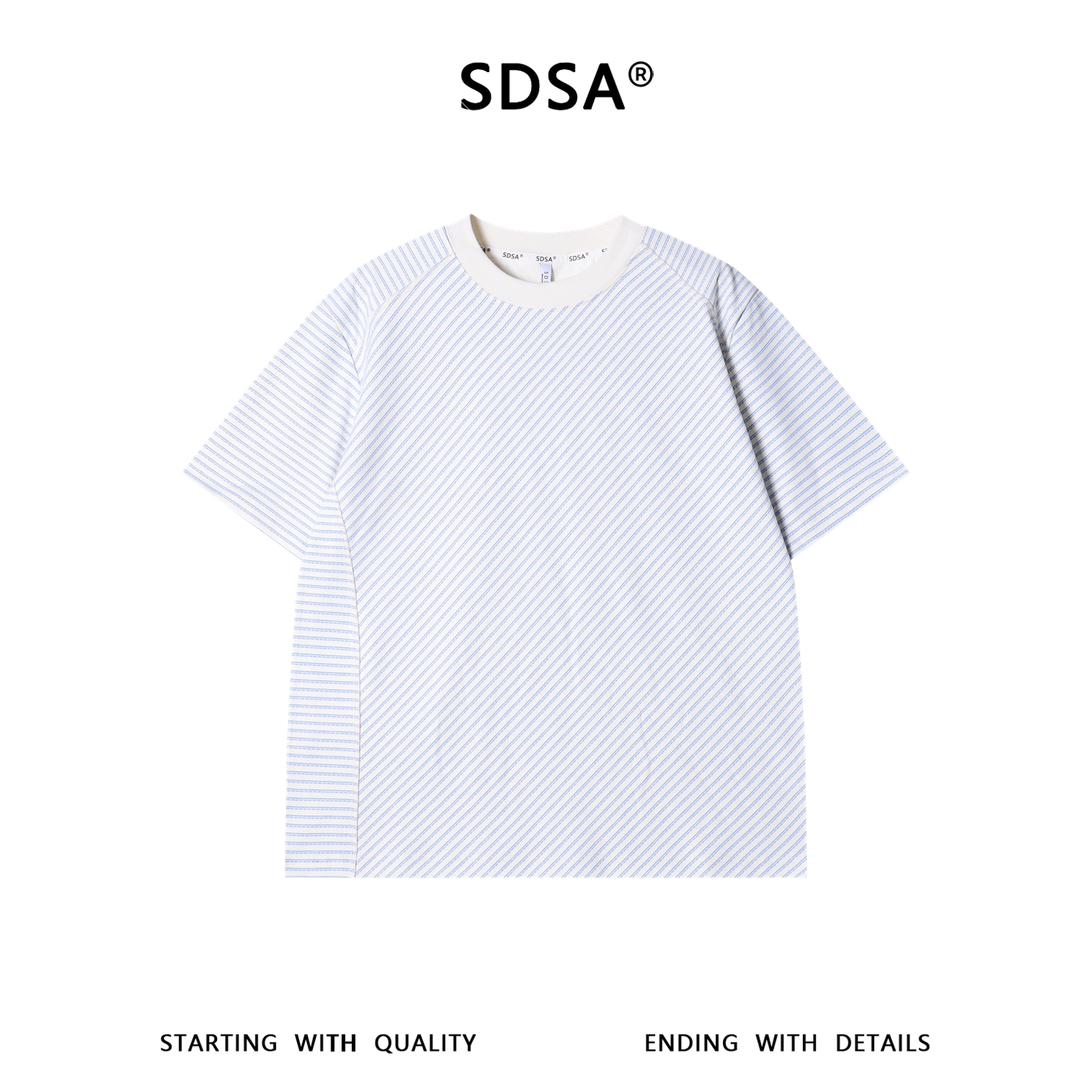 SDSA男装2026新款高贵轻奢潮牌复古撞色斜纹圆领短袖T恤百搭上衣