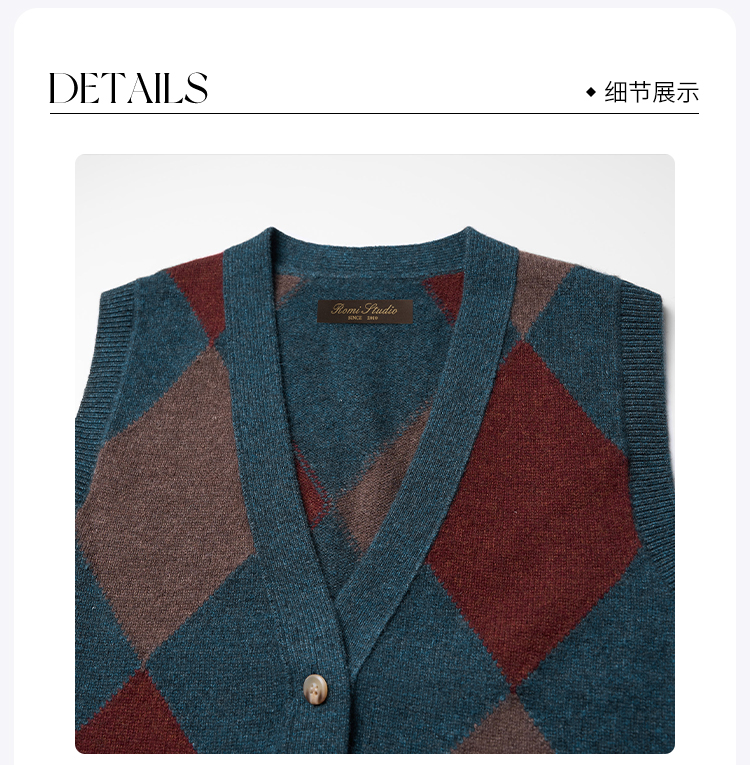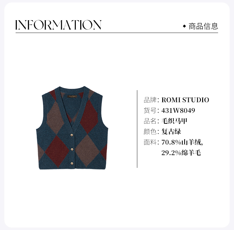 ROMI STUDIO“法式优雅”山羊 绒绵羊毛混纺绒面格纹马甲 431W8049