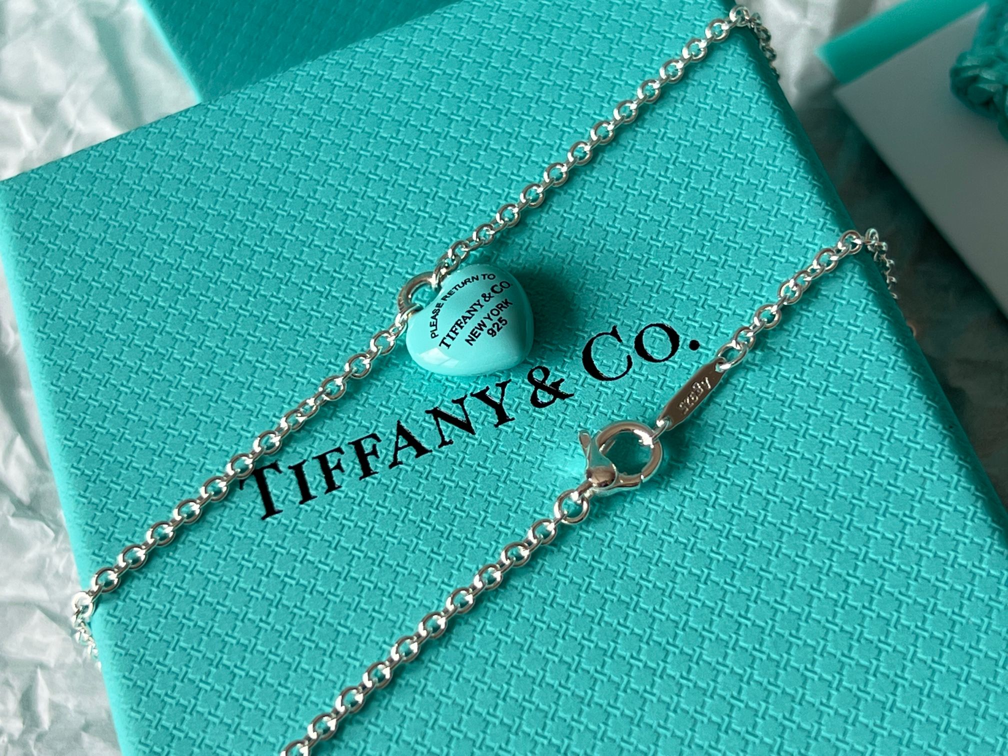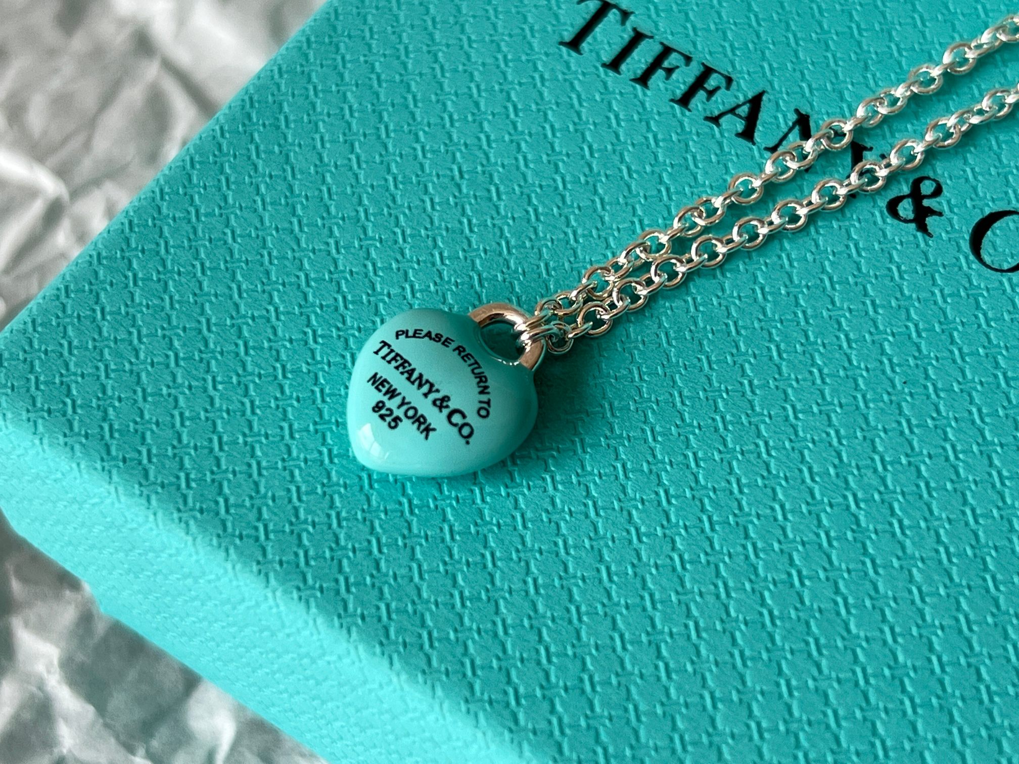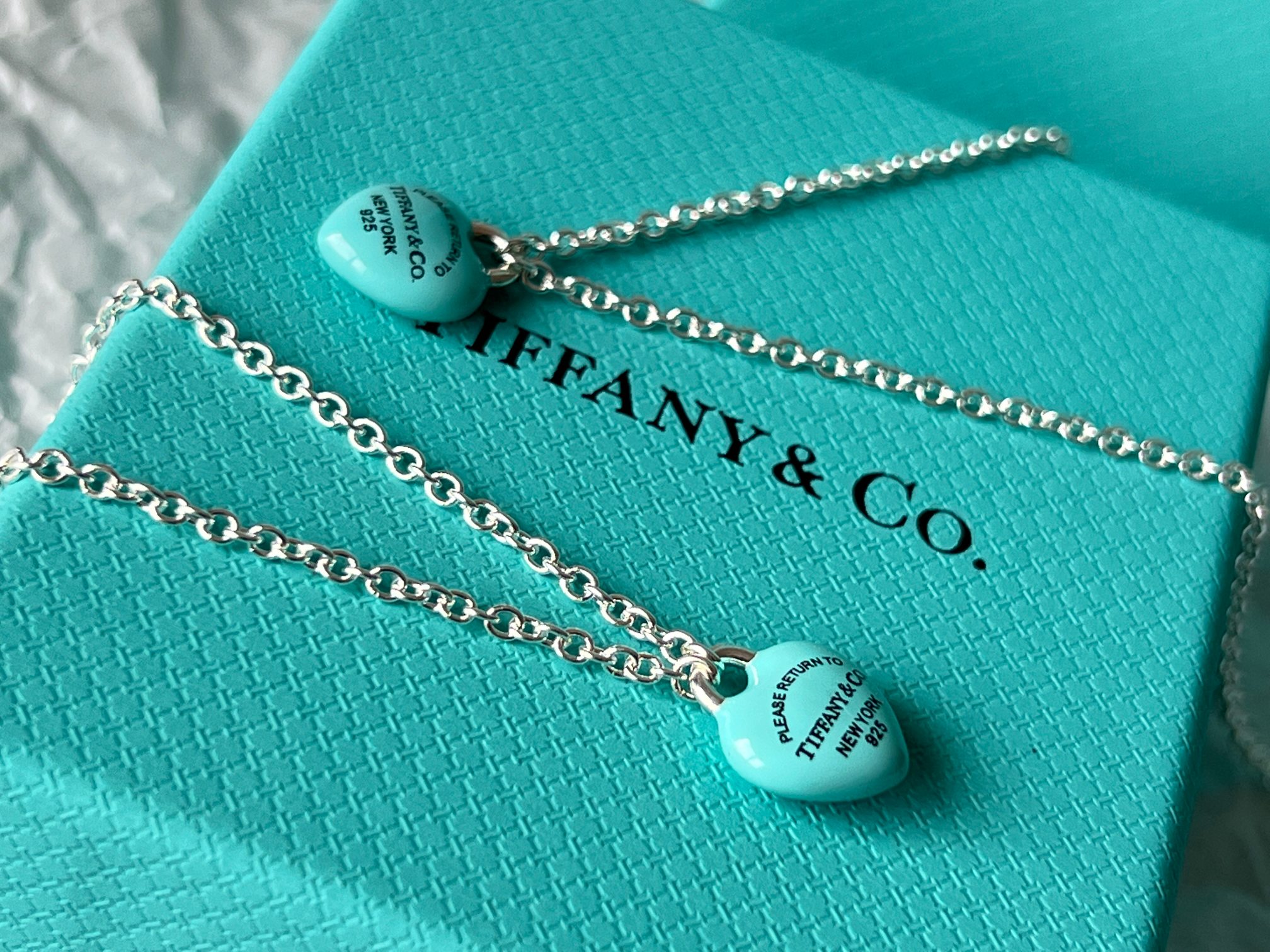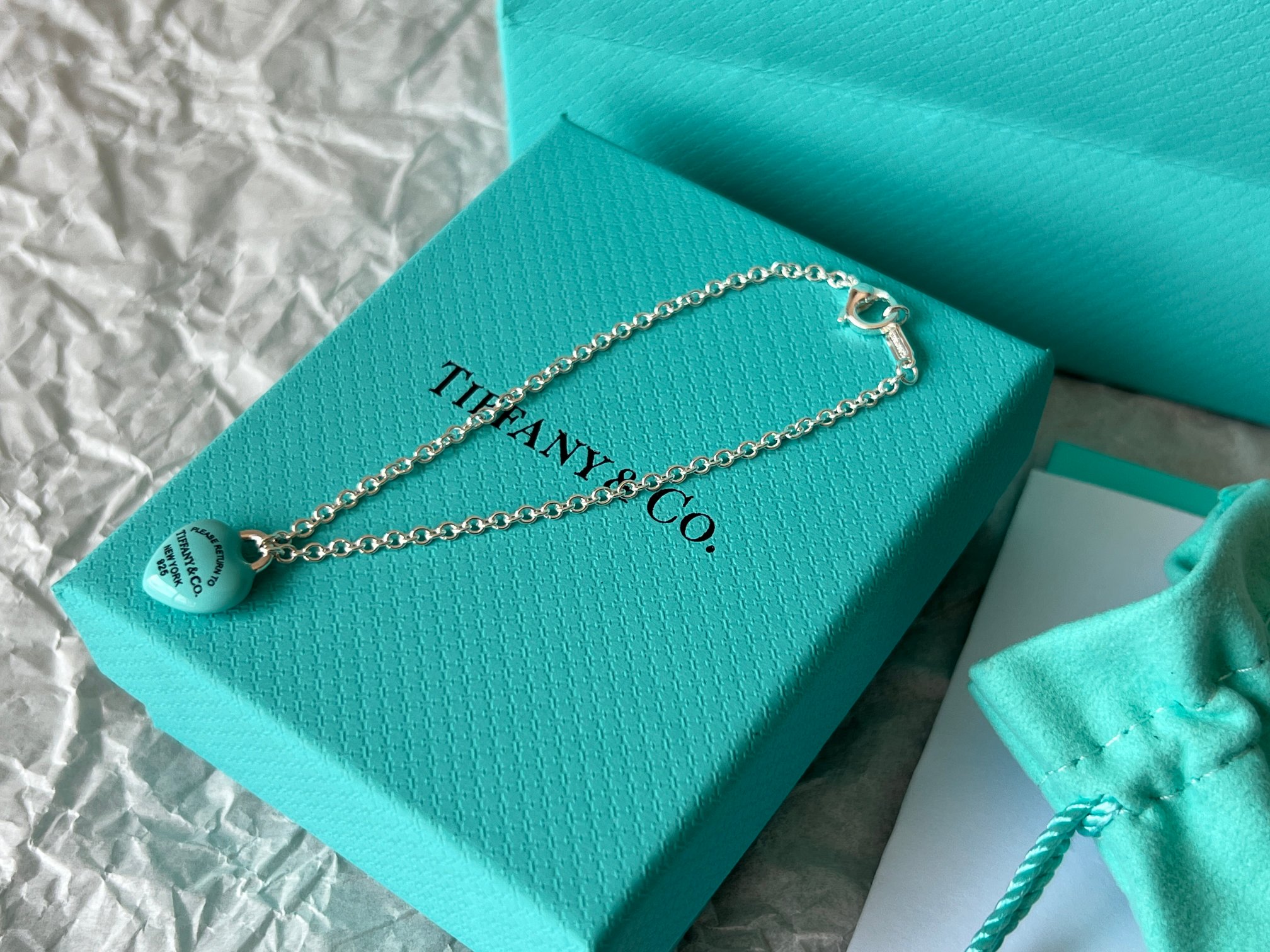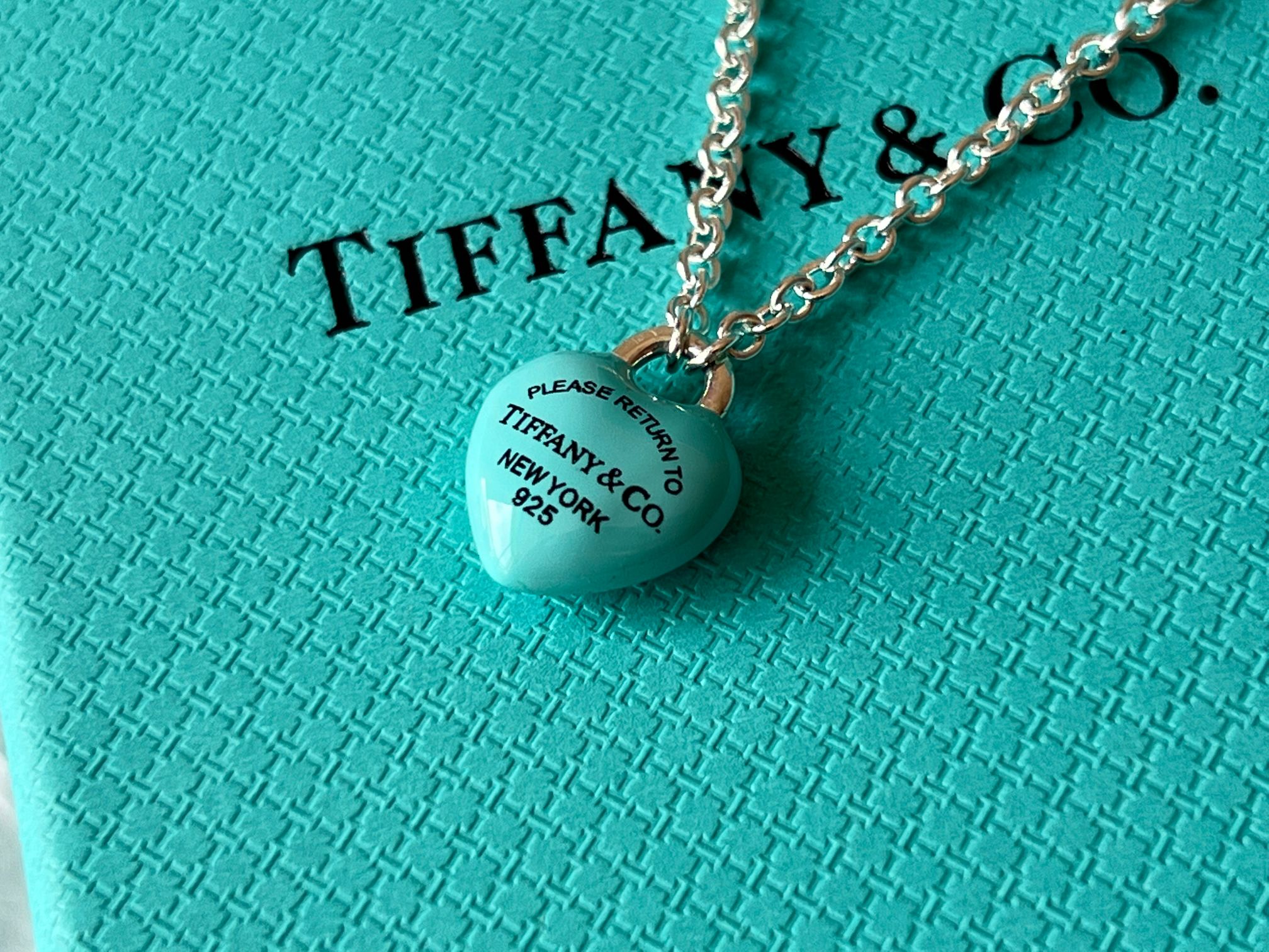 项链 手链Tiffany full heart 爱心蓝胖子吊坠项链/手链!这么可爱的糖豆款真心无法拒绝,纯正的Tiffany蓝搭配925银项链,入手是真心划算~ 最新款的蓝胖子,很多小姐姐在国外都买到了哦,这次真的有被小蓝胖击中!好圆润好饱满啊,烤漆质感光滑圆润,精细的Tiffany字母logo秒杀市场一切版本,爱心锁造型太可了,上身非常显白哦,内搭、外搭都非常合适~ 爱心锁🔒造型设计,项链不能替换哦,蓝胖子还是有点份量的,上身有点垂坠感非常灵动~ 全套礼盒包装 送人、自戴都非常漂亮哦,整套入手搭配效果更赞哦~