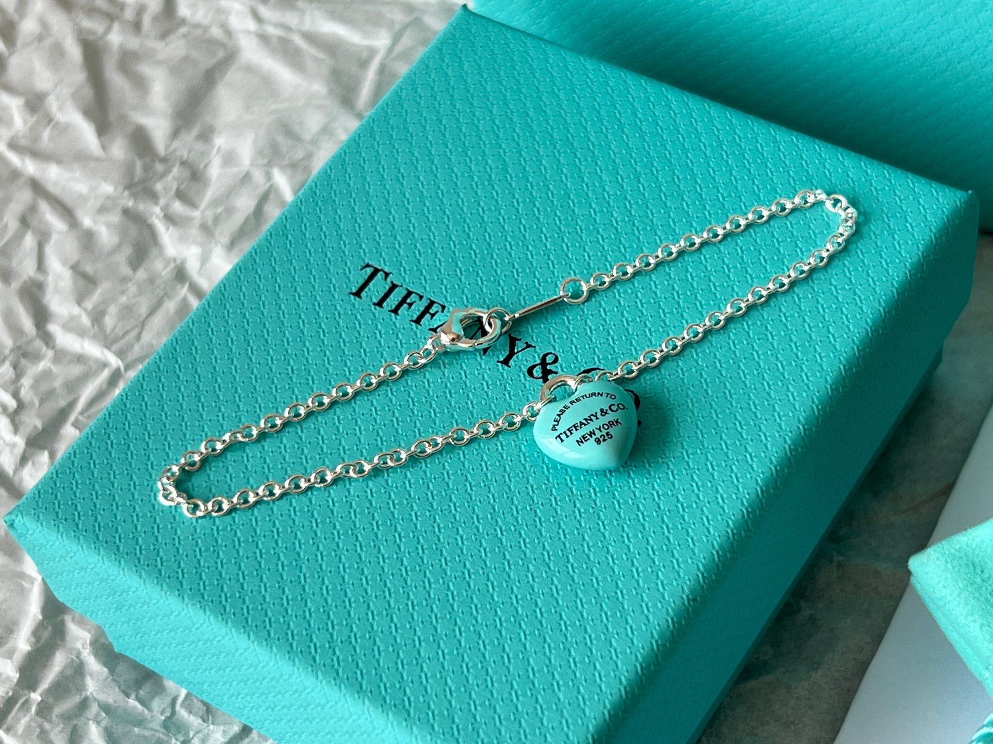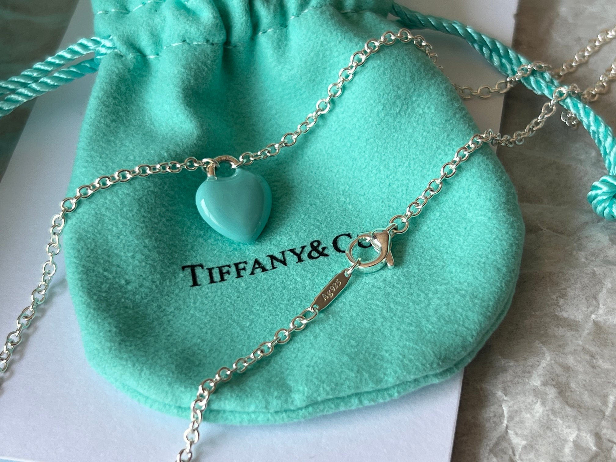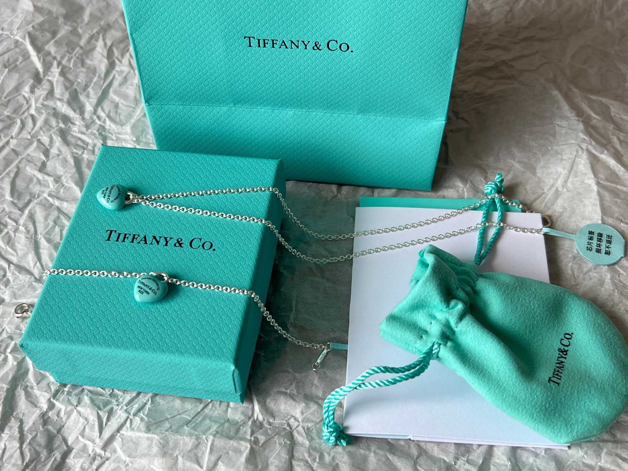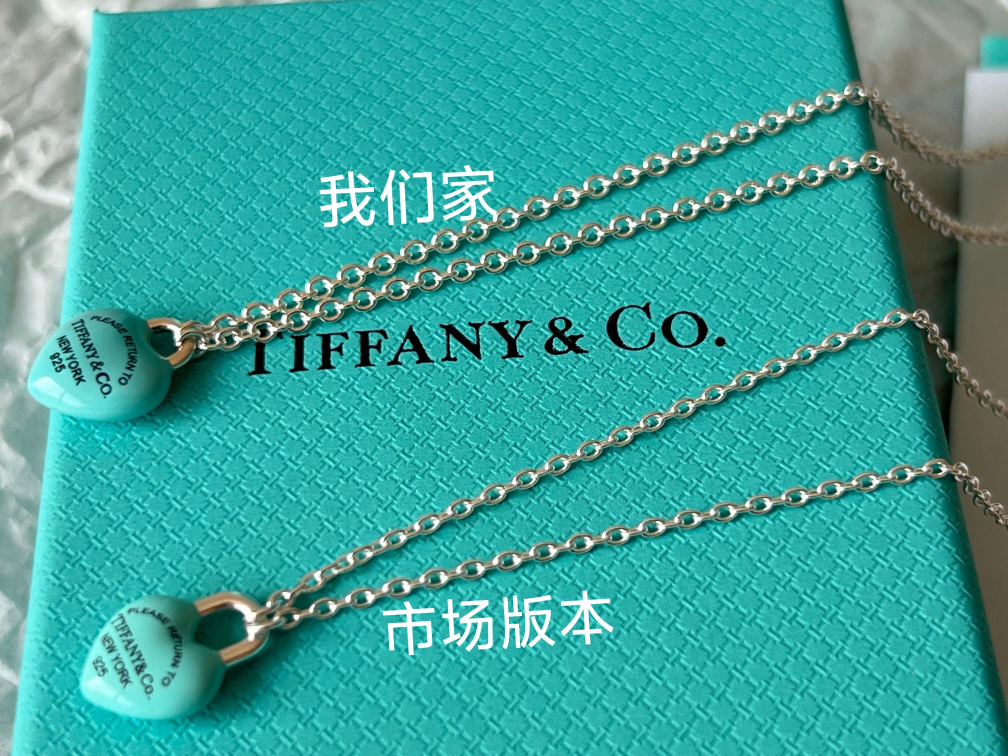 项链 手链Tiffany full heart 爱心蓝胖子吊坠项链/手链!这么可爱的糖豆款真心无法拒绝,纯正的Tiffany蓝搭配925银项链,入手是真心划算~ 最新款的蓝胖子,很多小姐姐在国外都买到了哦,这次真的有被小蓝胖击中!好圆润好饱满啊,烤漆质感光滑圆润,精细的Tiffany字母logo秒杀市场一切版本,爱心锁造型太可了,上身非常显白哦,内搭、外搭都非常合适~ 爱心锁🔒造型设计,项链不能替换哦,蓝胖子还是有点份量的,上身有点垂坠感非常灵动~ 全套礼盒包装 送人、自戴都非常漂亮哦,整套入手搭配效果更赞哦~