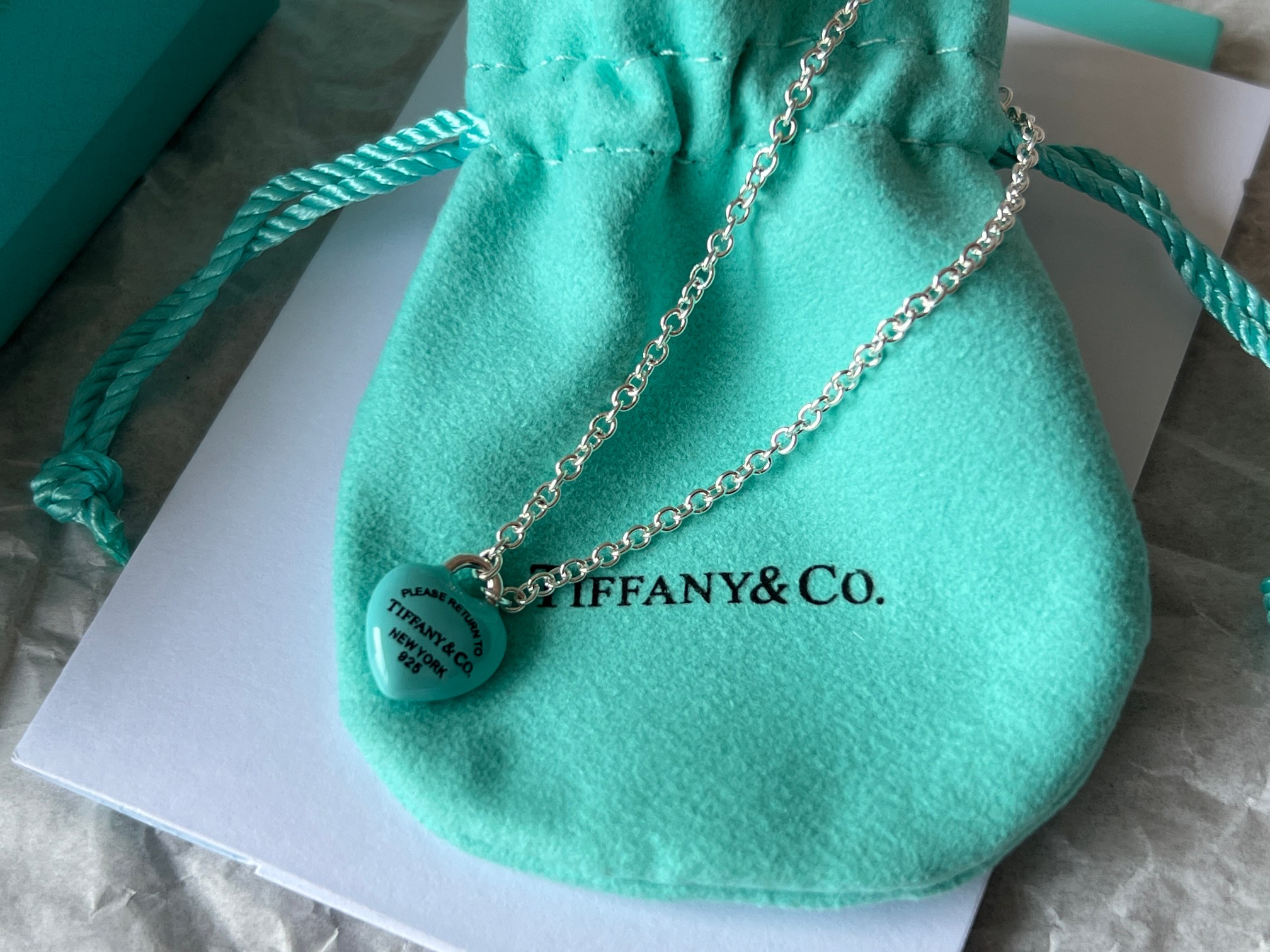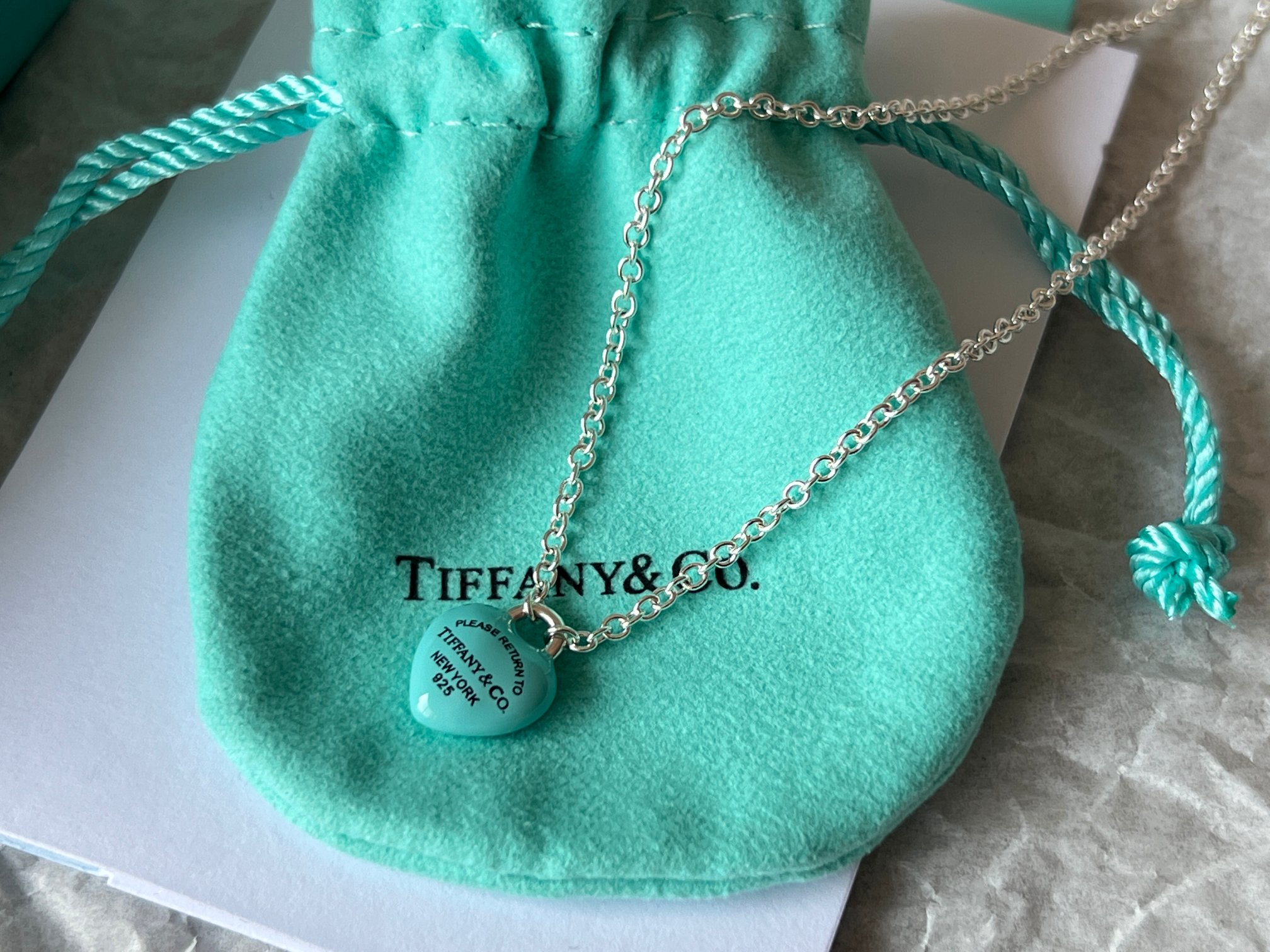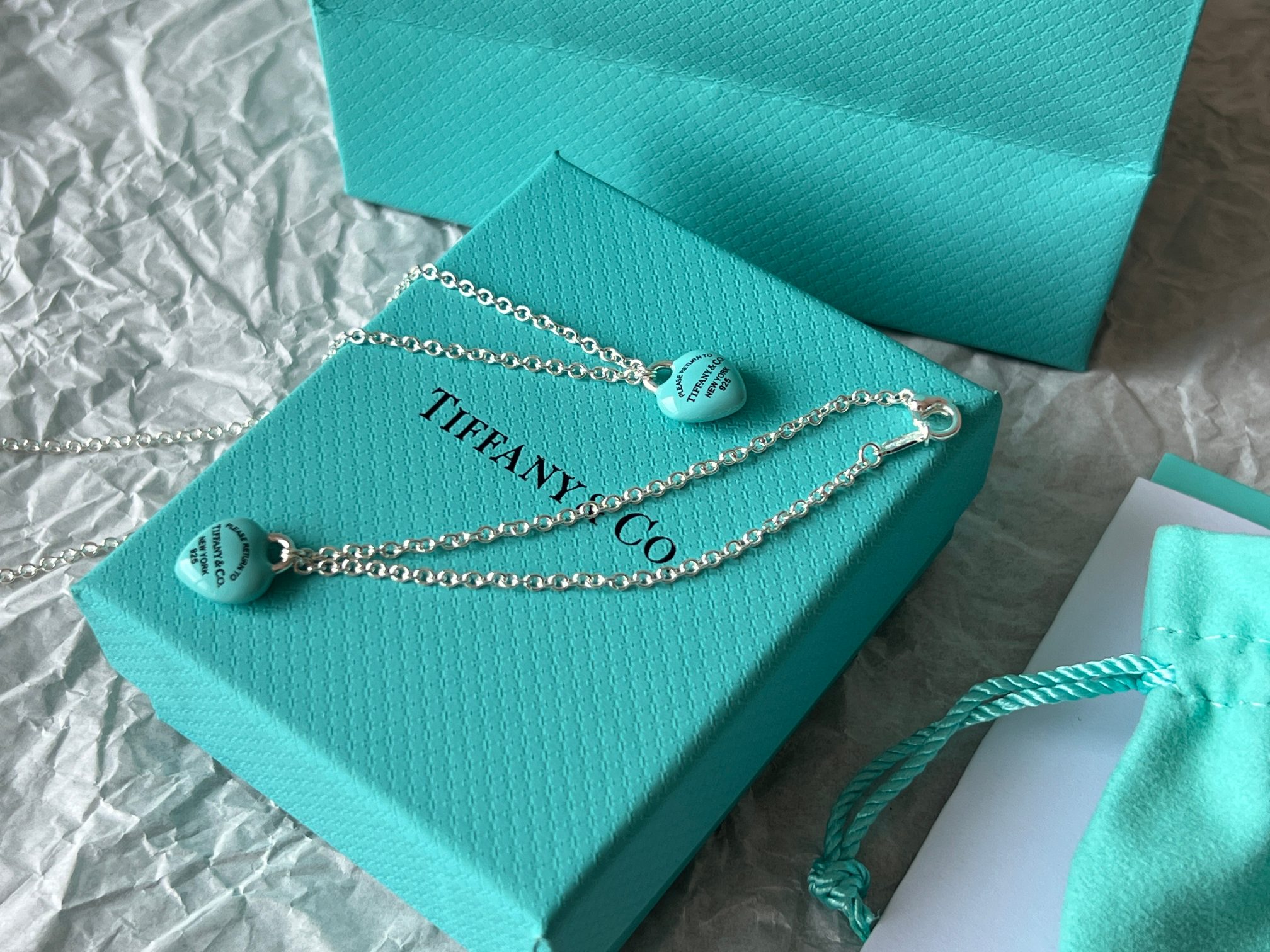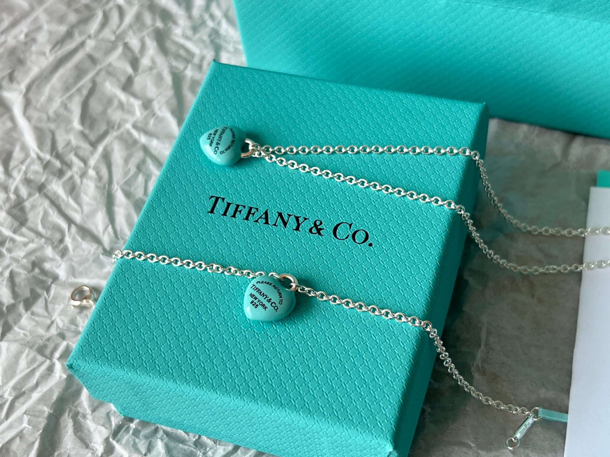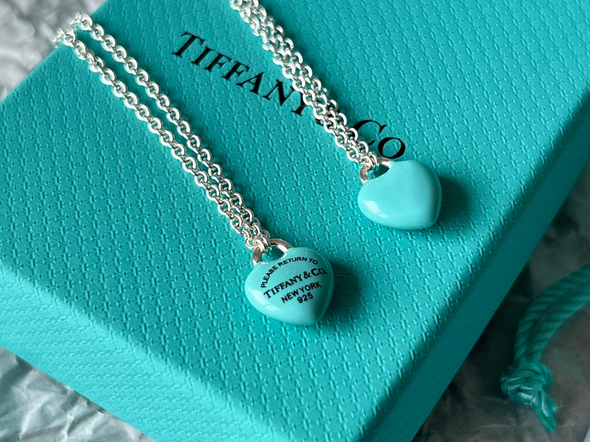 项链 手链Tiffany full heart 爱心蓝胖子吊坠项链/手链!这么可爱的糖豆款真心无法拒绝,纯正的Tiffany蓝搭配925银项链,入手是真心划算~ 最新款的蓝胖子,很多小姐姐在国外都买到了哦,这次真的有被小蓝胖击中!好圆润好饱满啊,烤漆质感光滑圆润,精细的Tiffany字母logo秒杀市场一切版本,爱心锁造型太可了,上身非常显白哦,内搭、外搭都非常合适~ 爱心锁🔒造型设计,项链不能替换哦,蓝胖子还是有点份量的,上身有点垂坠感非常灵动~ 全套礼盒包装 送人、自戴都非常漂亮哦,整套入手搭配效果更赞哦~