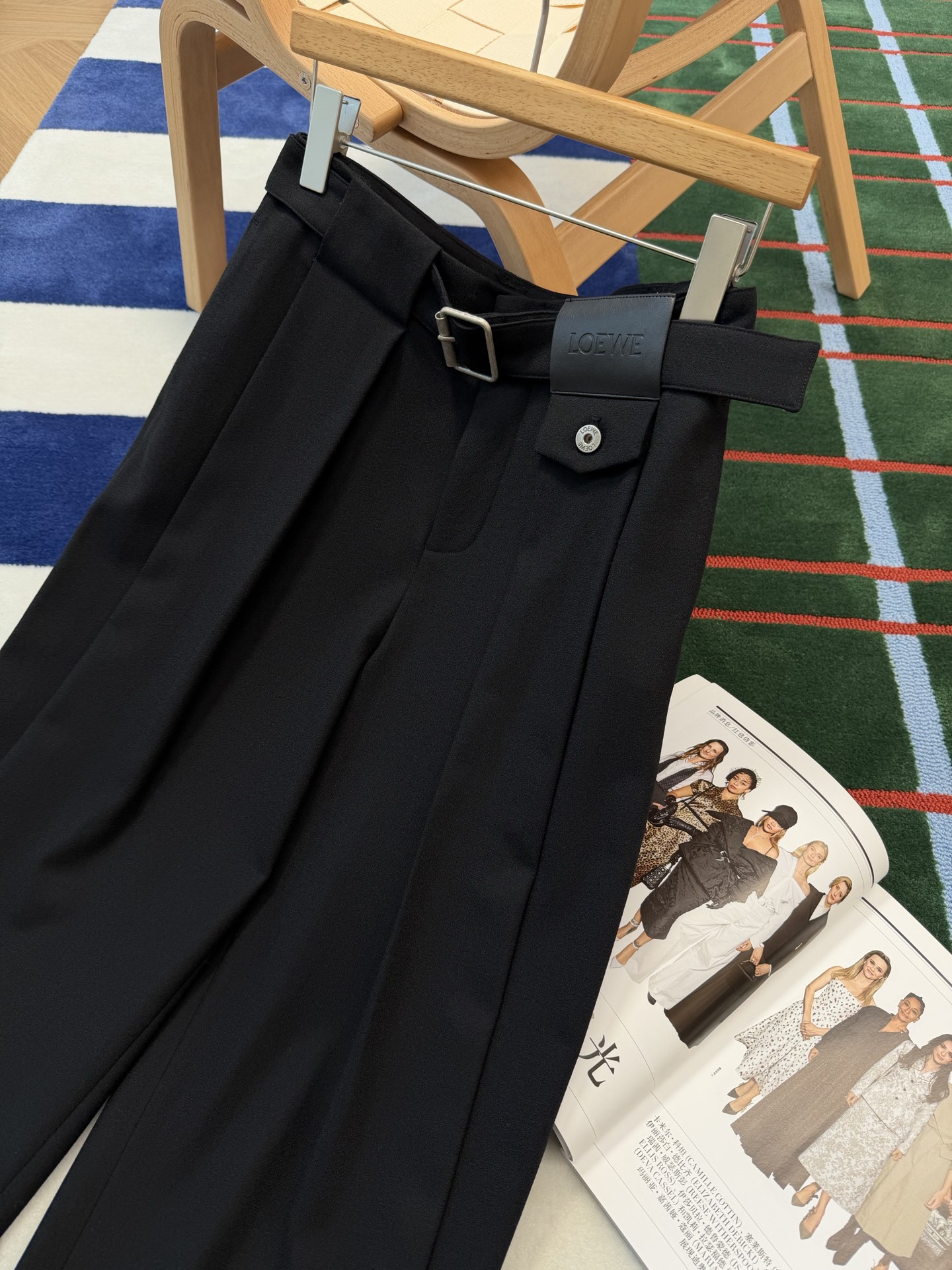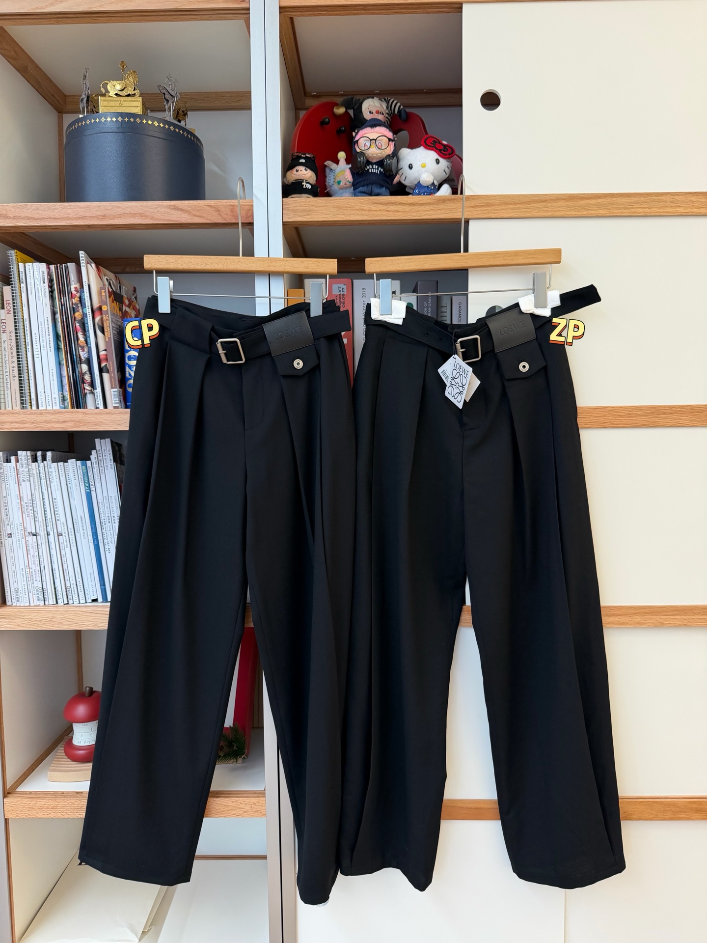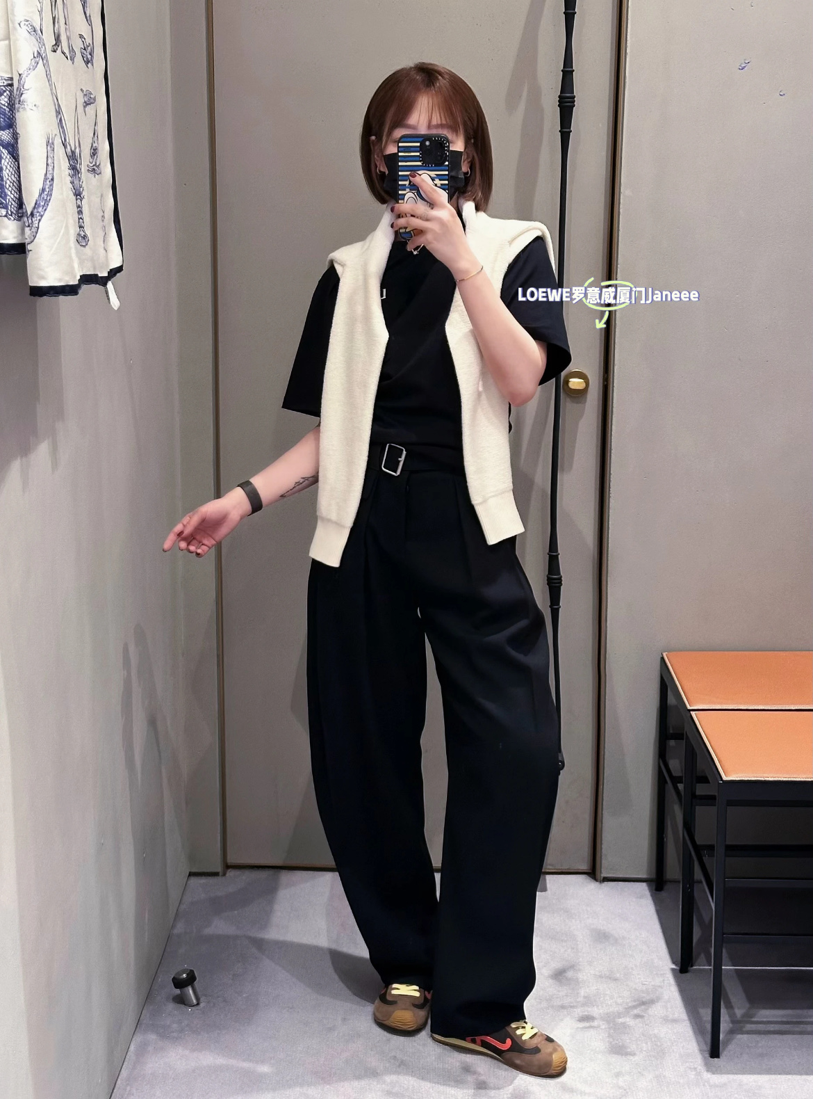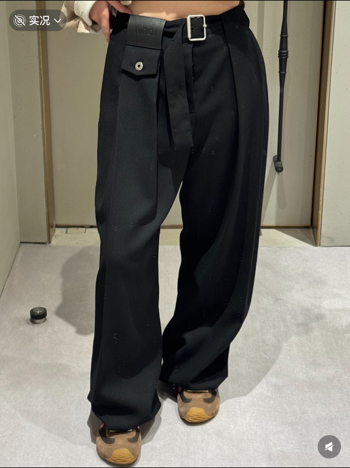 最新款西服裤🔜🉑堪称神裤,轻盈绉纱羊毛面料,正面饰以可调节腰带➕ 压纹皮革贴片,中腰版型,宽宽大大的阔腿版型,无敌显瘦,设计太抓眼球啦,可盐可甜随性辣妹‼️帅气利落的裁剪,独家开发定制羊毛面料,完美还原面料材质与纹路✨ 面料好到爆〰️细节上呈现着满满的高级感,裤型立挺有型➕穿上就脱不下来的一款,这个裤子一定是大爆款🔥慵懒美女的氛围感〰️轻松拿捏,衣柜里永远都缺一条这样的垂感黑西裤💫放心入手!真的嘎嘎好穿!强烈推荐上身,码数SML