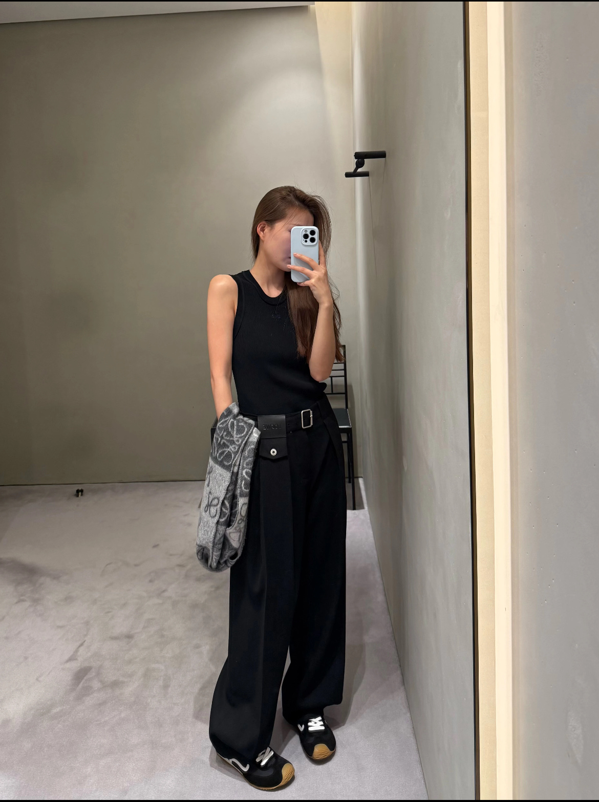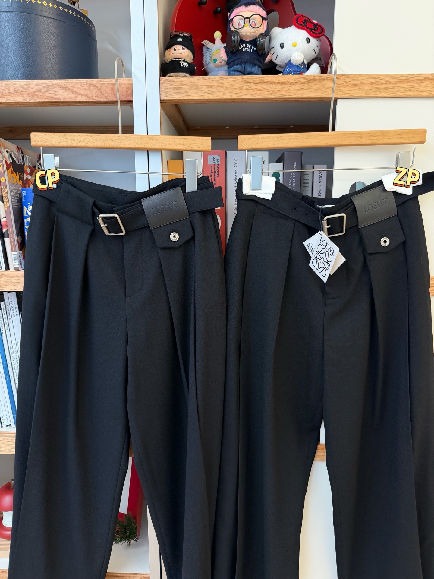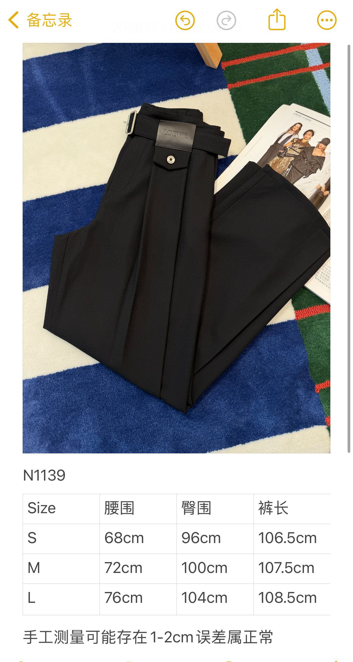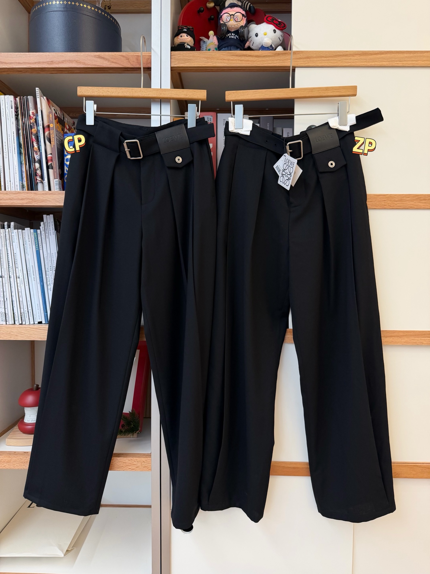 最新款西服裤🔜🉑堪称神裤,轻盈绉纱羊毛面料,正面饰以可调节腰带➕ 压纹皮革贴片,中腰版型,宽宽大大的阔腿版型,无敌显瘦,设计太抓眼球啦,可盐可甜随性辣妹‼️帅气利落的裁剪,独家开发定制羊毛面料,完美还原面料材质与纹路✨ 面料好到爆〰️细节上呈现着满满的高级感,裤型立挺有型➕穿上就脱不下来的一款,这个裤子一定是大爆款🔥慵懒美女的氛围感〰️轻松拿捏,衣柜里永远都缺一条这样的垂感黑西裤💫放心入手!真的嘎嘎好穿!强烈推荐上身,码数SML
