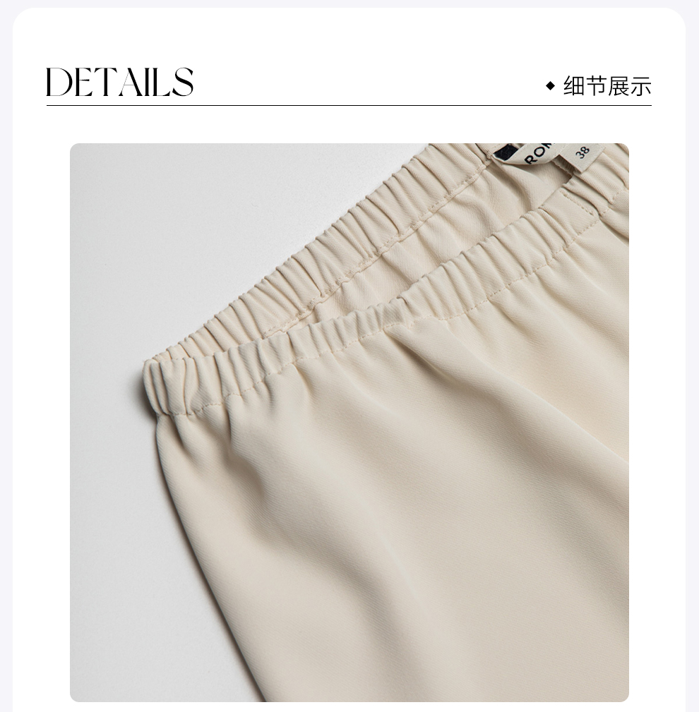 ROMI STUDIO丝滑触感 不易皱缎面复古杏色休闲抖抖裤K3211白色