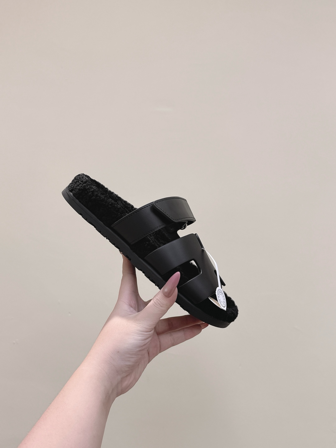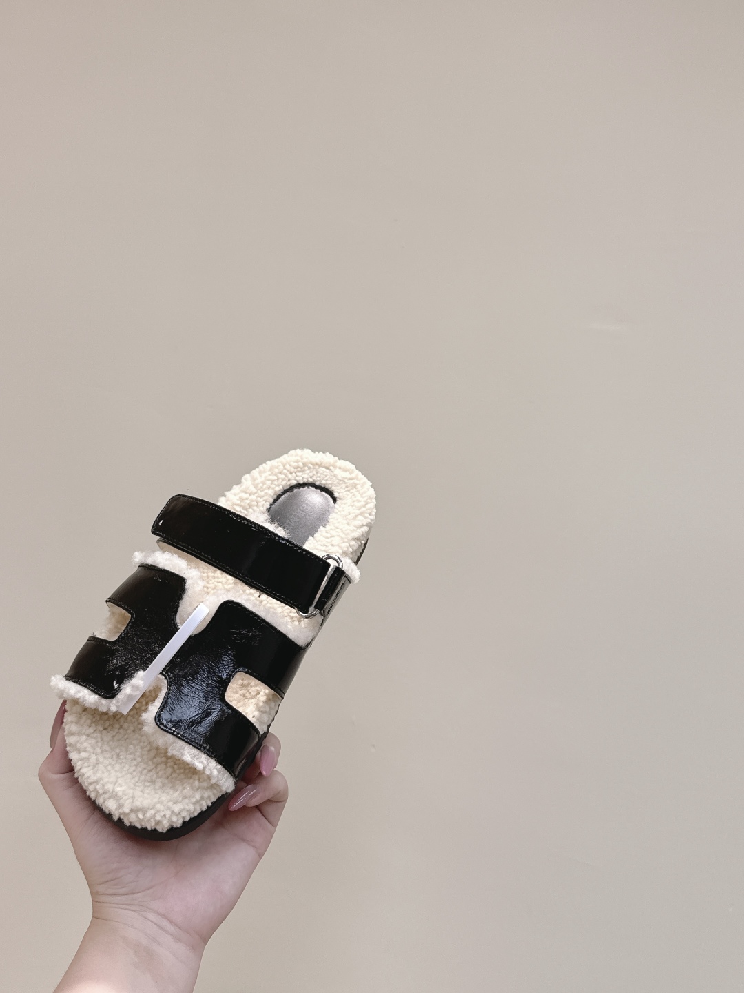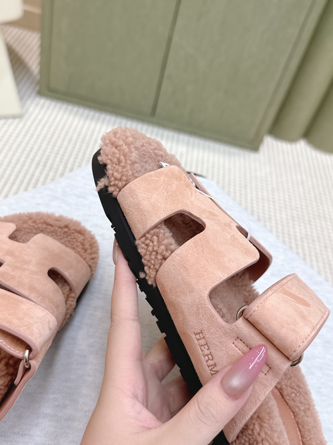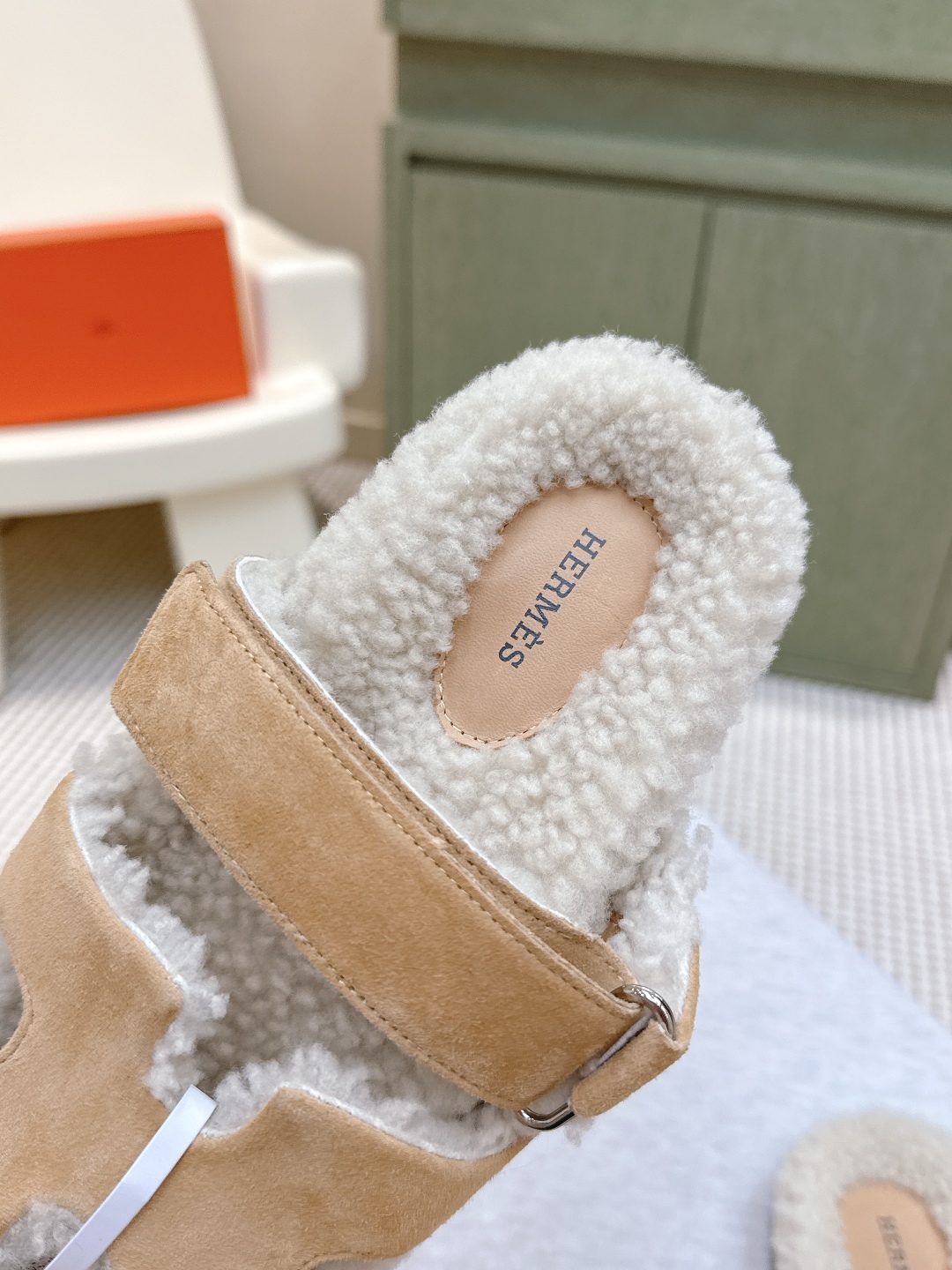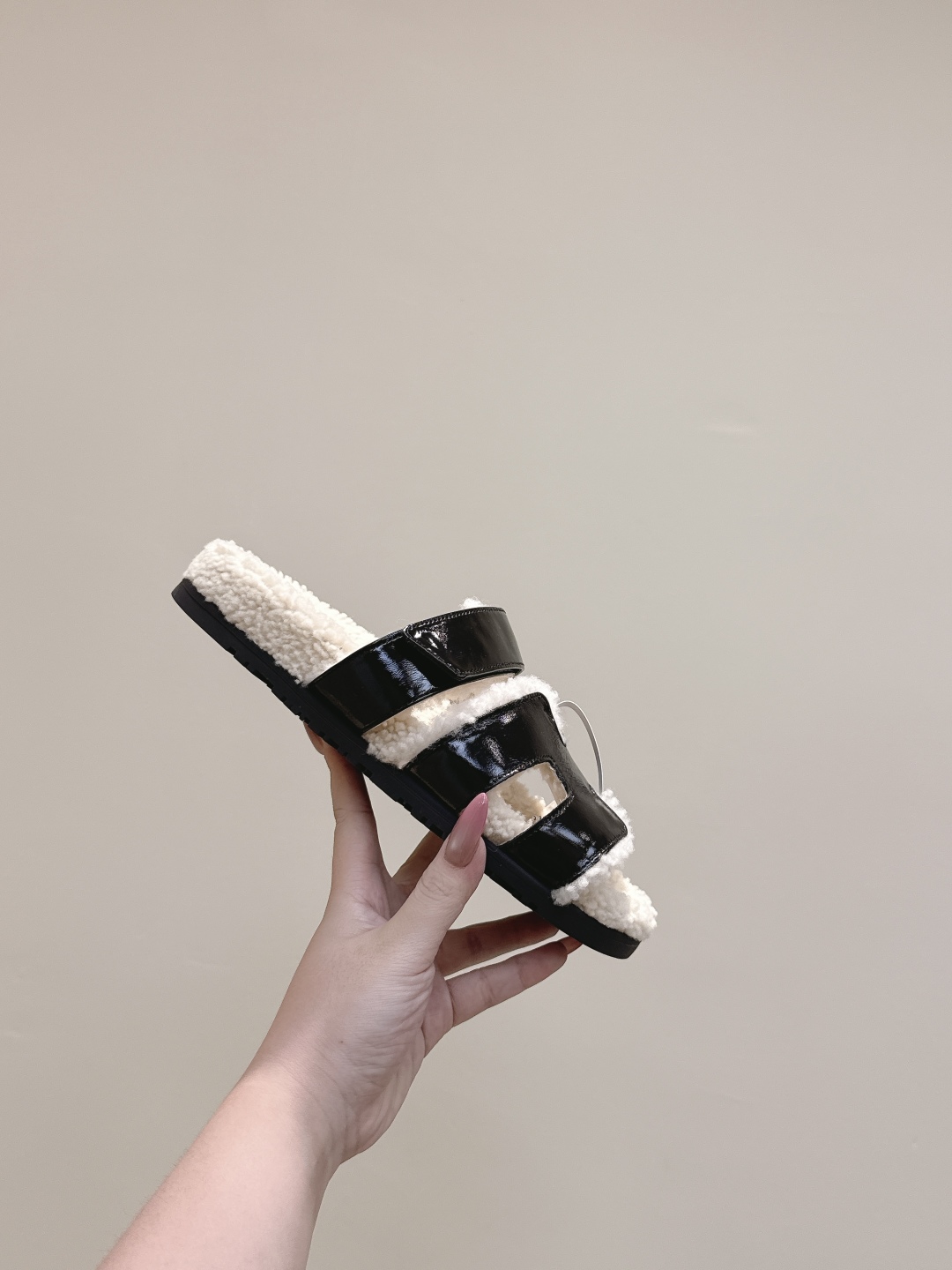 Hermes 一波惊喜爱马仕毛拖妥妥的时尚款顶级出品轻奢 hermes泰迪毛拖真的软软糯糯超美....... 初冬的第一双毛拖,真的穿起太舒服了,像踩在地毯上完全不想脱下来,俗称二舅拖鞋它来啦 带来极度舒适的一天.... 材质:进口麂皮 进口牛皮 内里:进口羊羔毛 Tpu防滑大底 Size:#35-40(40订做不退换)