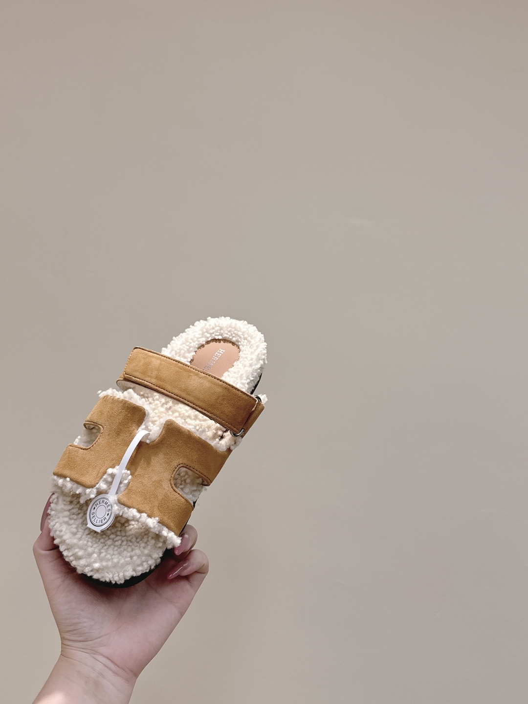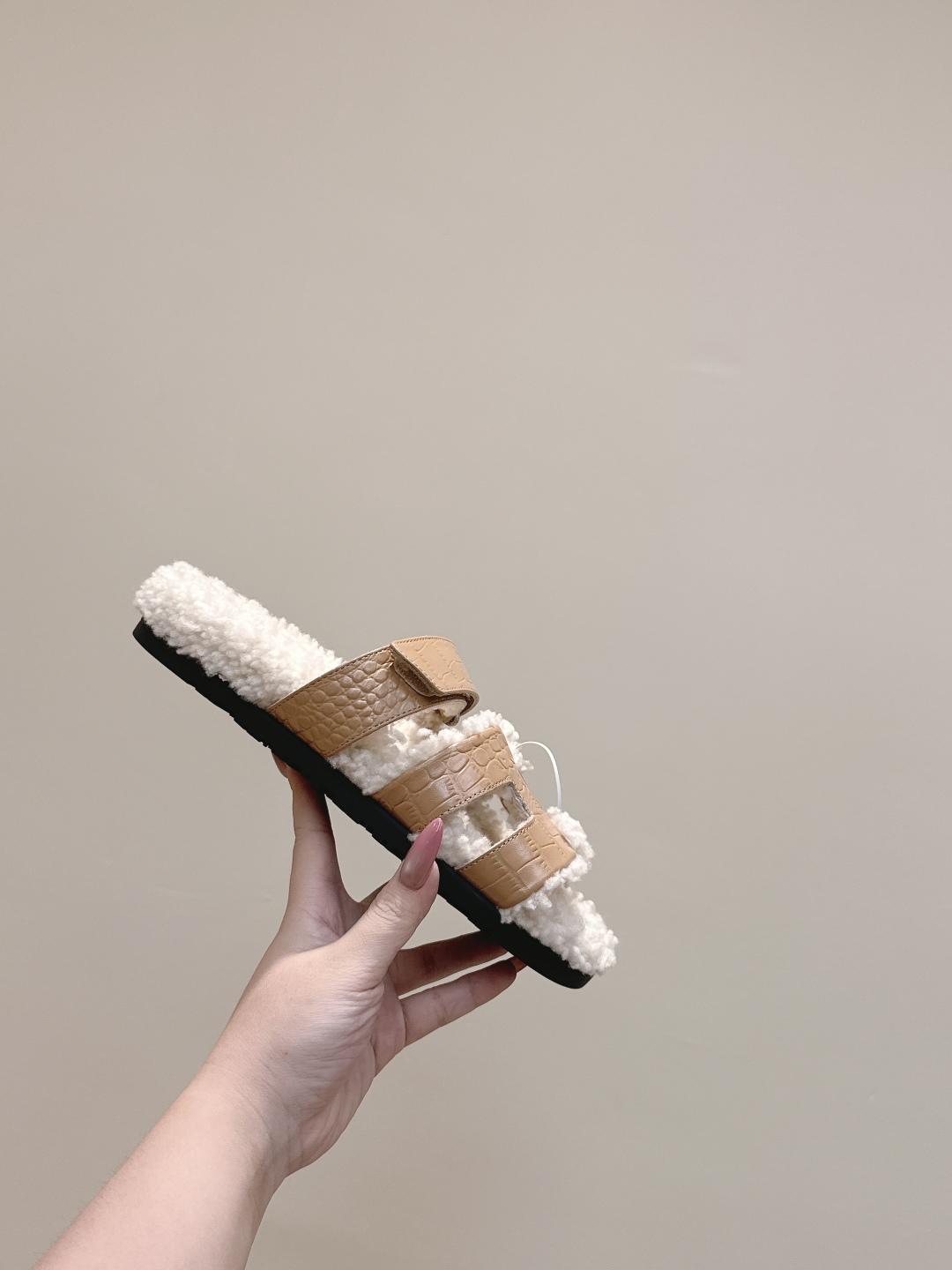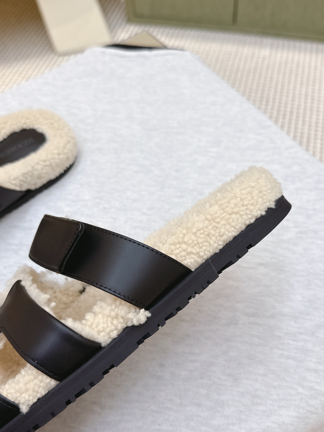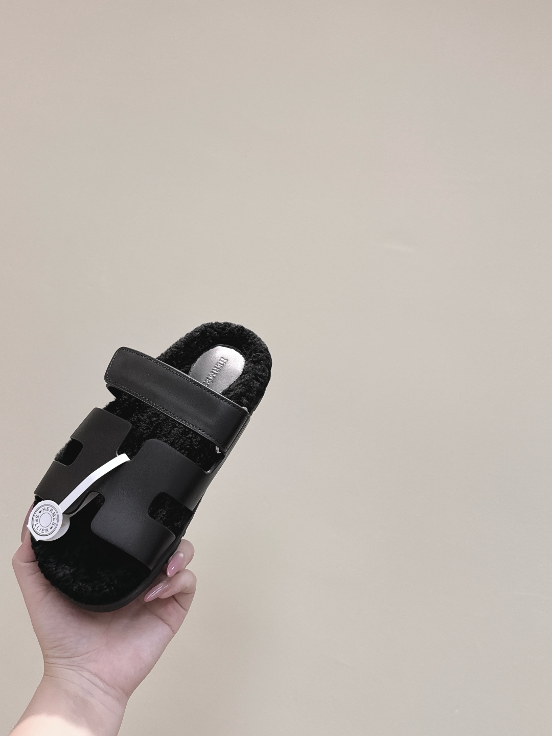 Hermes 一波惊喜爱马仕毛拖妥妥的时尚款顶级出品轻奢 hermes泰迪毛拖真的软软糯糯超美....... 初冬的第一双毛拖,真的穿起太舒服了,像踩在地毯上完全不想脱下来,俗称二舅拖鞋它来啦 带来极度舒适的一天.... 材质:进口麂皮 进口牛皮 内里:进口羊羔毛 Tpu防滑大底 Size:#35-40(40订做不退换)