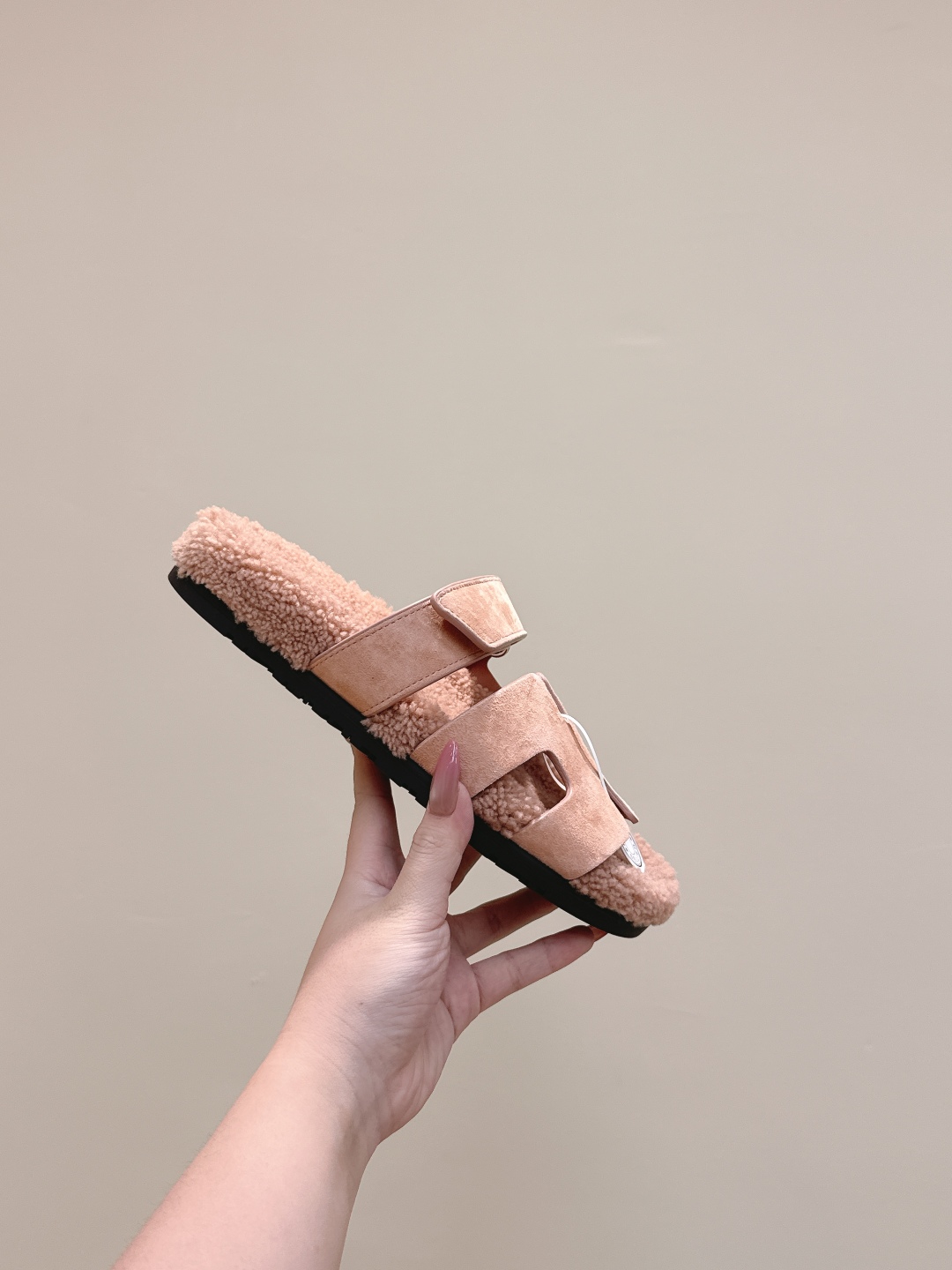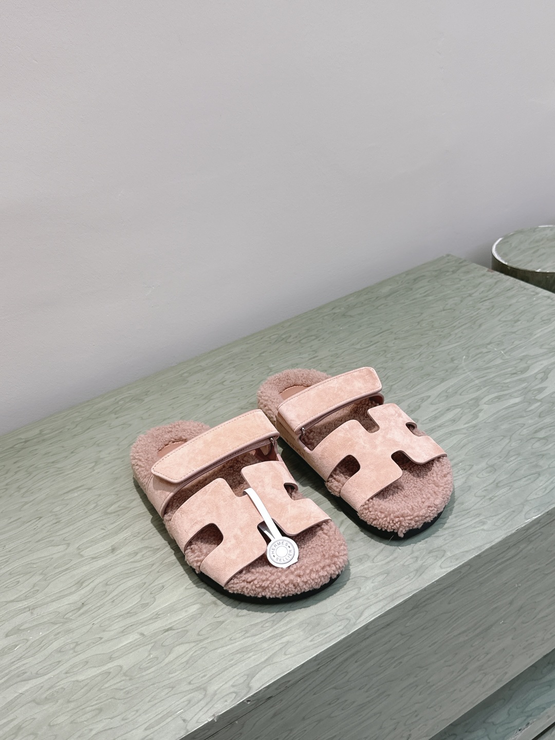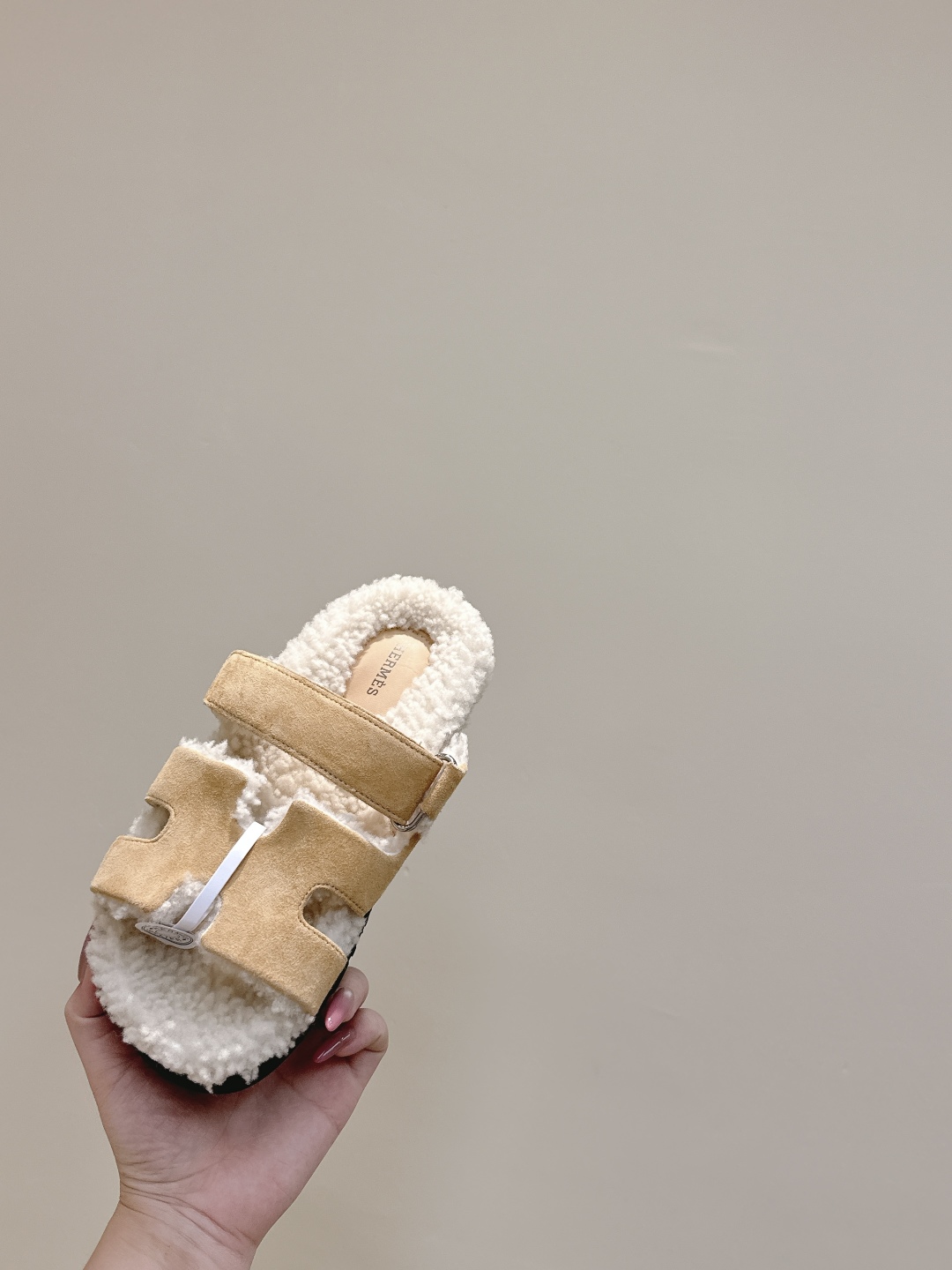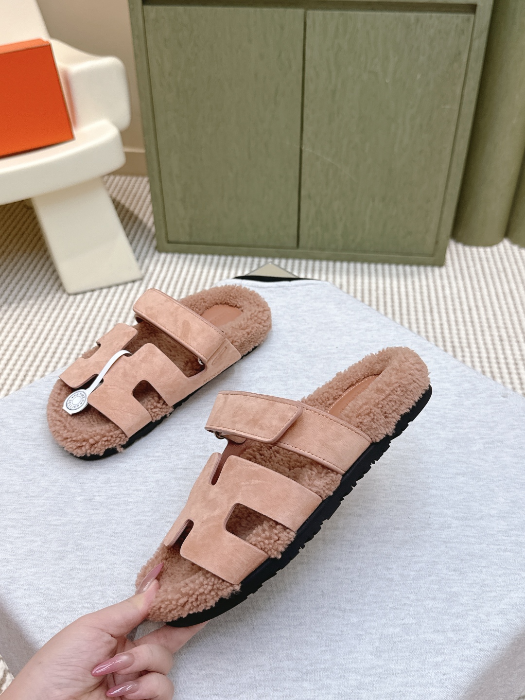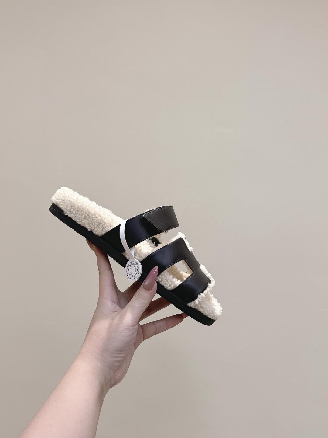 Hermes 一波惊喜爱马仕毛拖妥妥的时尚款顶级出品轻奢 hermes泰迪毛拖真的软软糯糯超美....... 初冬的第一双毛拖,真的穿起太舒服了,像踩在地毯上完全不想脱下来,俗称二舅拖鞋它来啦 带来极度舒适的一天.... 材质:进口麂皮 进口牛皮 内里:进口羊羔毛 Tpu防滑大底 Size:#35-40(40订做不退换)