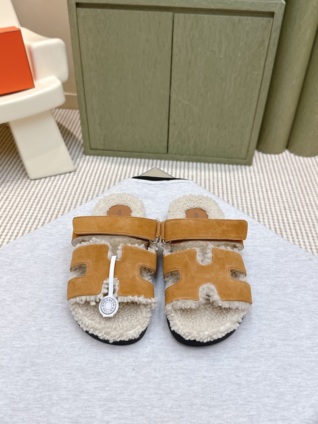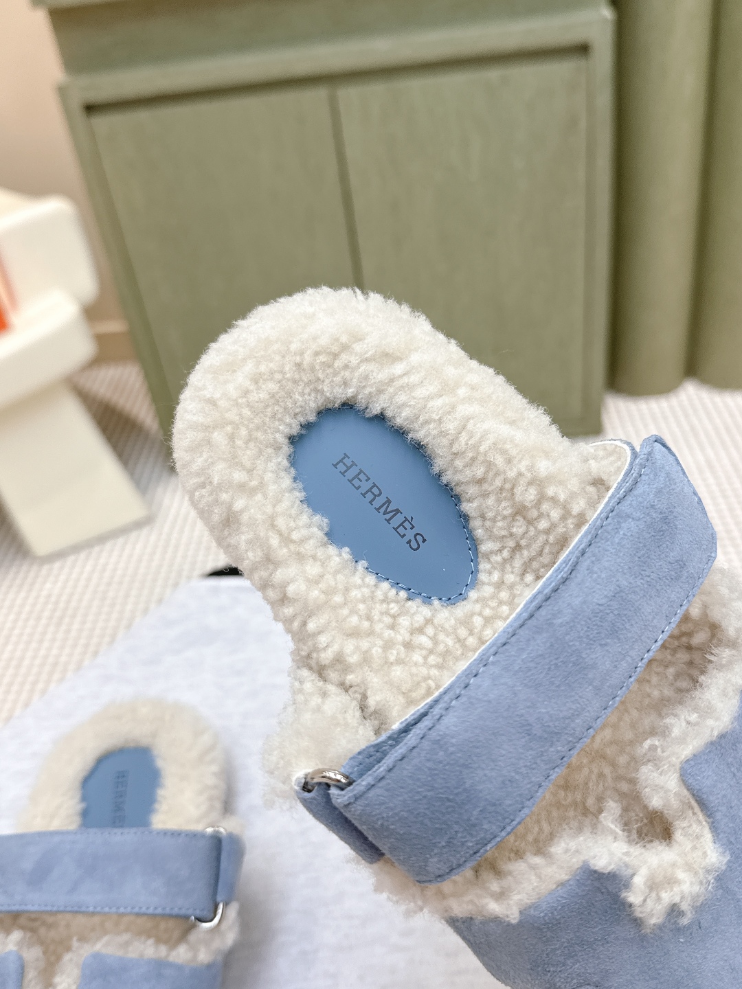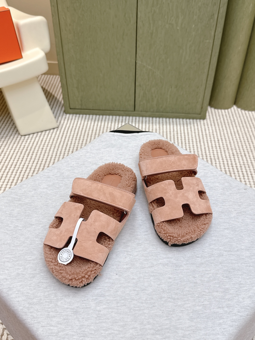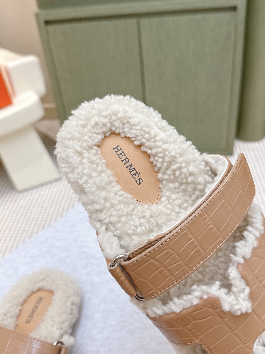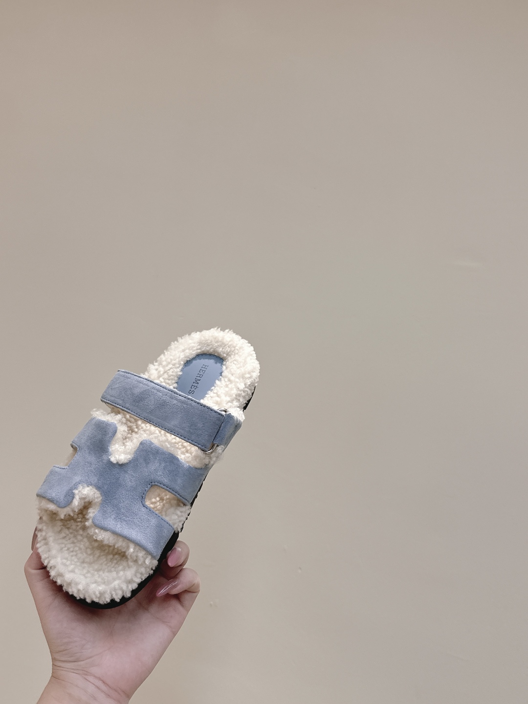 Hermes 一波惊喜爱马仕毛拖妥妥的时尚款顶级出品轻奢 hermes泰迪毛拖真的软软糯糯超美....... 初冬的第一双毛拖,真的穿起太舒服了,像踩在地毯上完全不想脱下来,俗称二舅拖鞋它来啦 带来极度舒适的一天.... 材质:进口麂皮 进口牛皮 内里:进口羊羔毛 Tpu防滑大底 Size:#35-40(40订做不退换)
