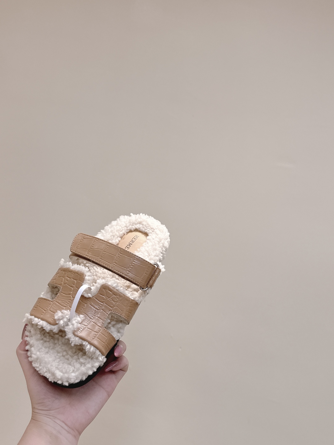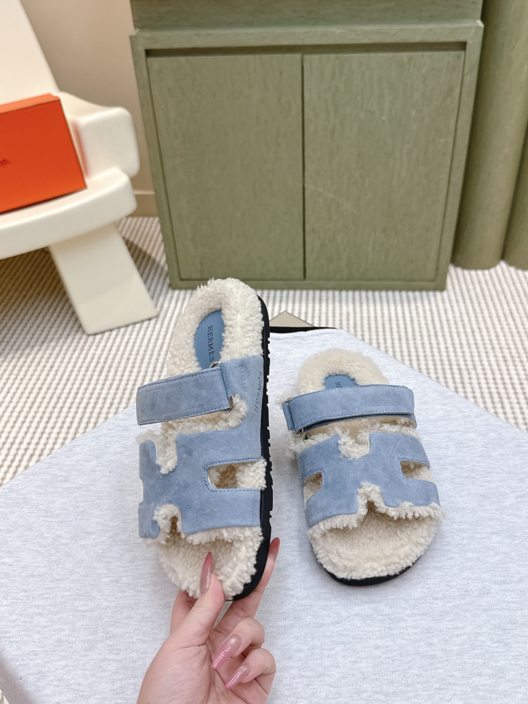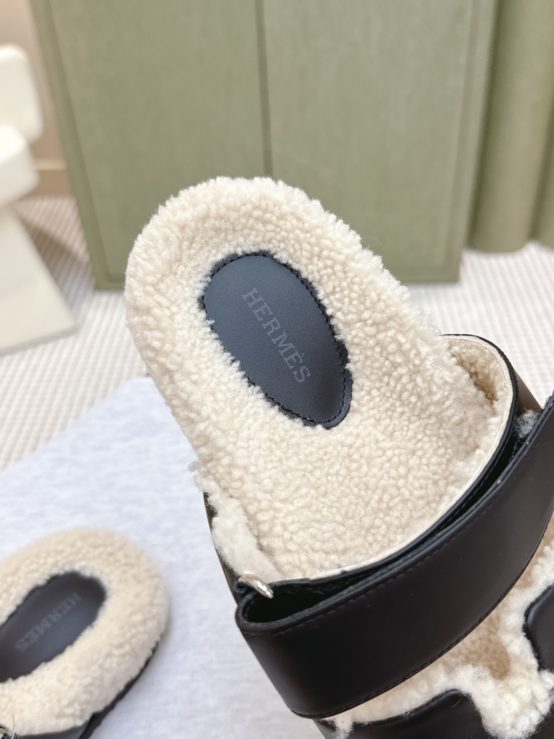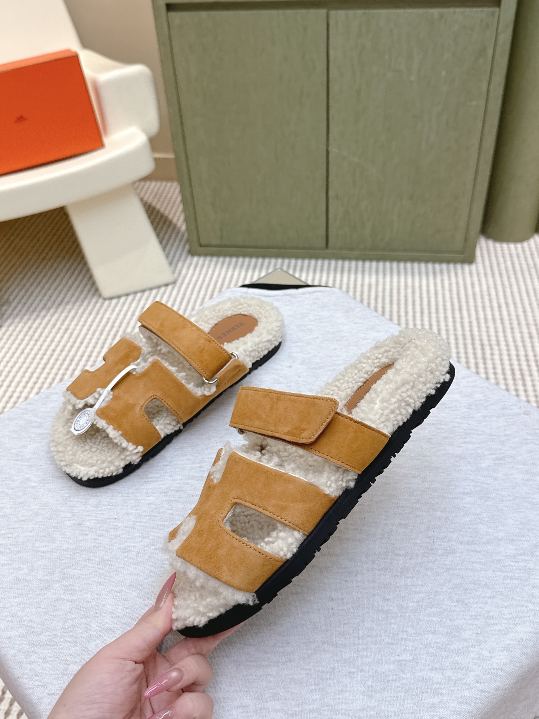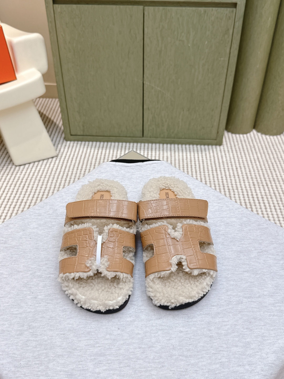 Hermes 一波惊喜爱马仕毛拖妥妥的时尚款顶级出品轻奢 hermes泰迪毛拖真的软软糯糯超美....... 初冬的第一双毛拖,真的穿起太舒服了,像踩在地毯上完全不想脱下来,俗称二舅拖鞋它来啦 带来极度舒适的一天.... 材质:进口麂皮 进口牛皮 内里:进口羊羔毛 Tpu防滑大底 Size:#35-40(40订做不退换)