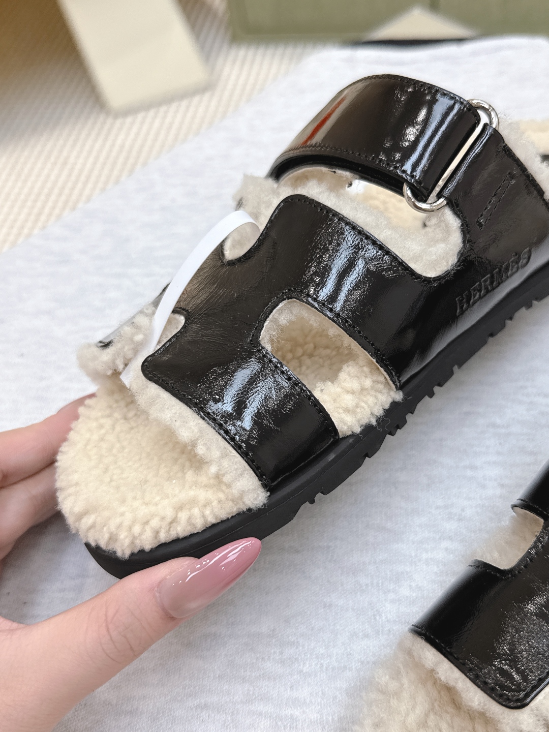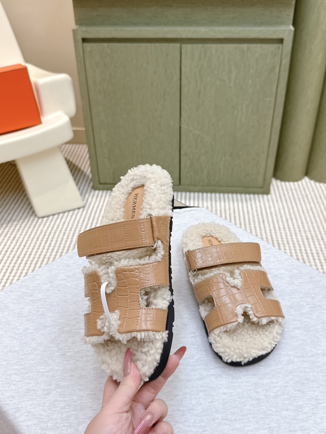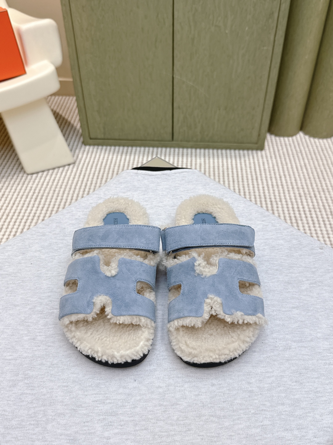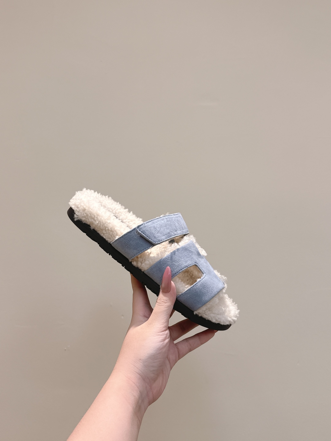Hermes 一波惊喜爱马仕毛拖妥妥的时尚款顶级出品轻奢 hermes泰迪毛拖真的软软糯糯超美....... 初冬的第一双毛拖,真的穿起太舒服了,像踩在地毯上完全不想脱下来,俗称二舅拖鞋它来啦 带来极度舒适的一天.... 材质:进口麂皮 进口牛皮 内里:进口羊羔毛 Tpu防滑大底 Size:#35-40(40订做不退换)