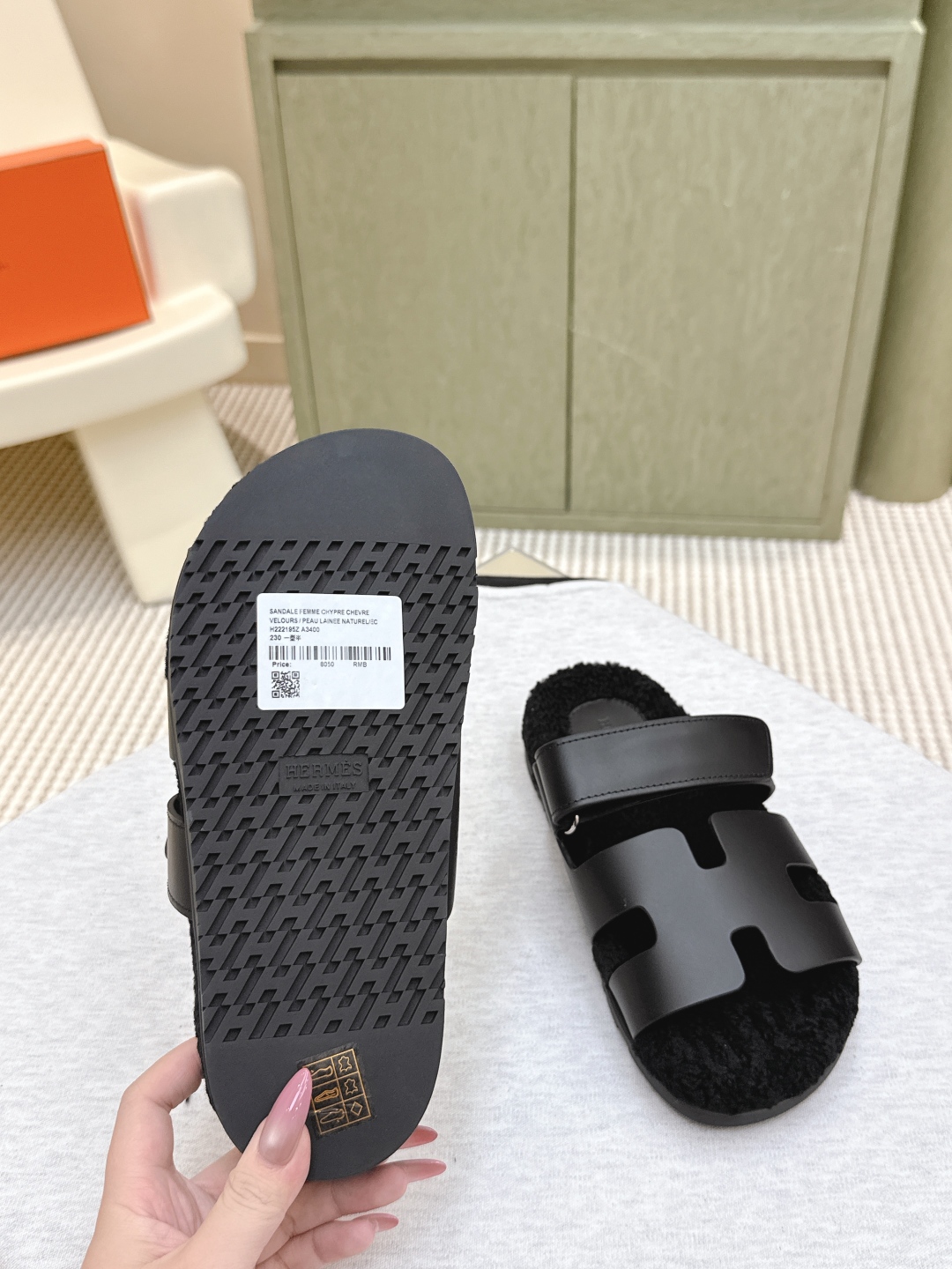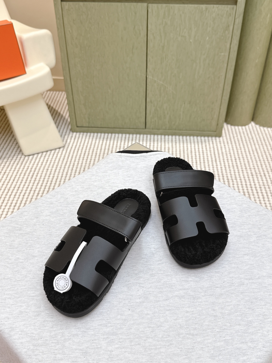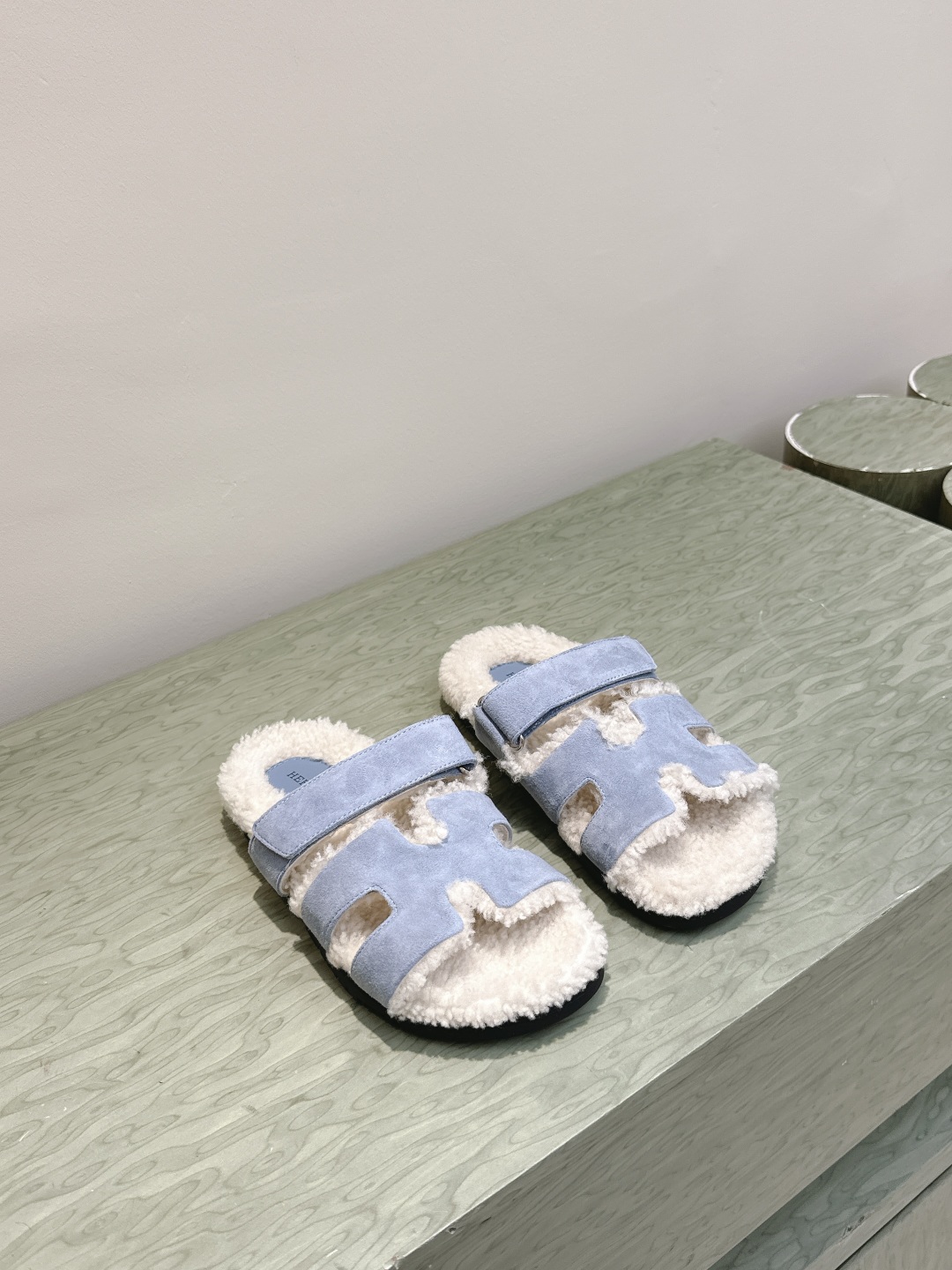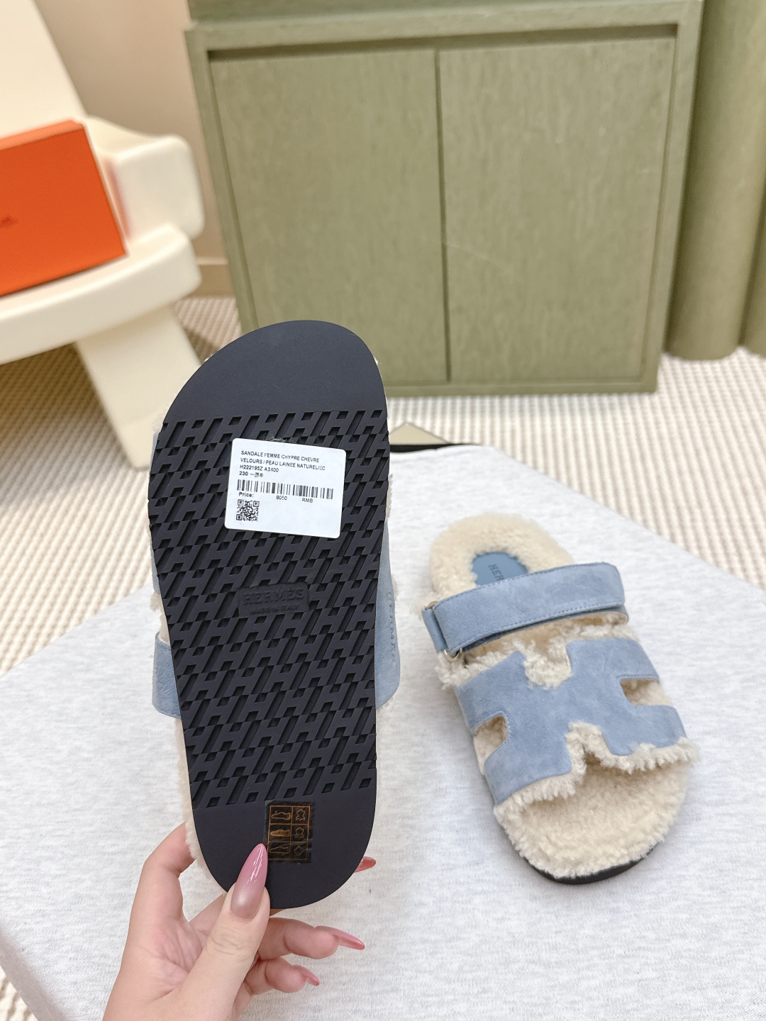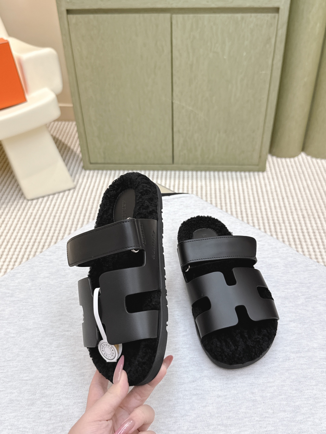 Hermes 一波惊喜爱马仕毛拖妥妥的时尚款顶级出品轻奢 hermes泰迪毛拖真的软软糯糯超美....... 初冬的第一双毛拖,真的穿起太舒服了,像踩在地毯上完全不想脱下来,俗称二舅拖鞋它来啦 带来极度舒适的一天.... 材质:进口麂皮 进口牛皮 内里:进口羊羔毛 Tpu防滑大底 Size:#35-40(40订做不退换)