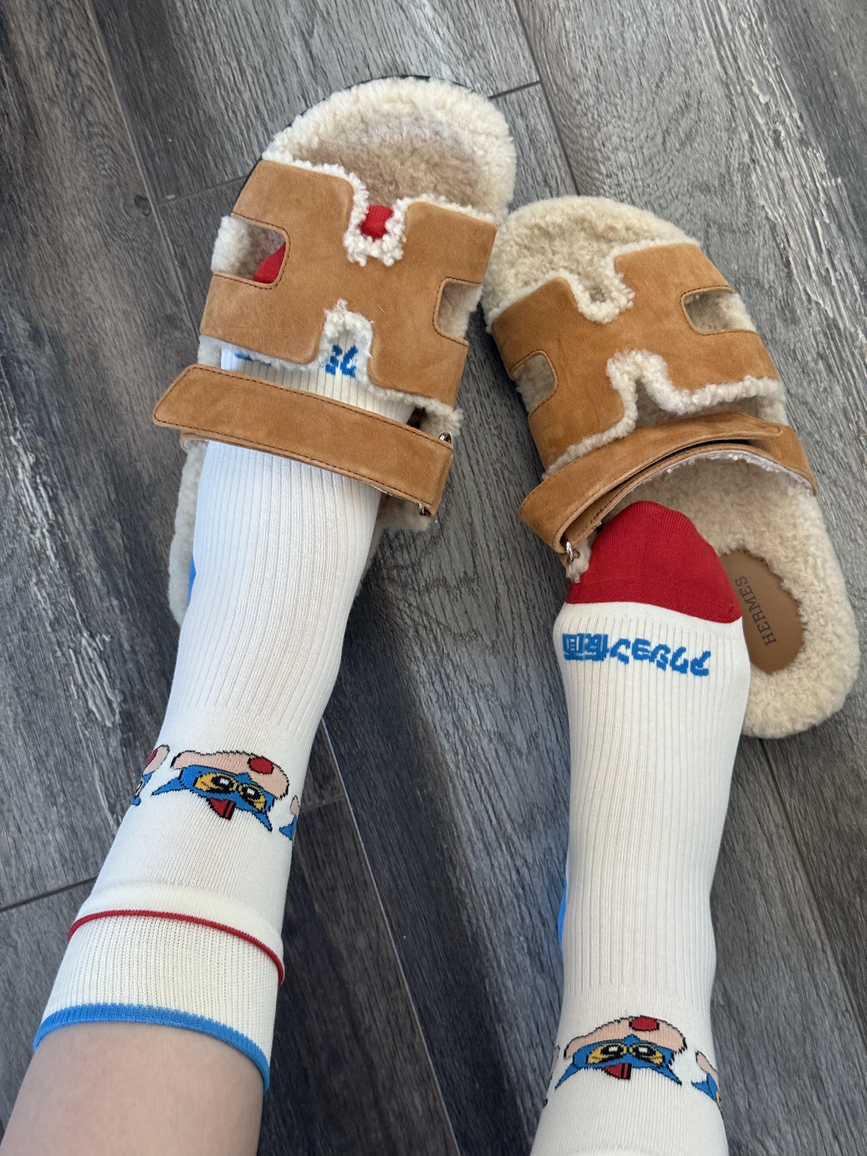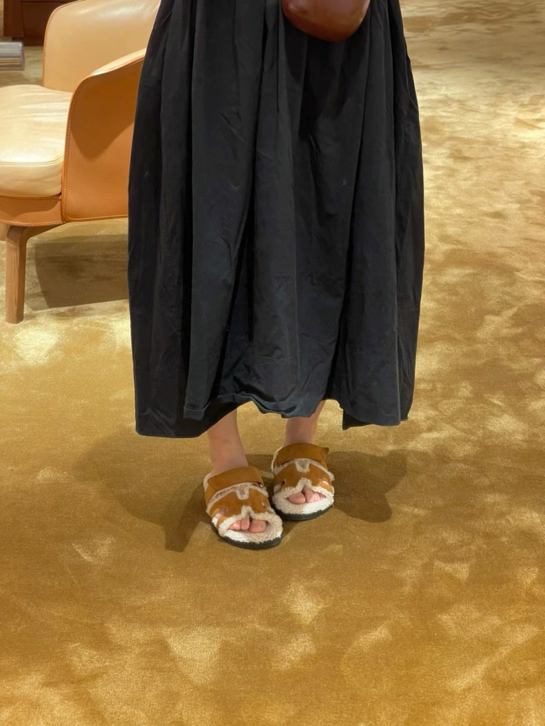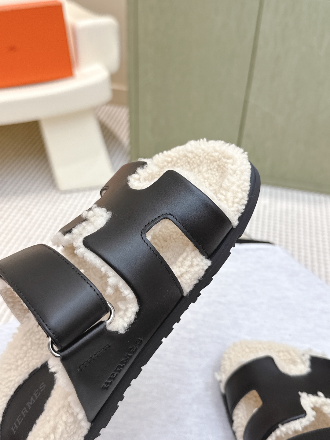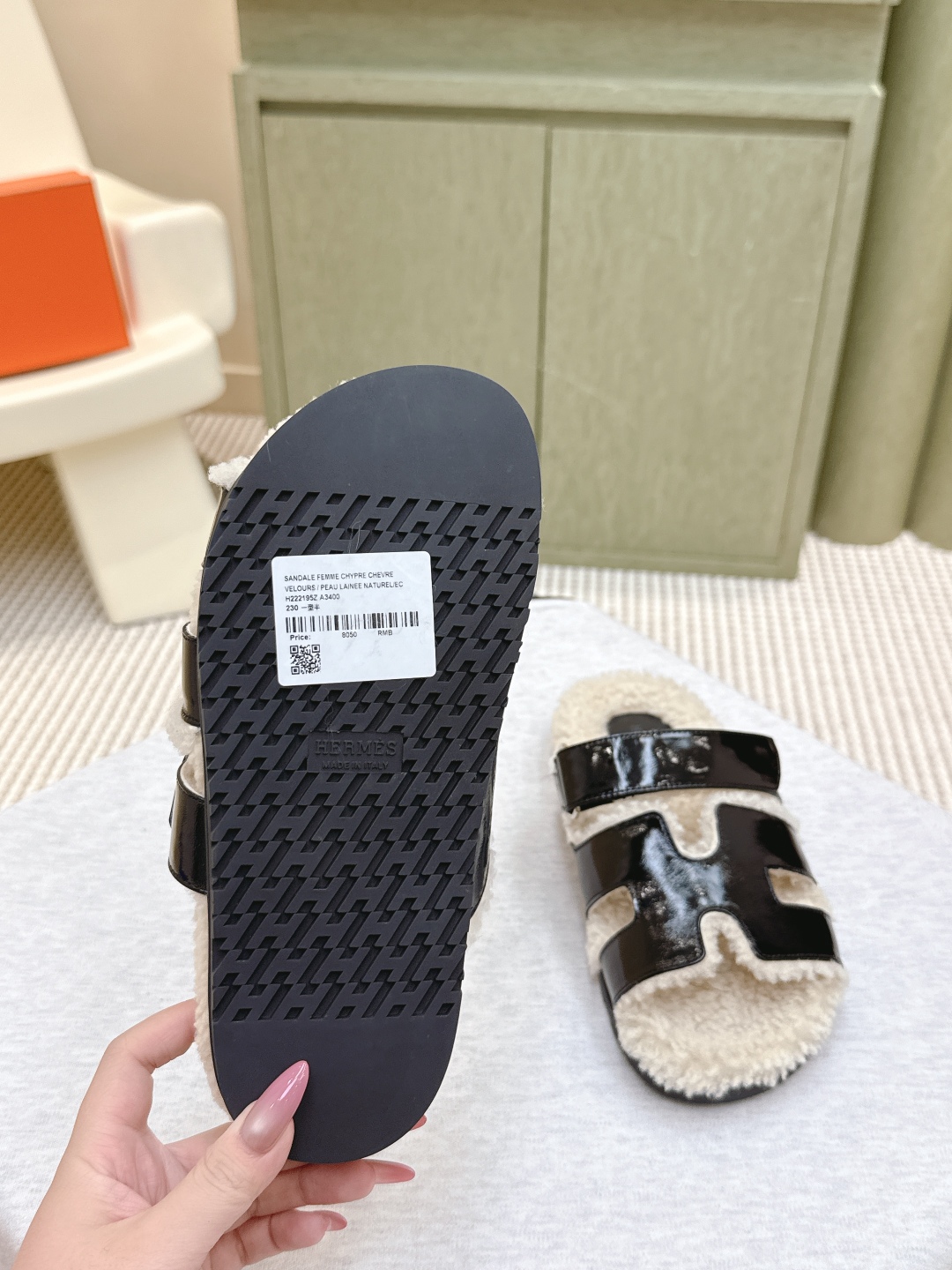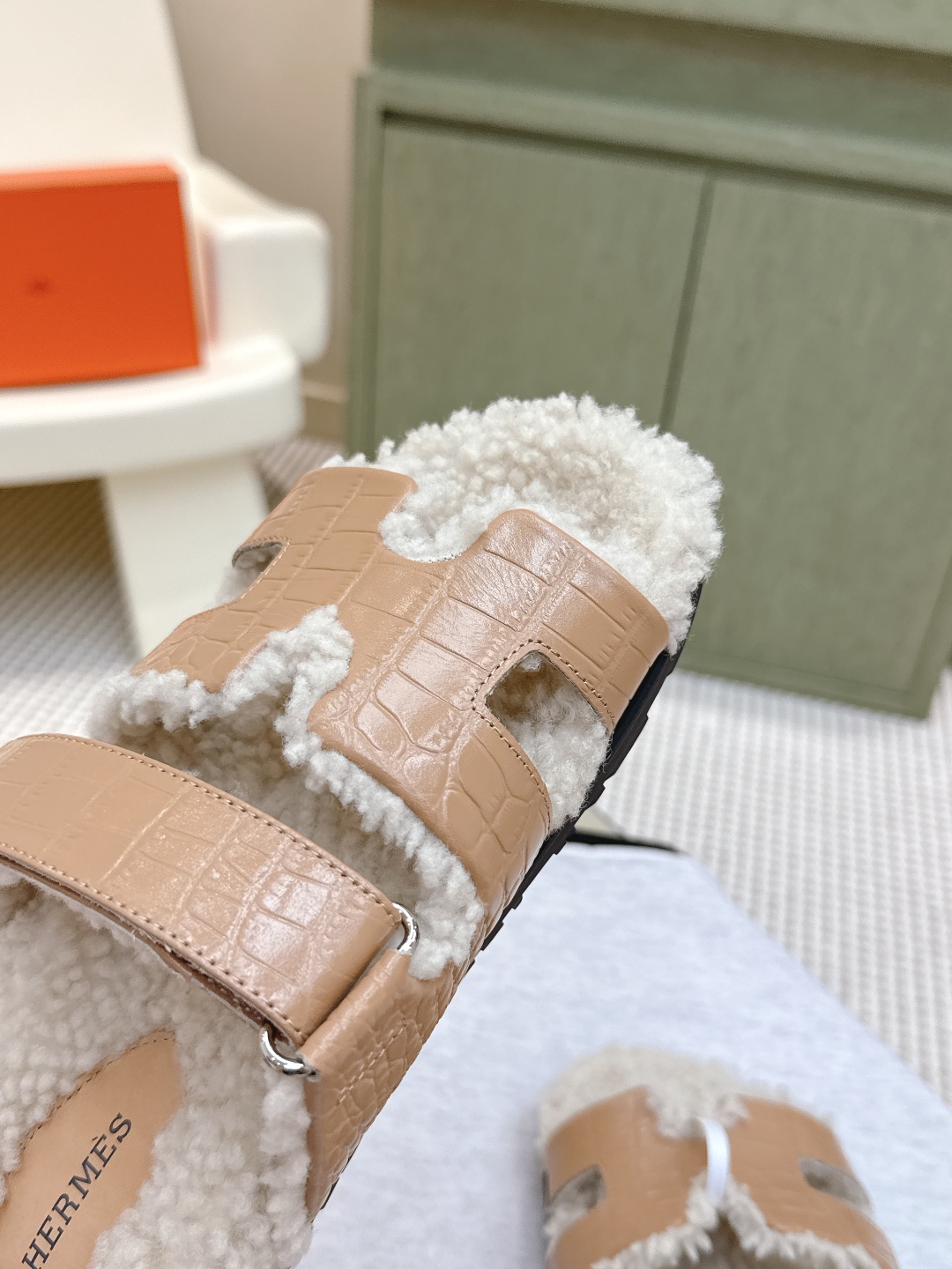 Hermes 一波惊喜爱马仕毛拖妥妥的时尚款顶级出品轻奢 hermes泰迪毛拖真的软软糯糯超美....... 初冬的第一双毛拖,真的穿起太舒服了,像踩在地毯上完全不想脱下来,俗称二舅拖鞋它来啦 带来极度舒适的一天.... 材质:进口麂皮 进口牛皮 内里:进口羊羔毛 Tpu防滑大底 Size:#35-40(40订做不退换)