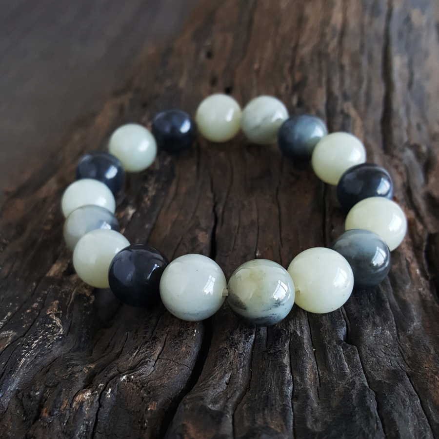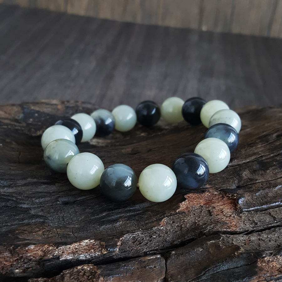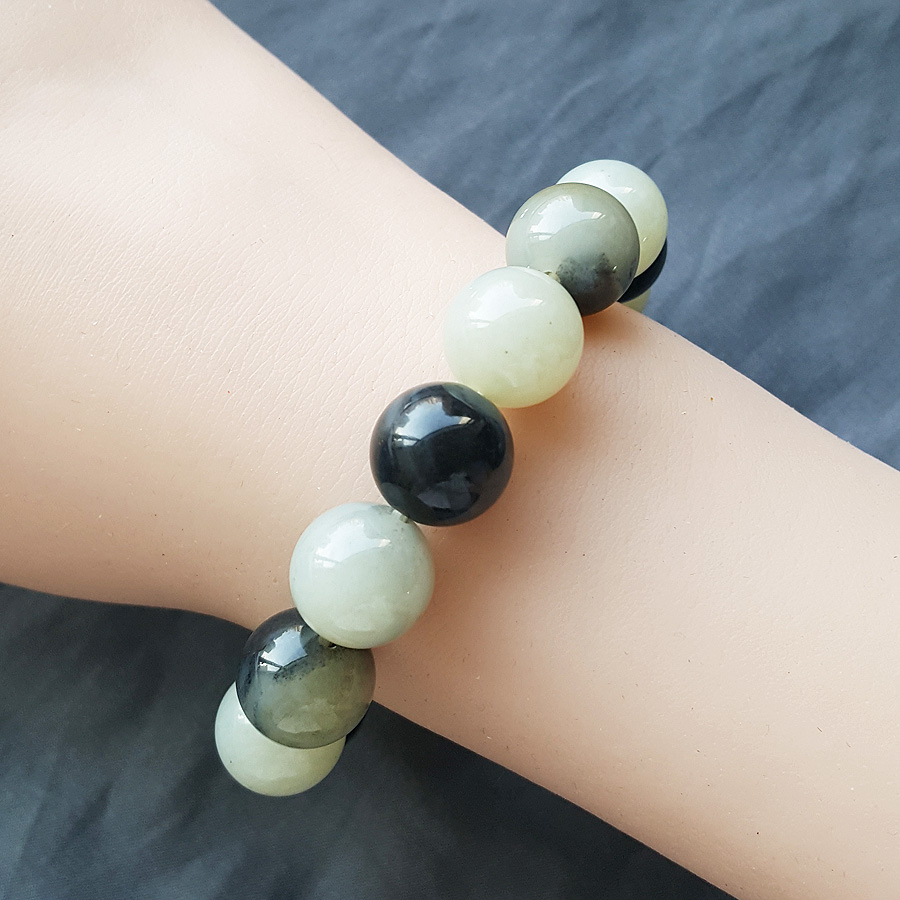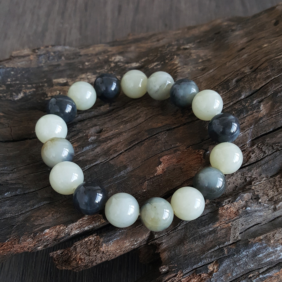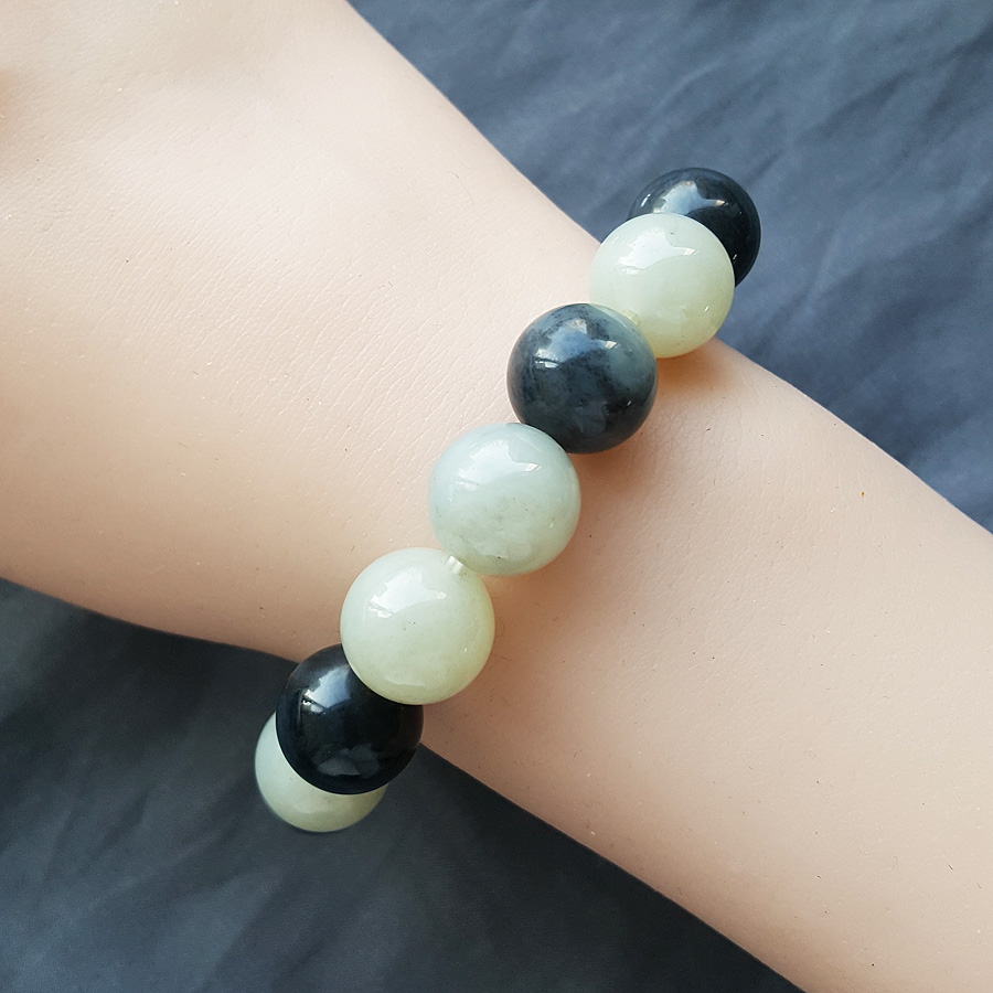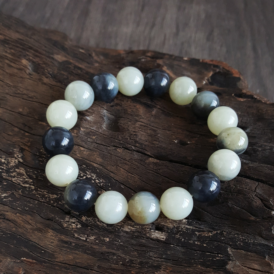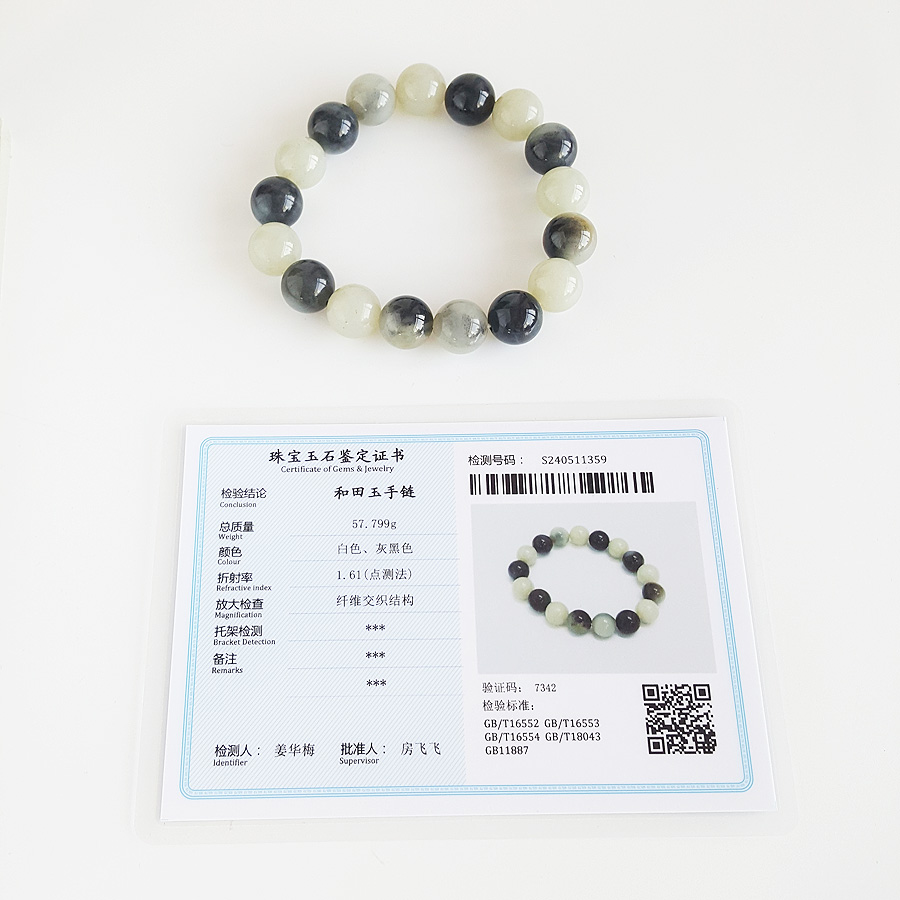 【天然正品】天然新疆料约13MM青花和青白玉和田玉圆珠手串现售价:1080!特价 230524NJ12