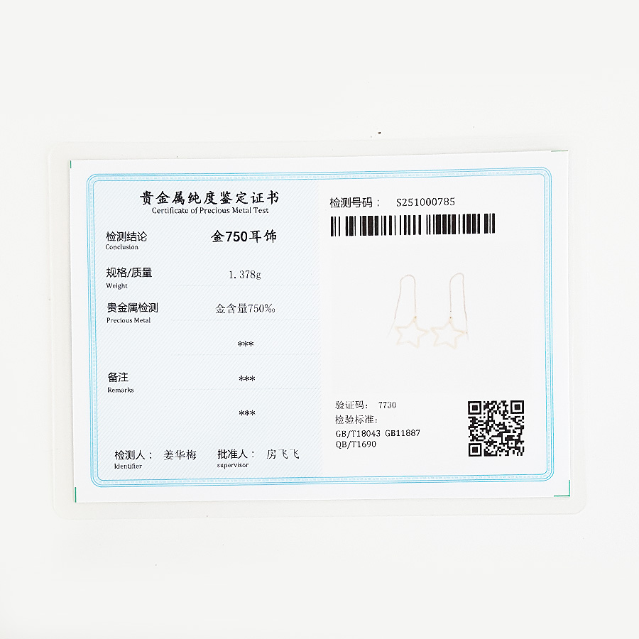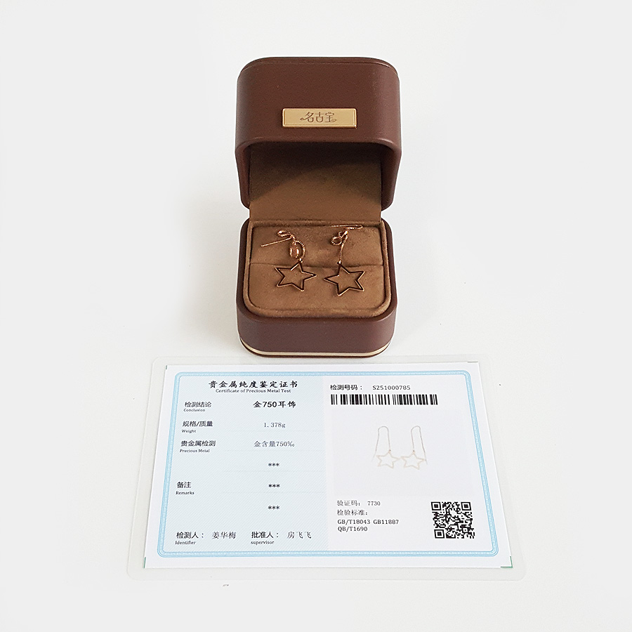 【天然正品】AU750玫瑰金时尚设计款星星造型耳环77.1*17.0*12.0MM(皆取最大值)女士221025NJS29 特价:1480元
