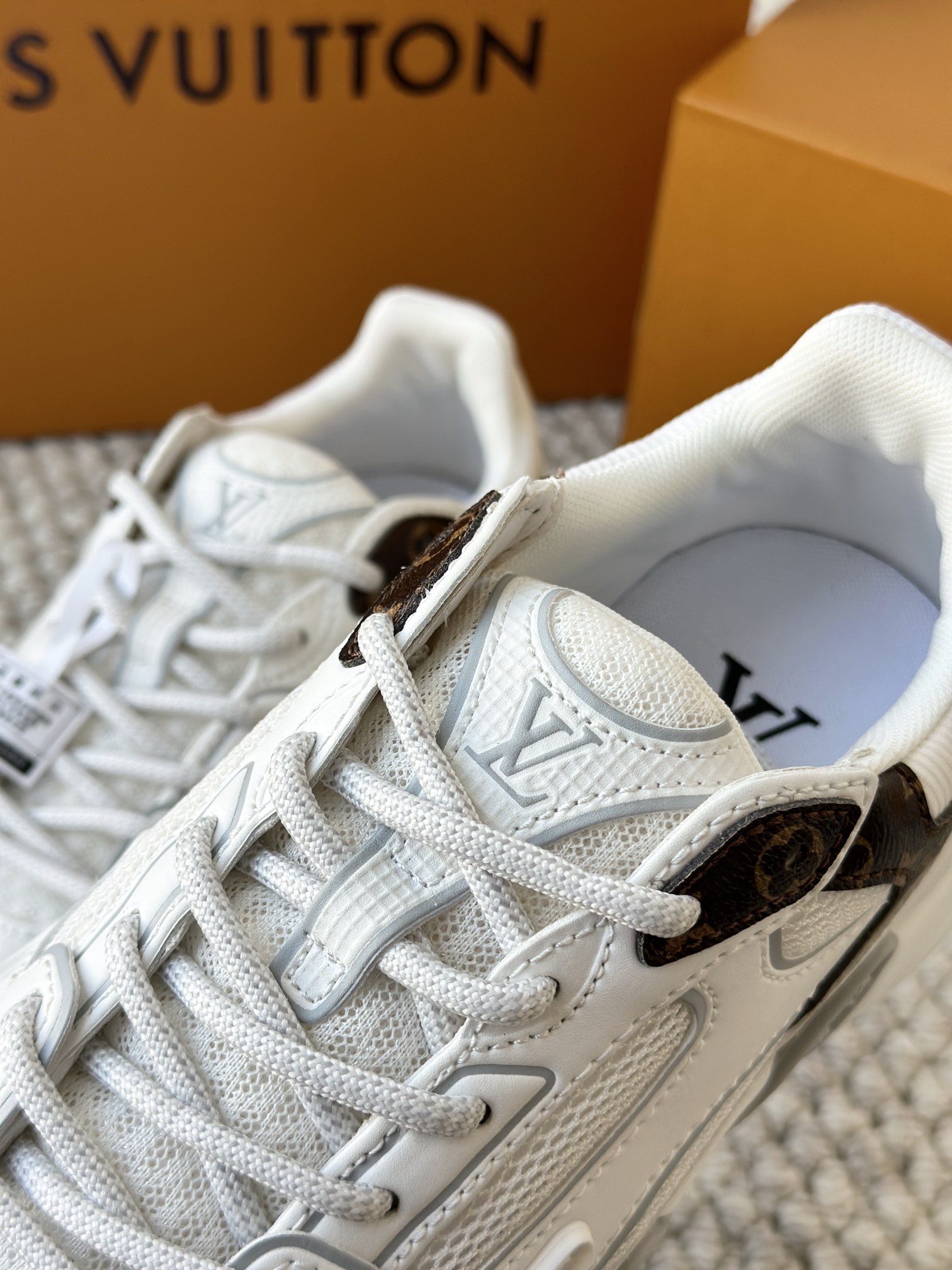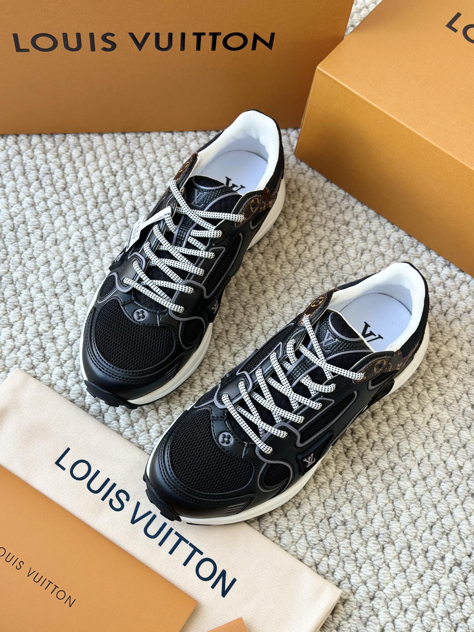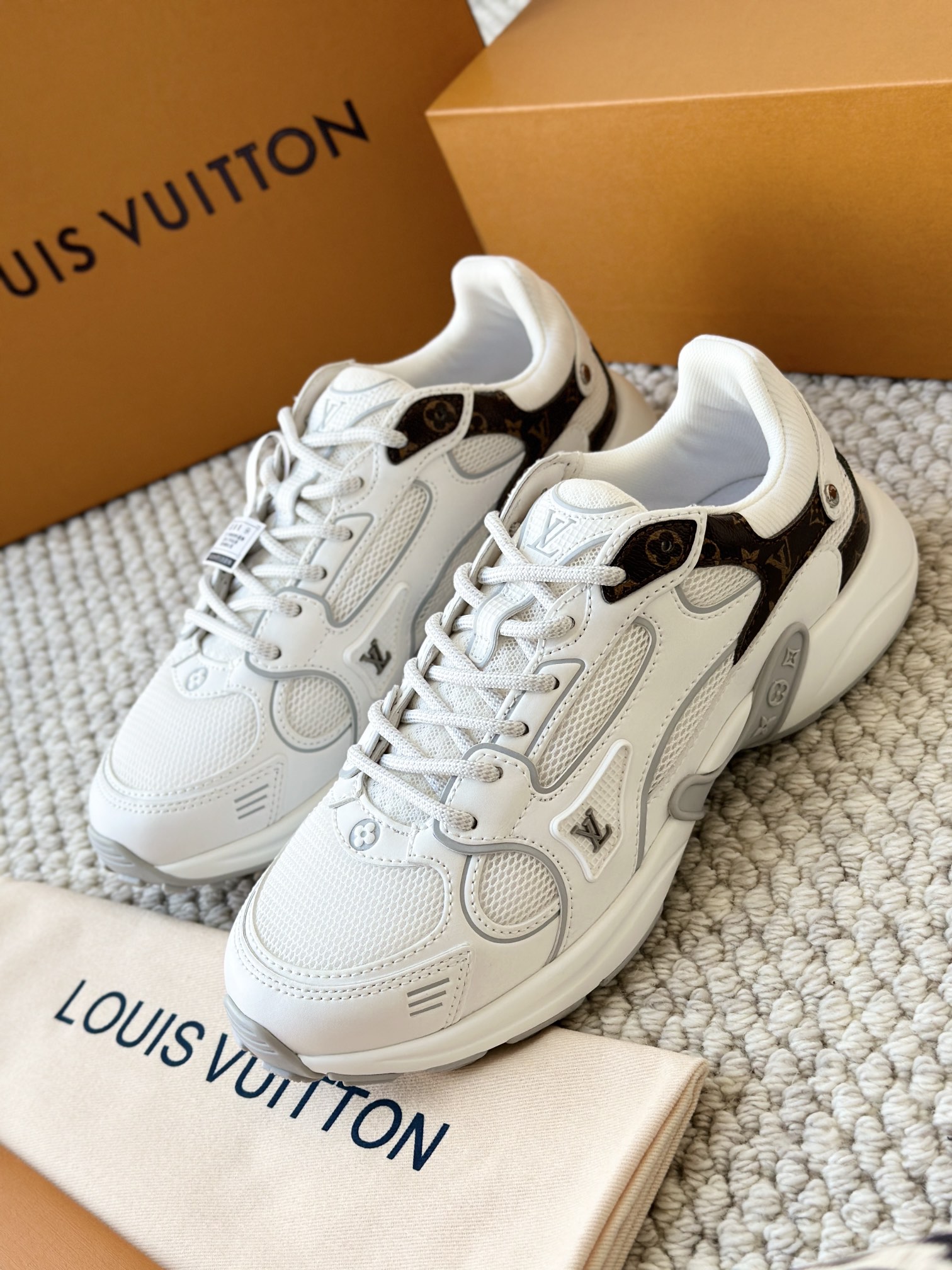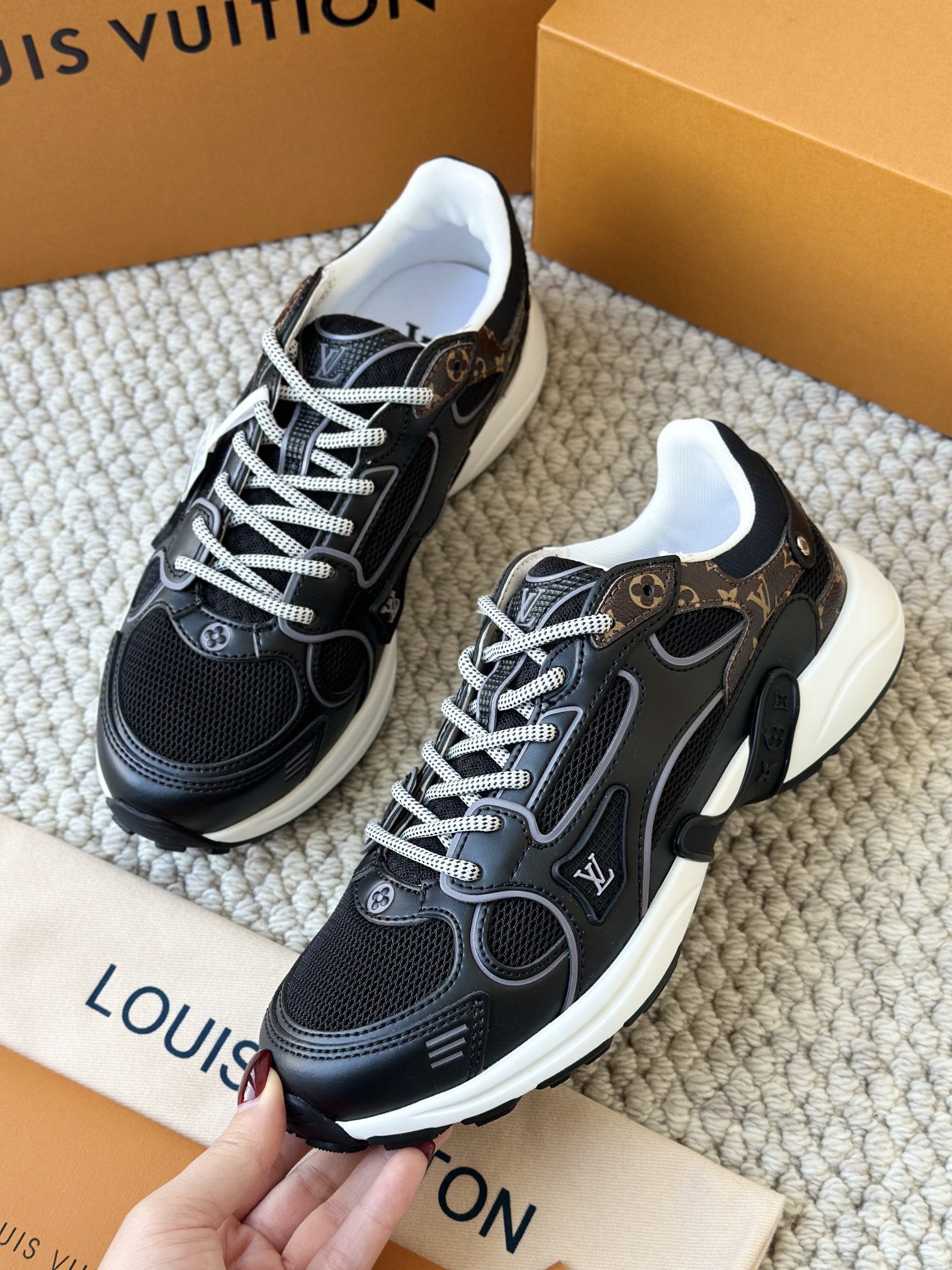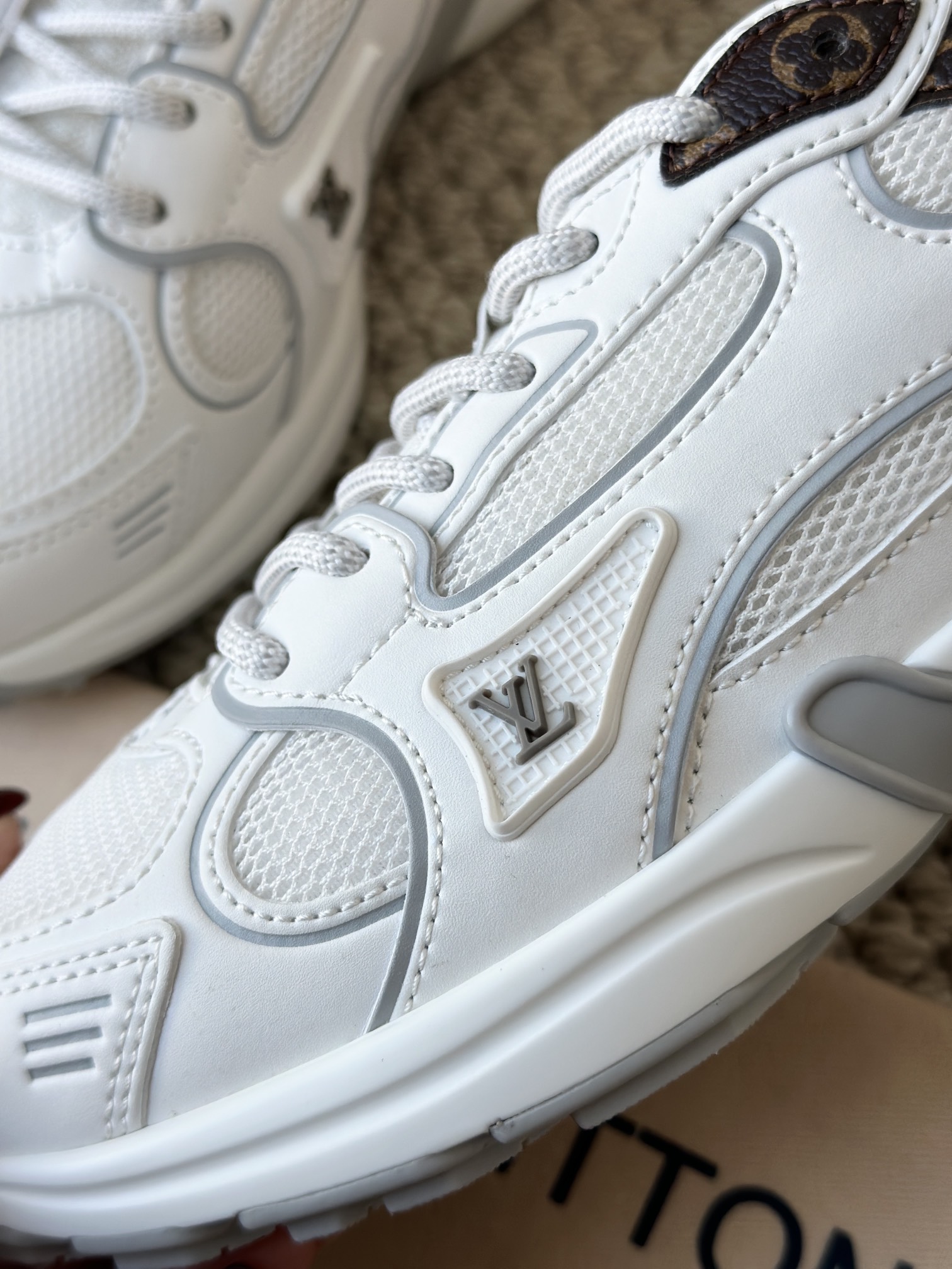 进口老花小牛皮拼接网面鞋面 运动圈这波要人手一双了!! 颜值高还透气耐穿,触感细腻且耐用 彰显出LV品牌一贯的高品质追求