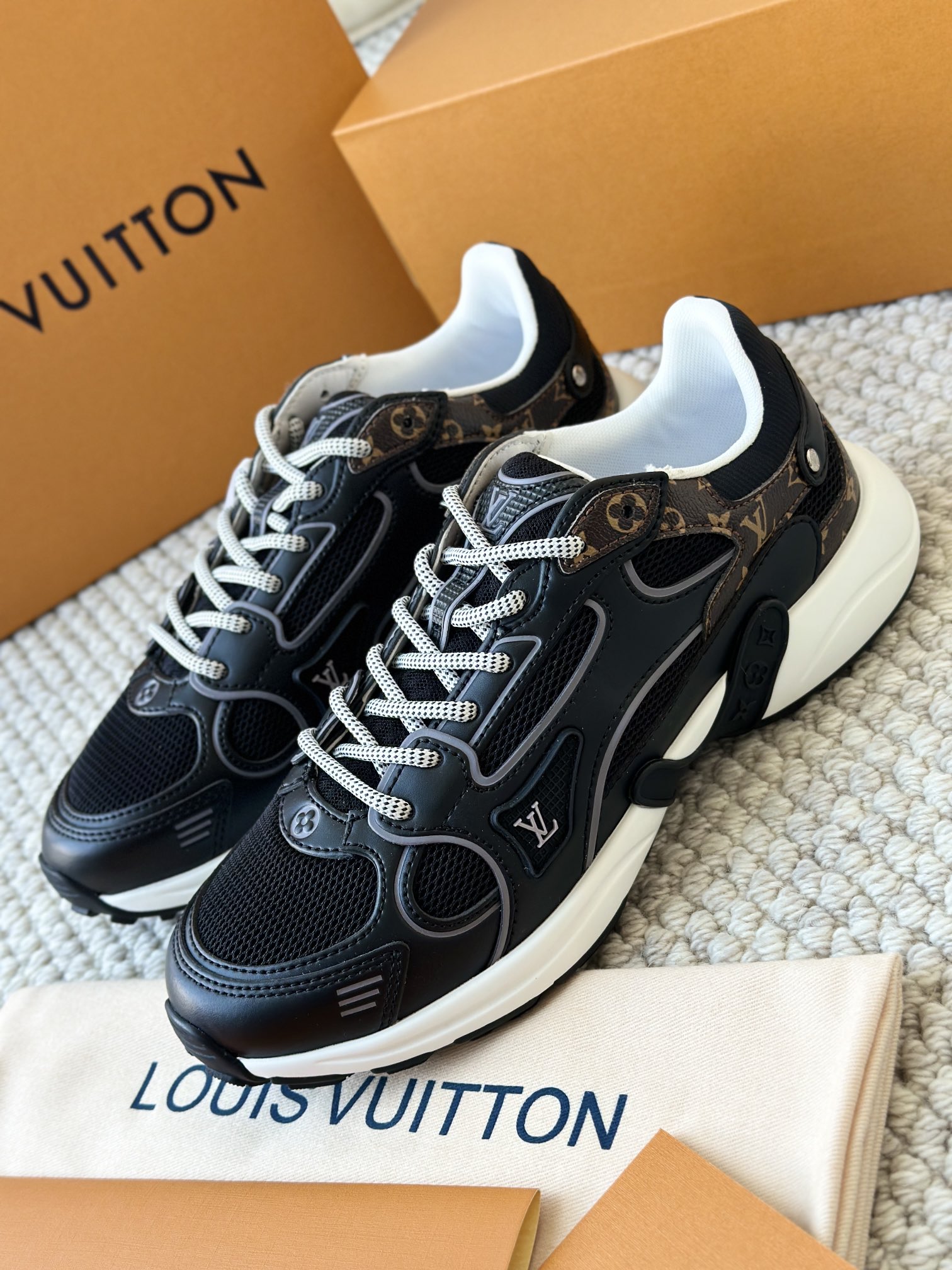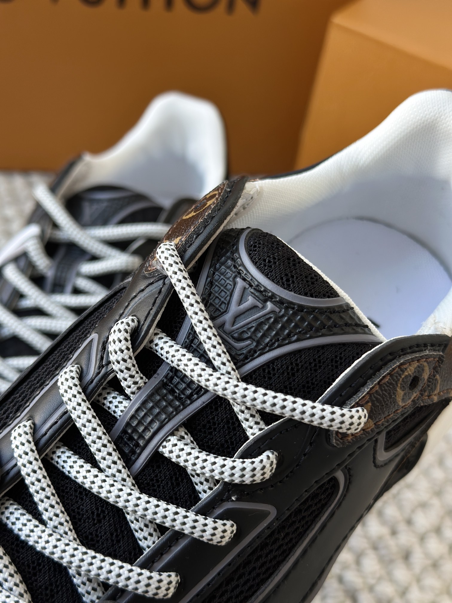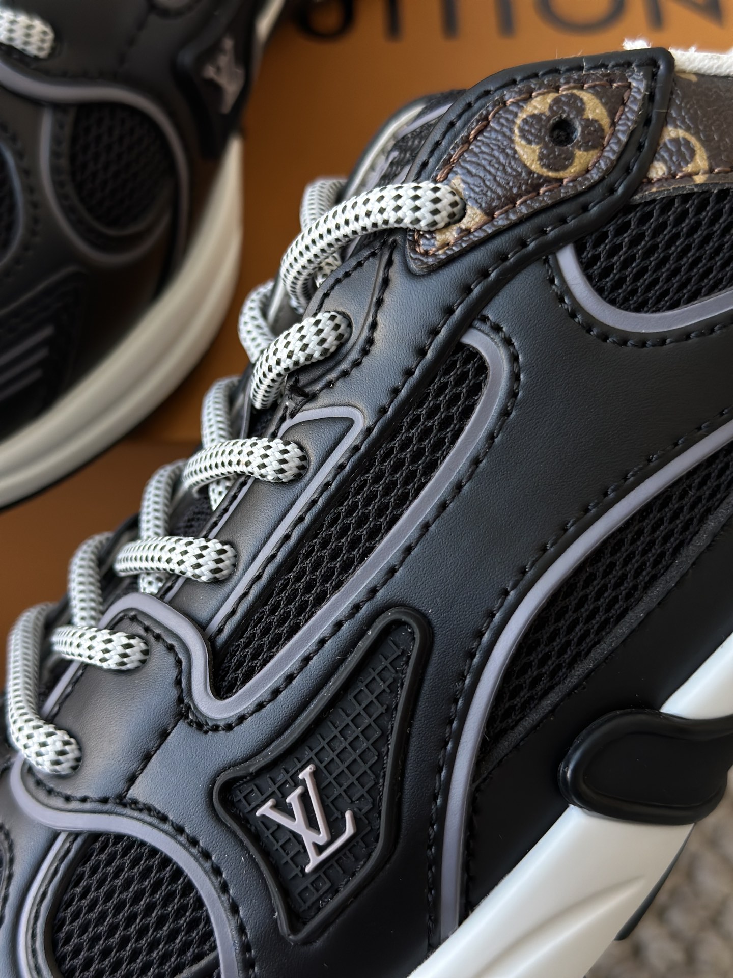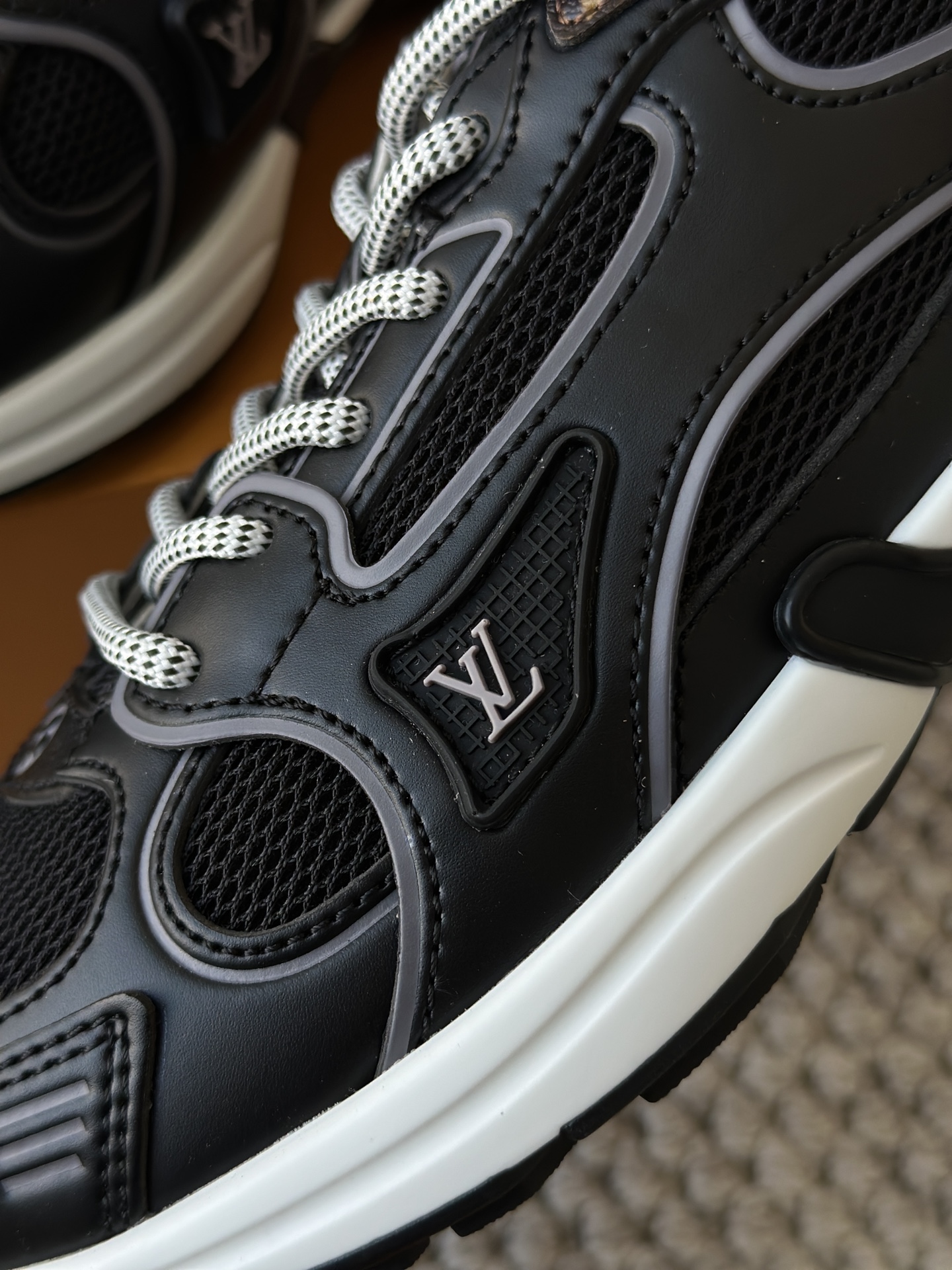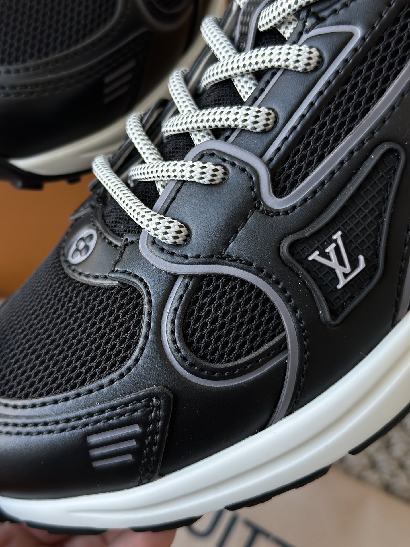 进口老花小牛皮拼接网面鞋面 运动圈这波要人手一双了!! 颜值高还透气耐穿,触感细腻且耐用 彰显出LV品牌一贯的高品质追求