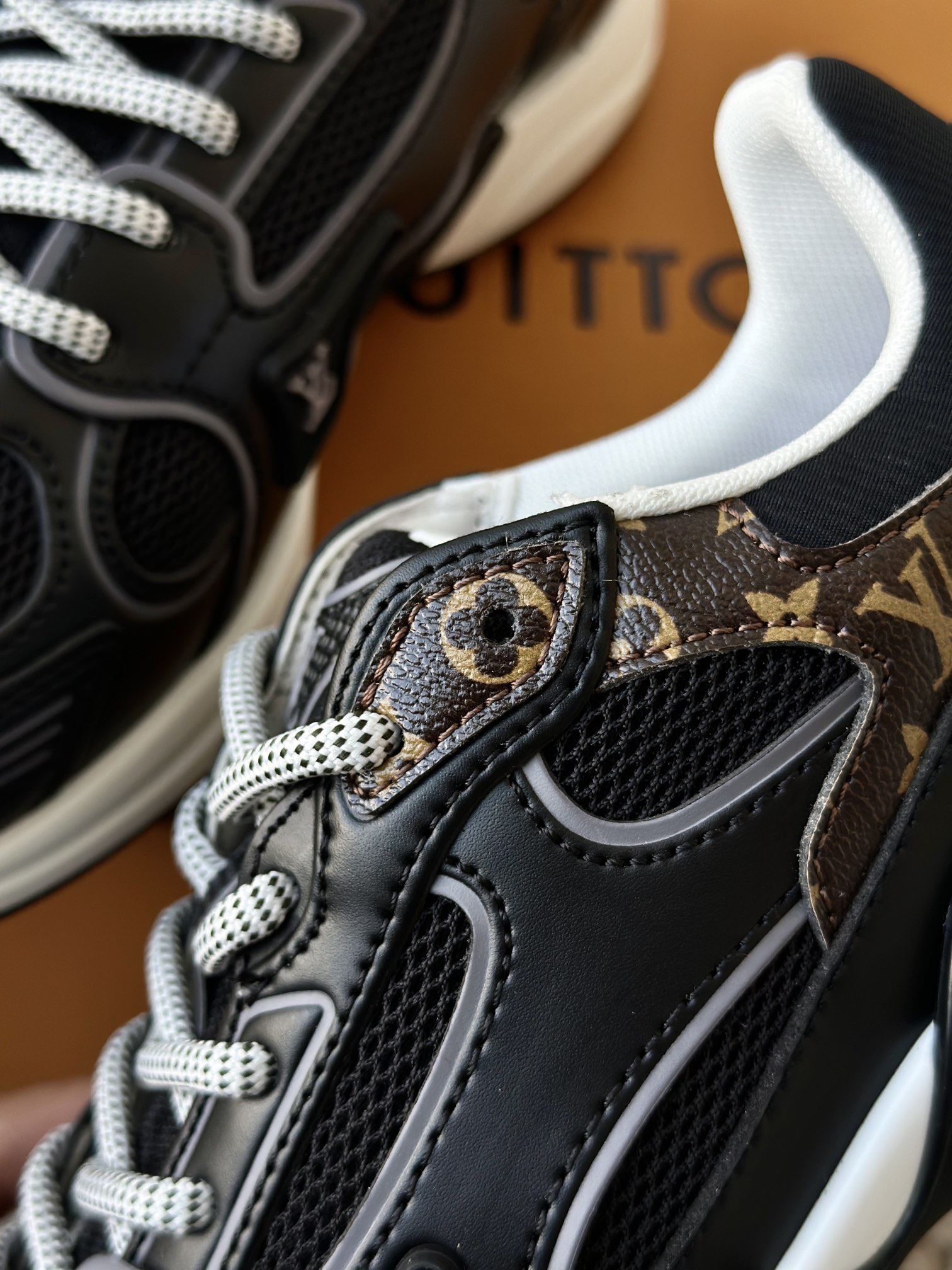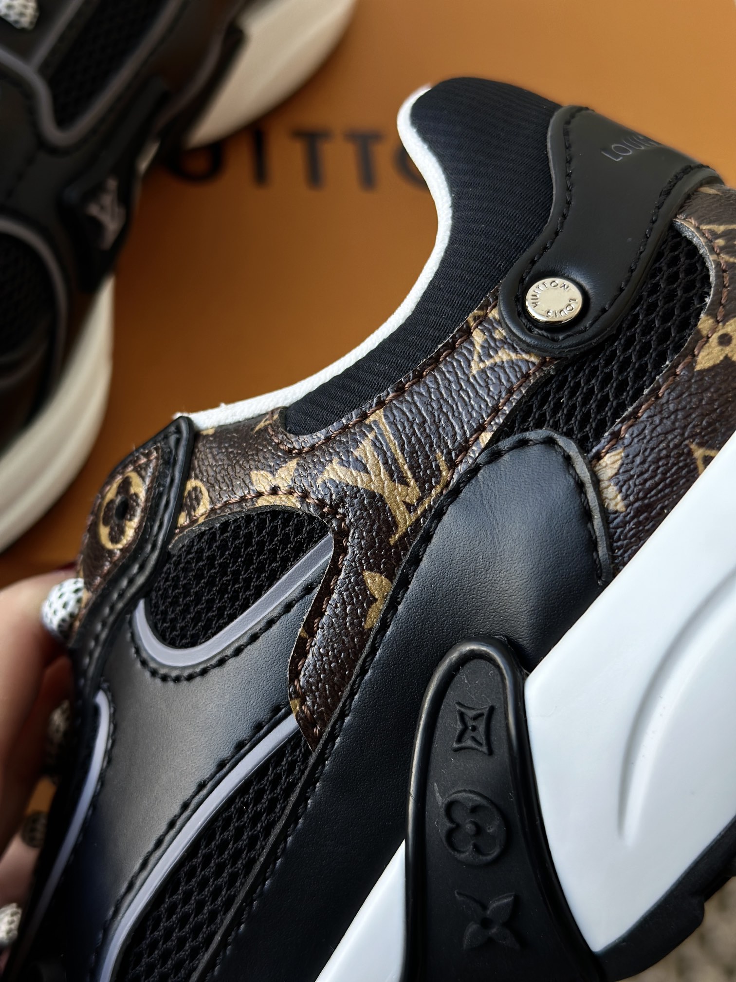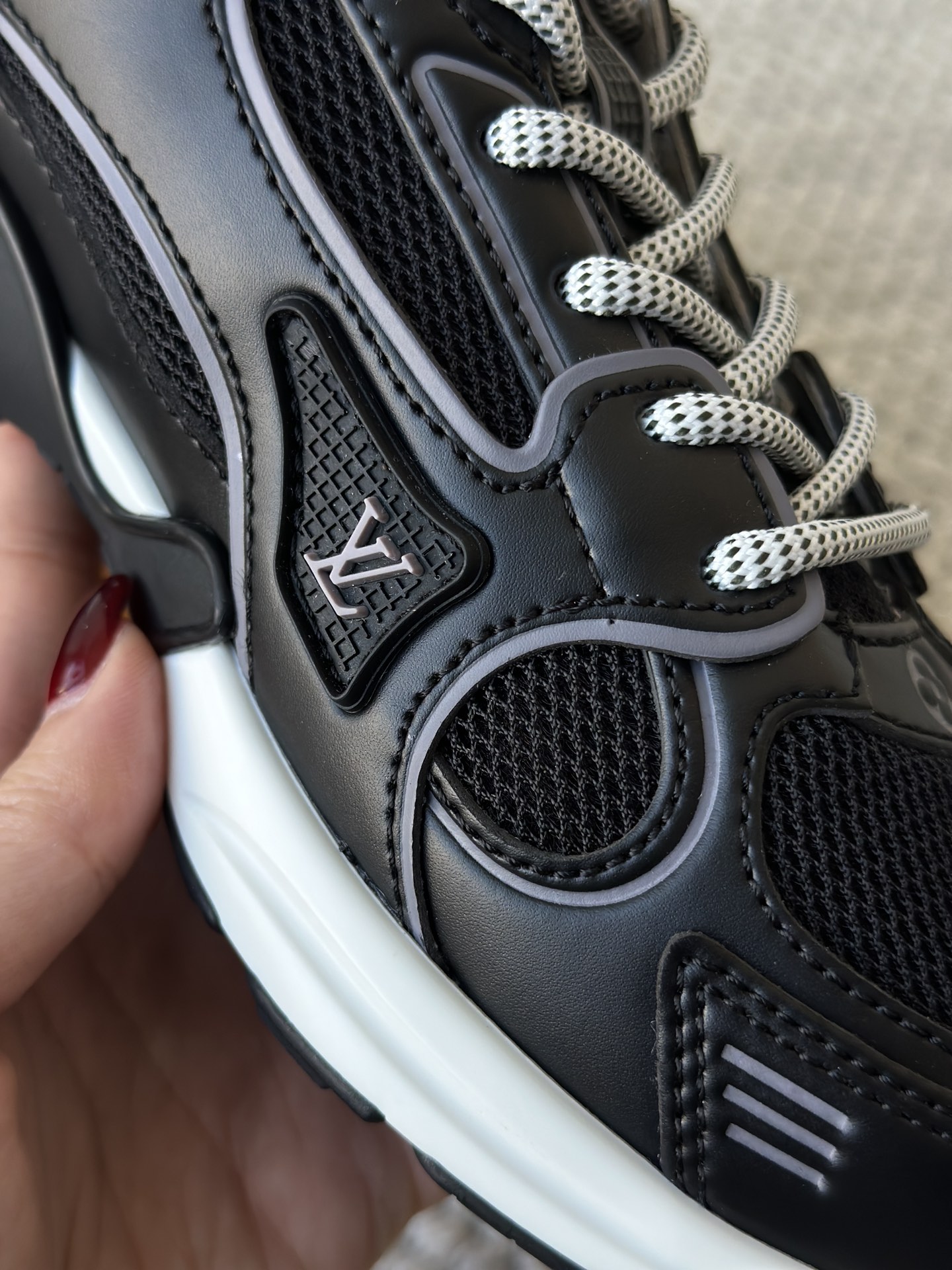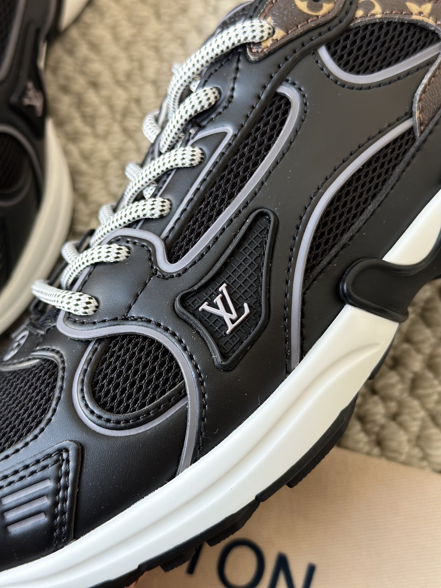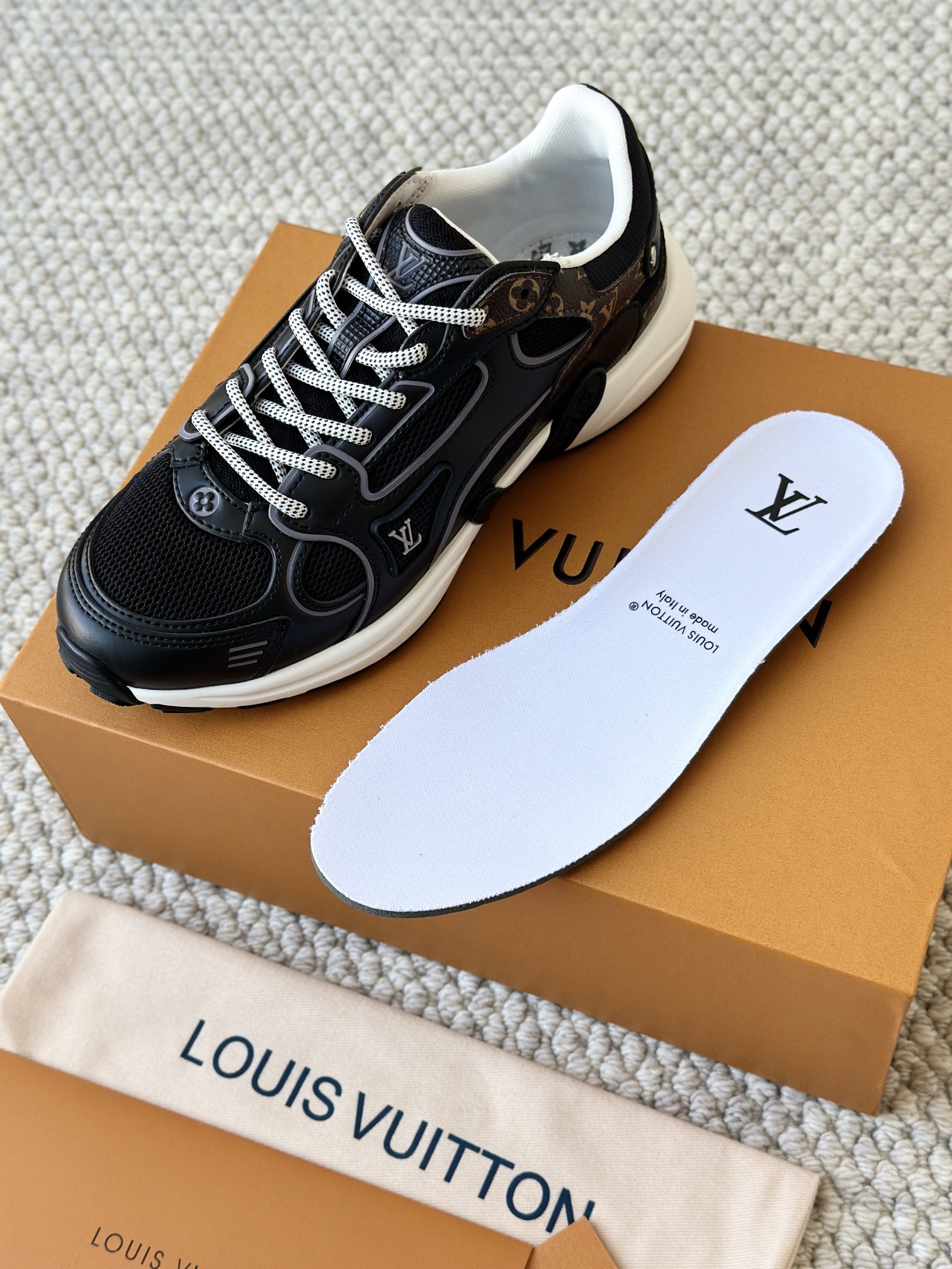 进口老花小牛皮拼接网面鞋面 运动圈这波要人手一双了!! 颜值高还透气耐穿,触感细腻且耐用 彰显出LV品牌一贯的高品质追求