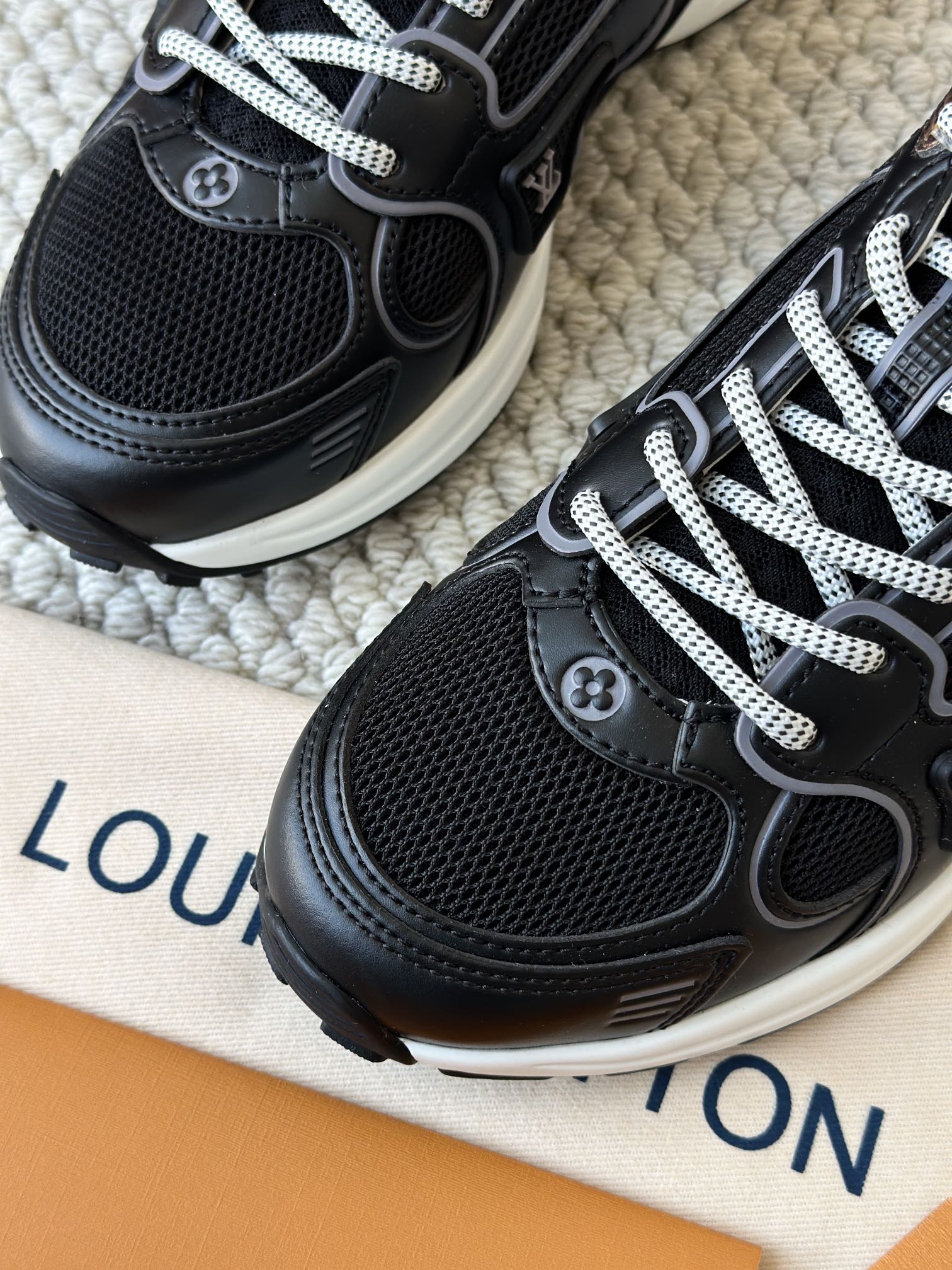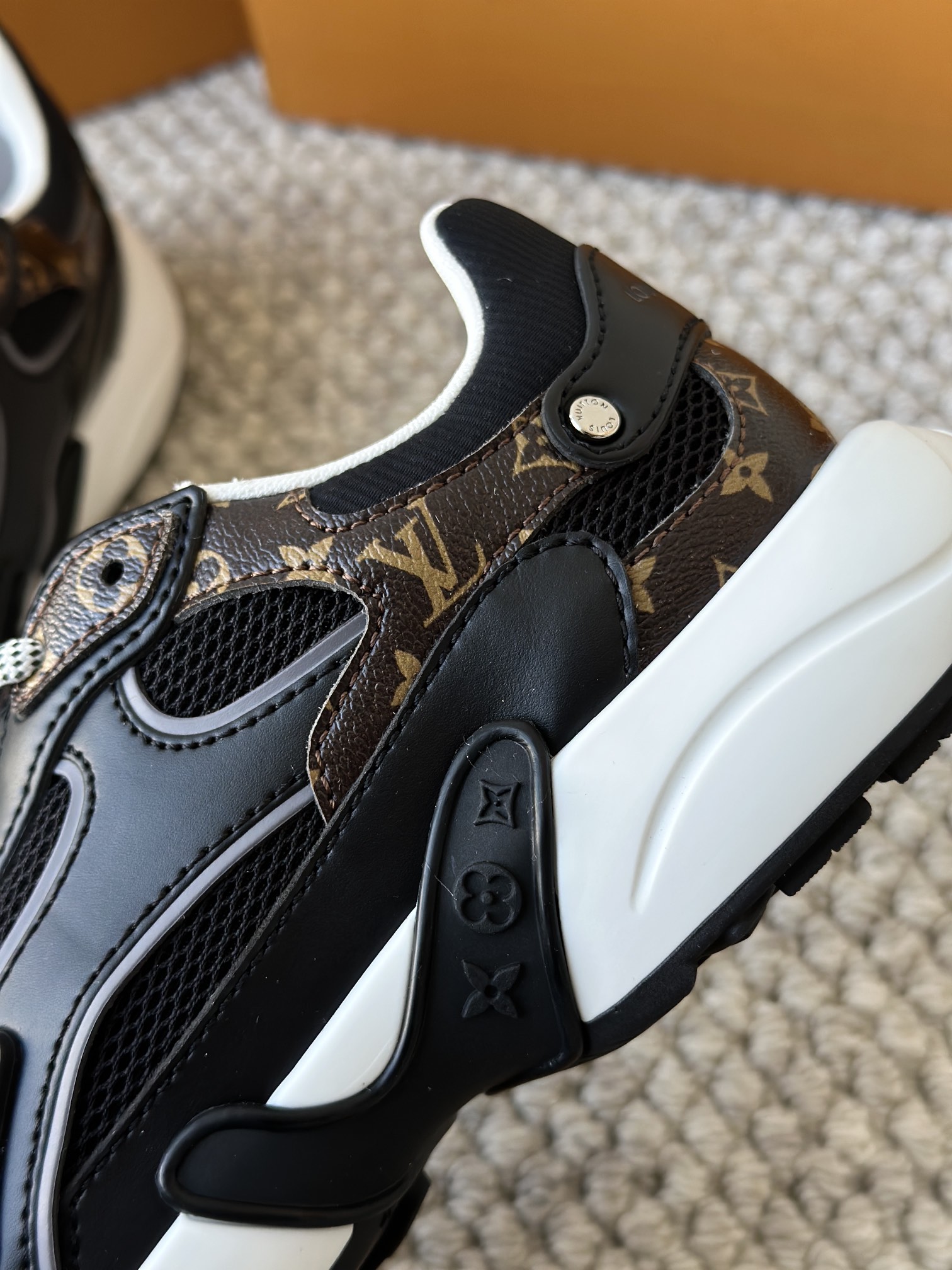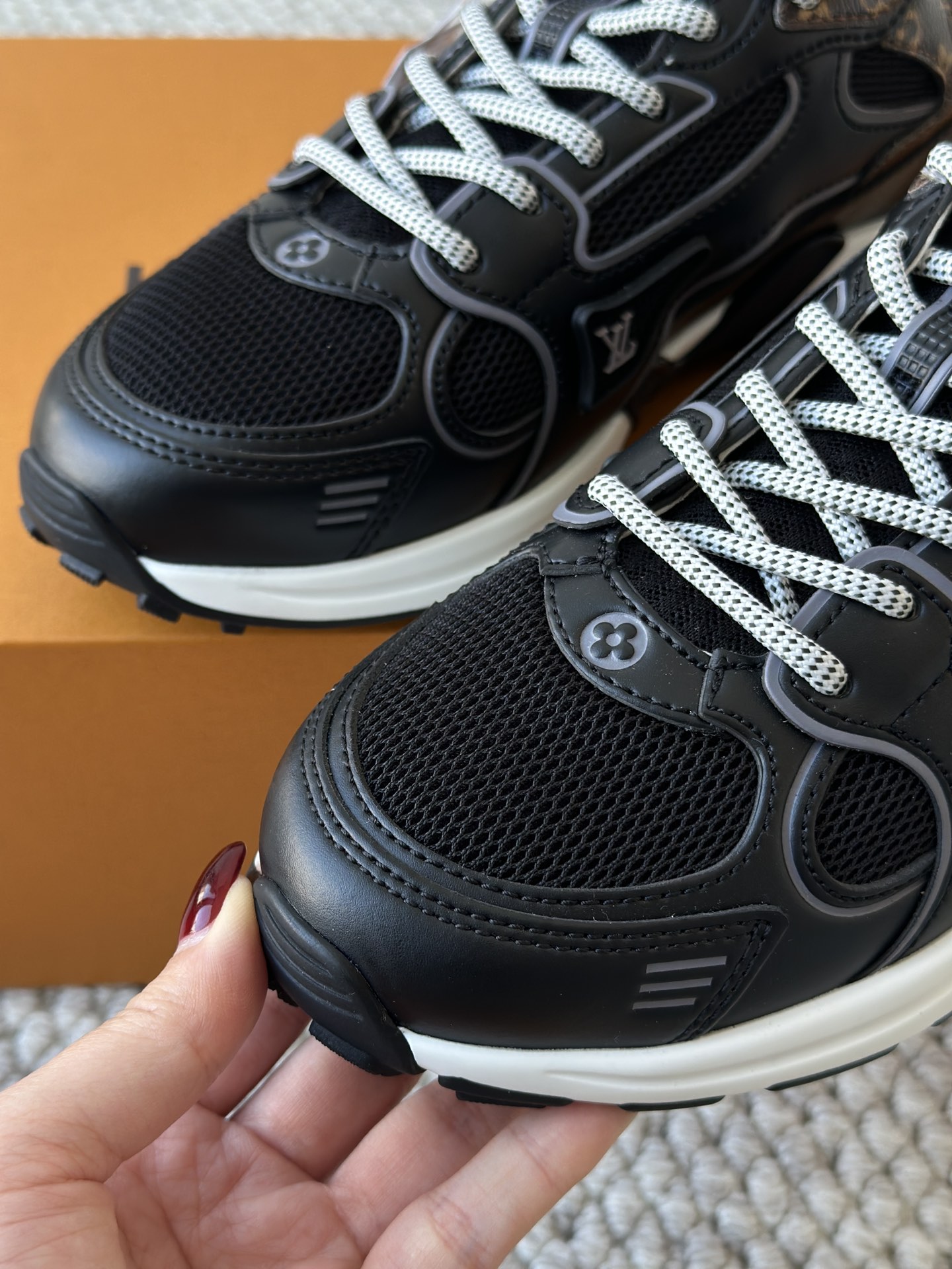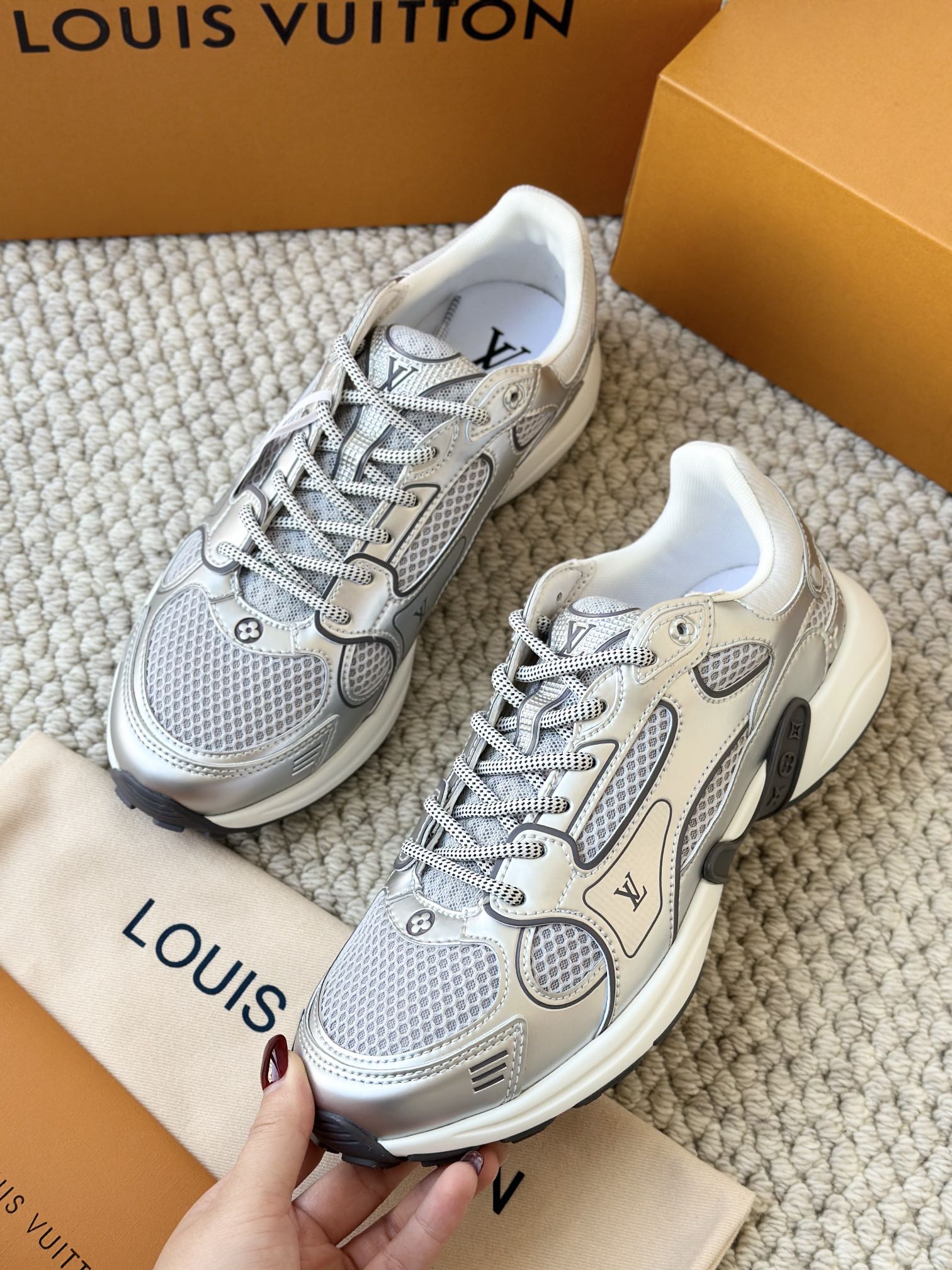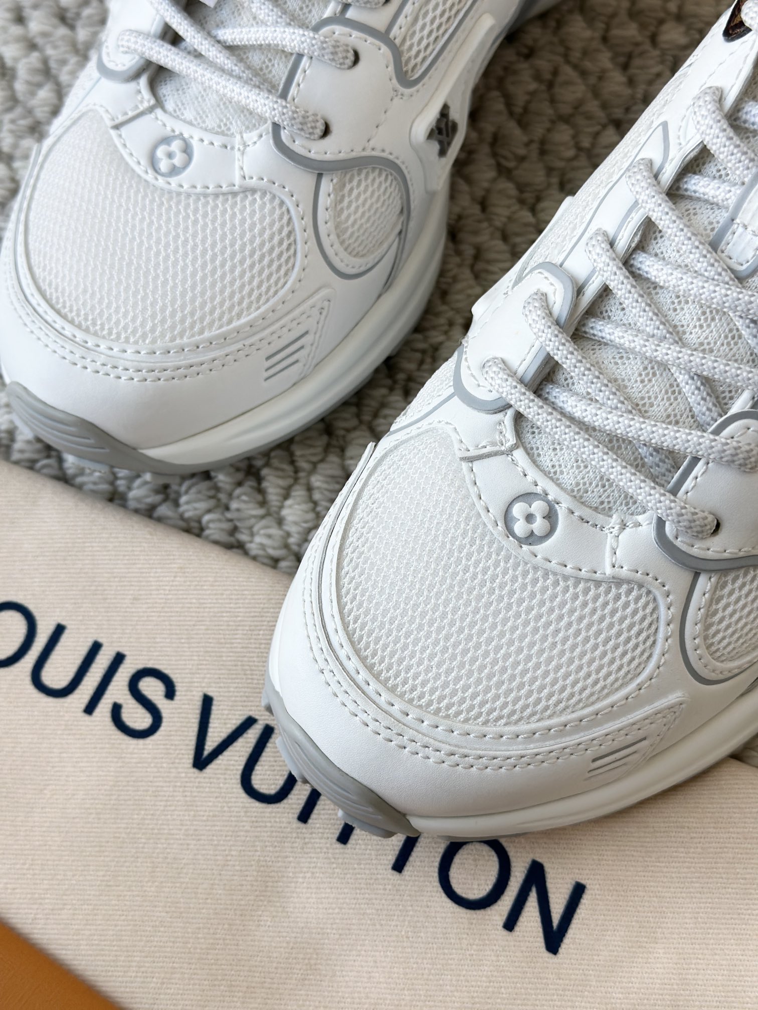 进口老花小牛皮拼接网面鞋面 运动圈这波要人手一双了!! 颜值高还透气耐穿,触感细腻且耐用 彰显出LV品牌一贯的高品质追求