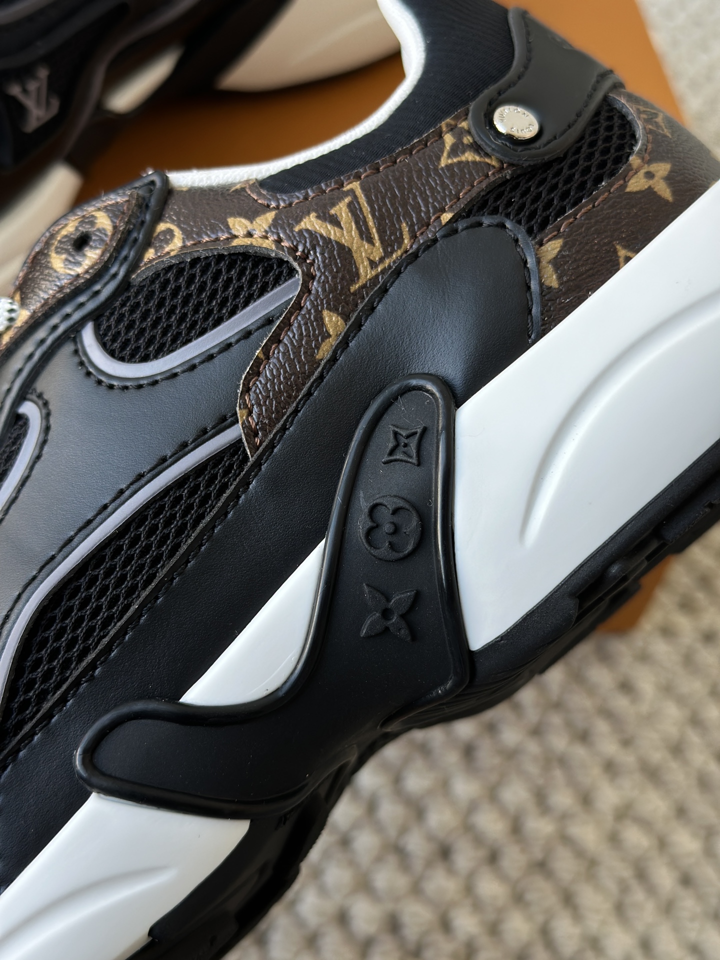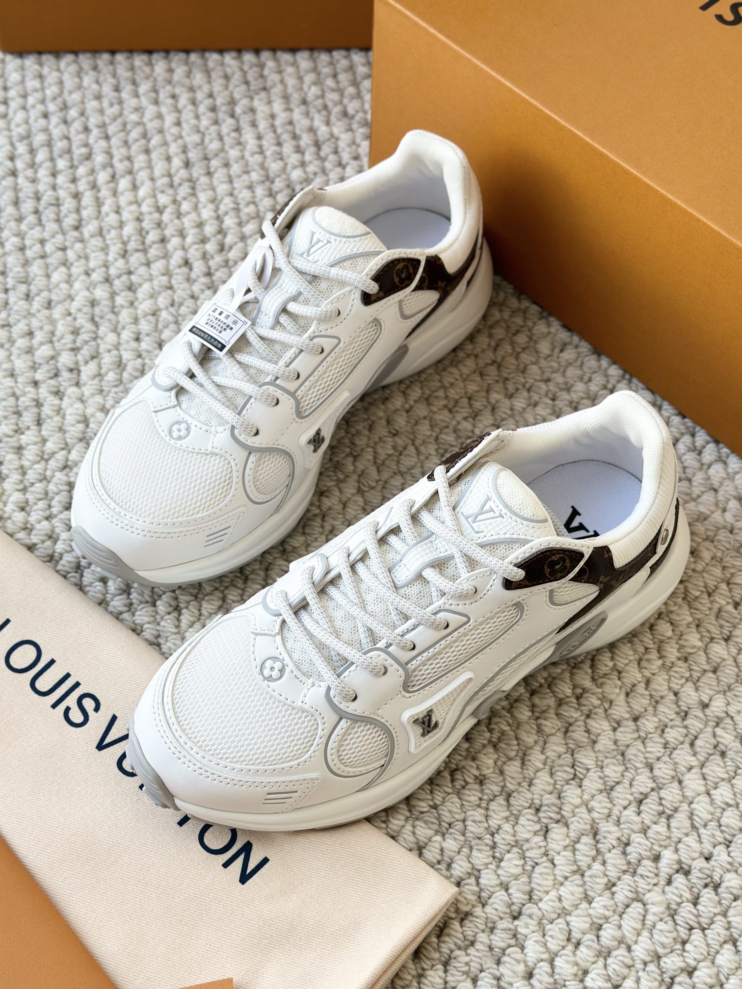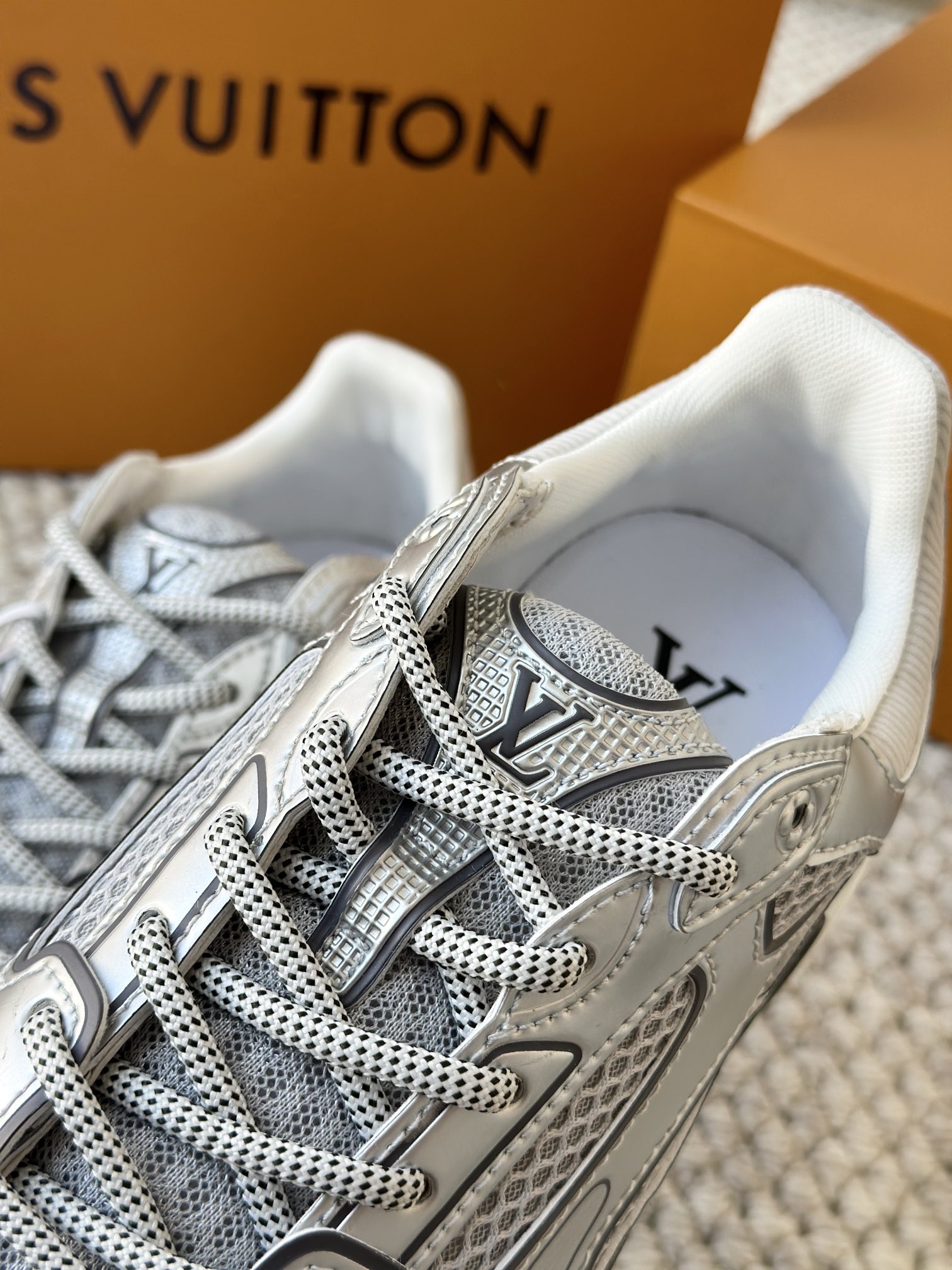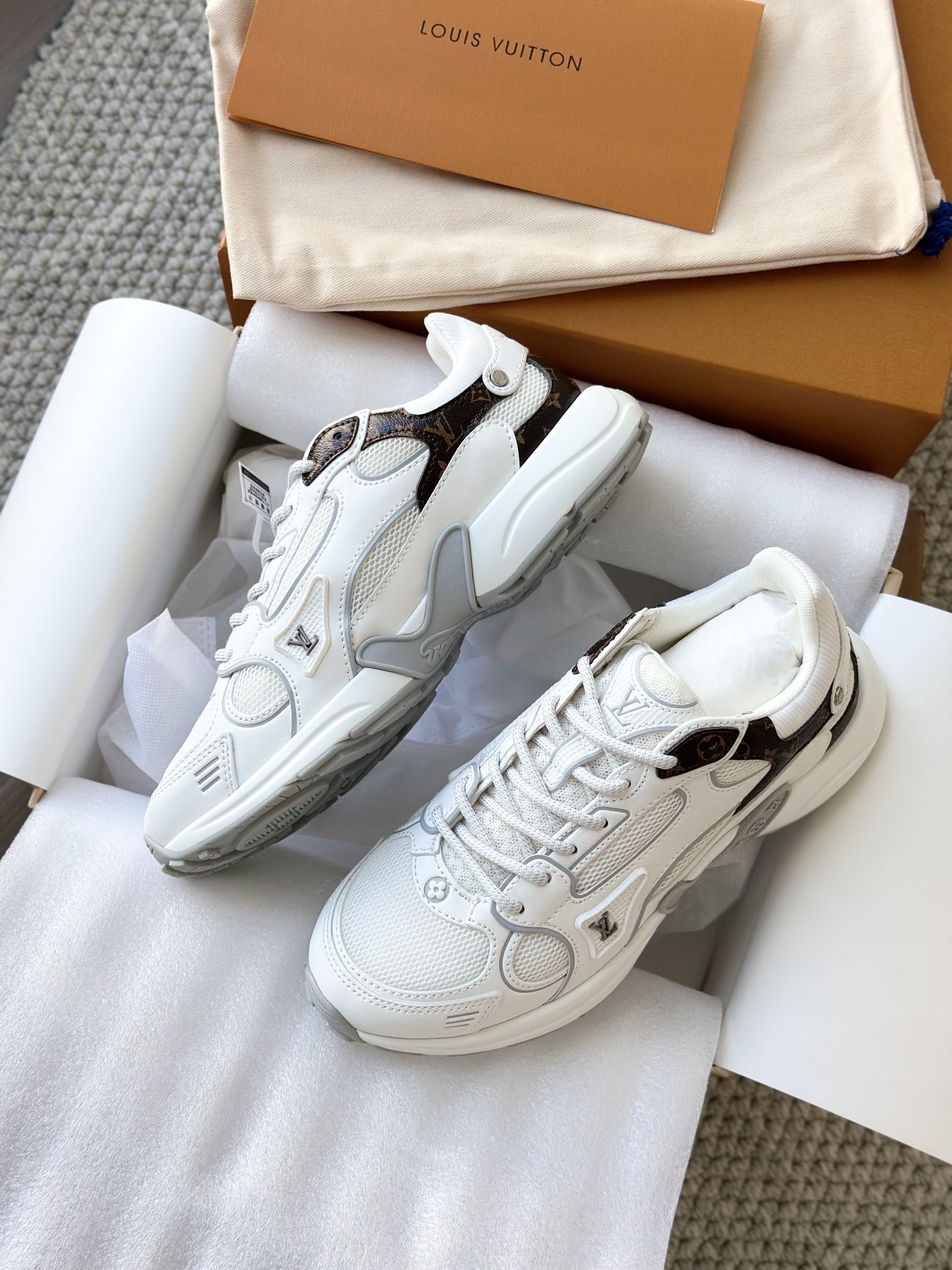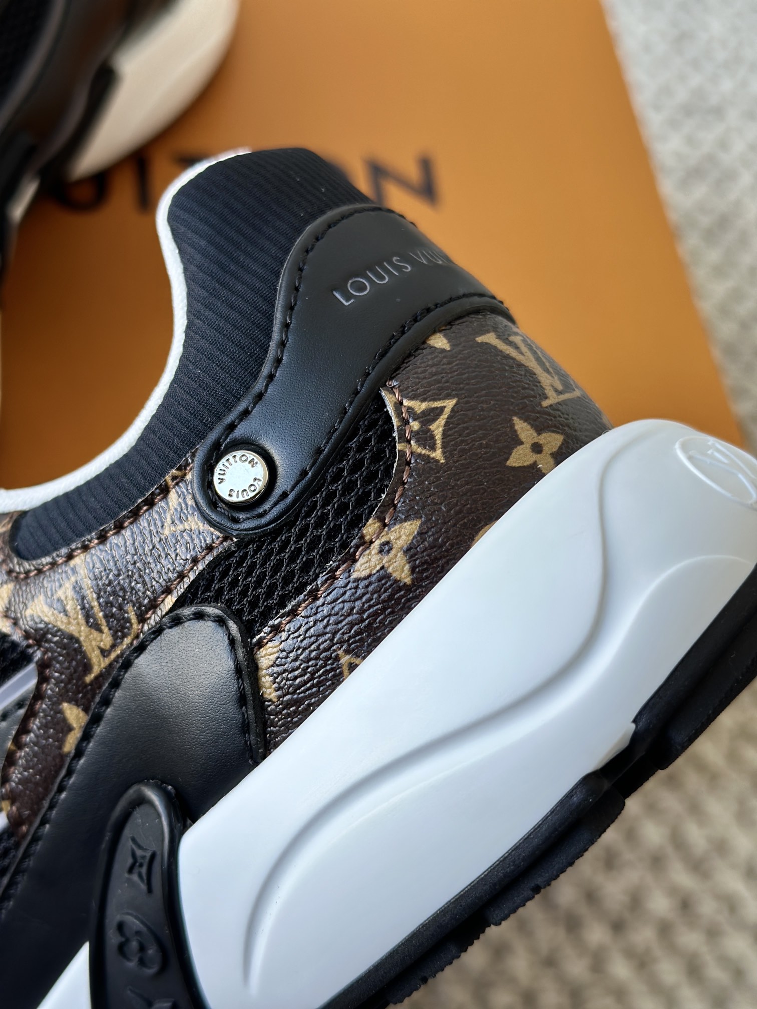 进口老花小牛皮拼接网面鞋面 运动圈这波要人手一双了!! 颜值高还透气耐穿,触感细腻且耐用 彰显出LV品牌一贯的高品质追求