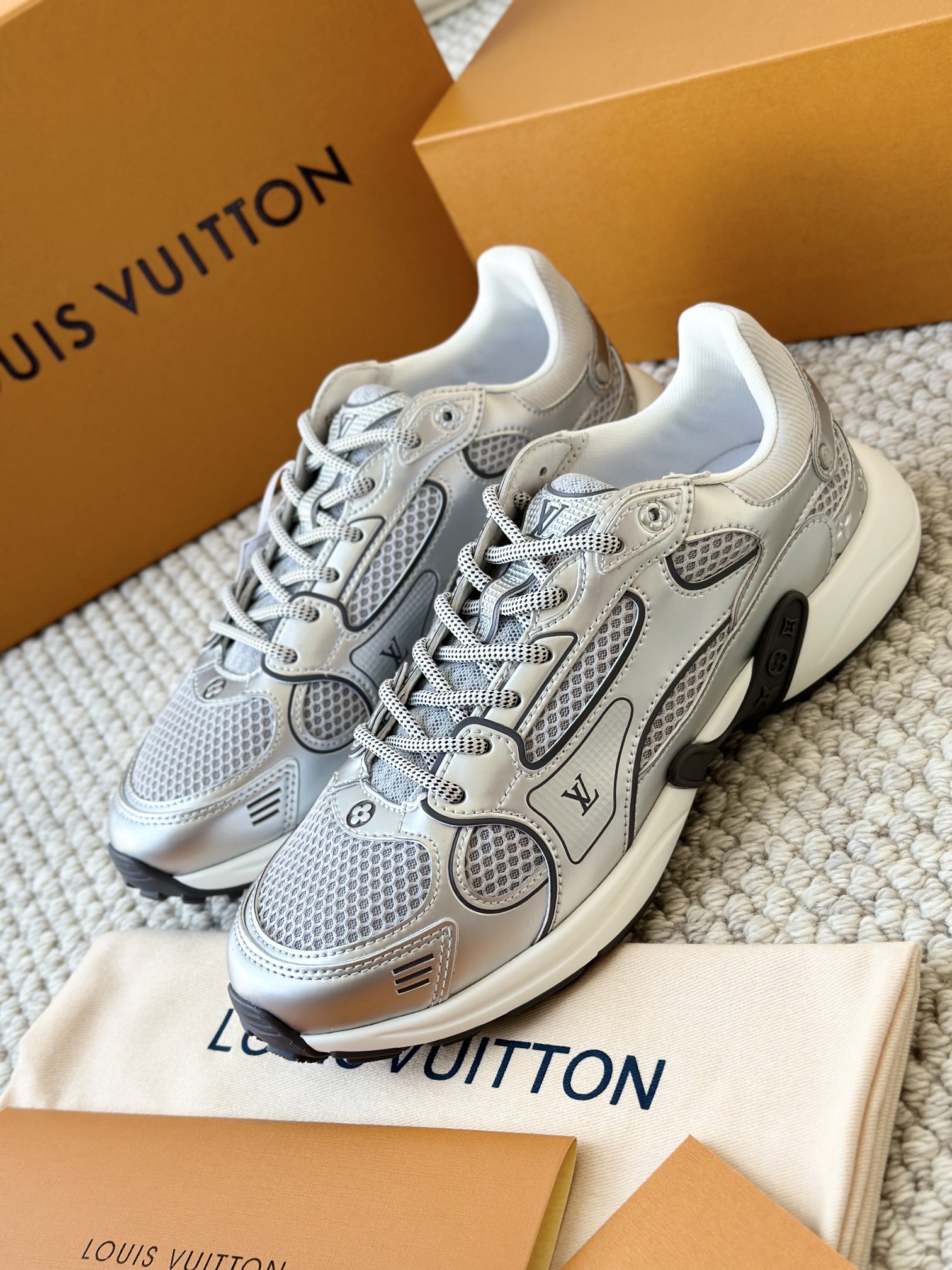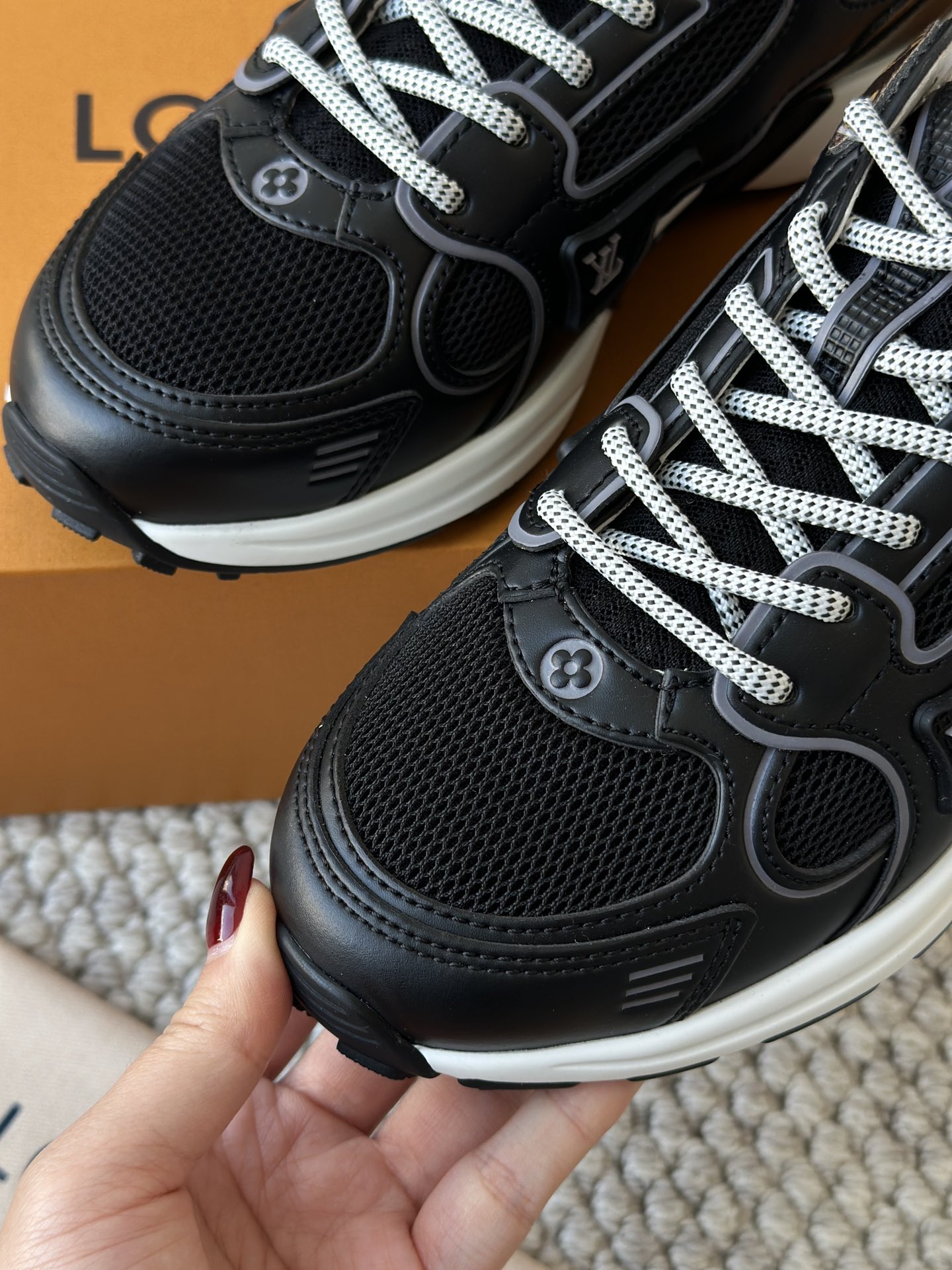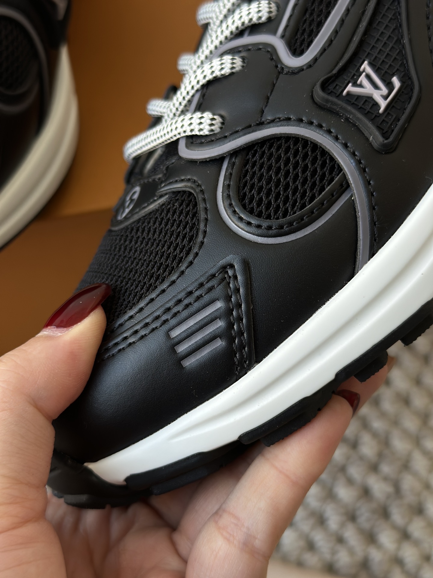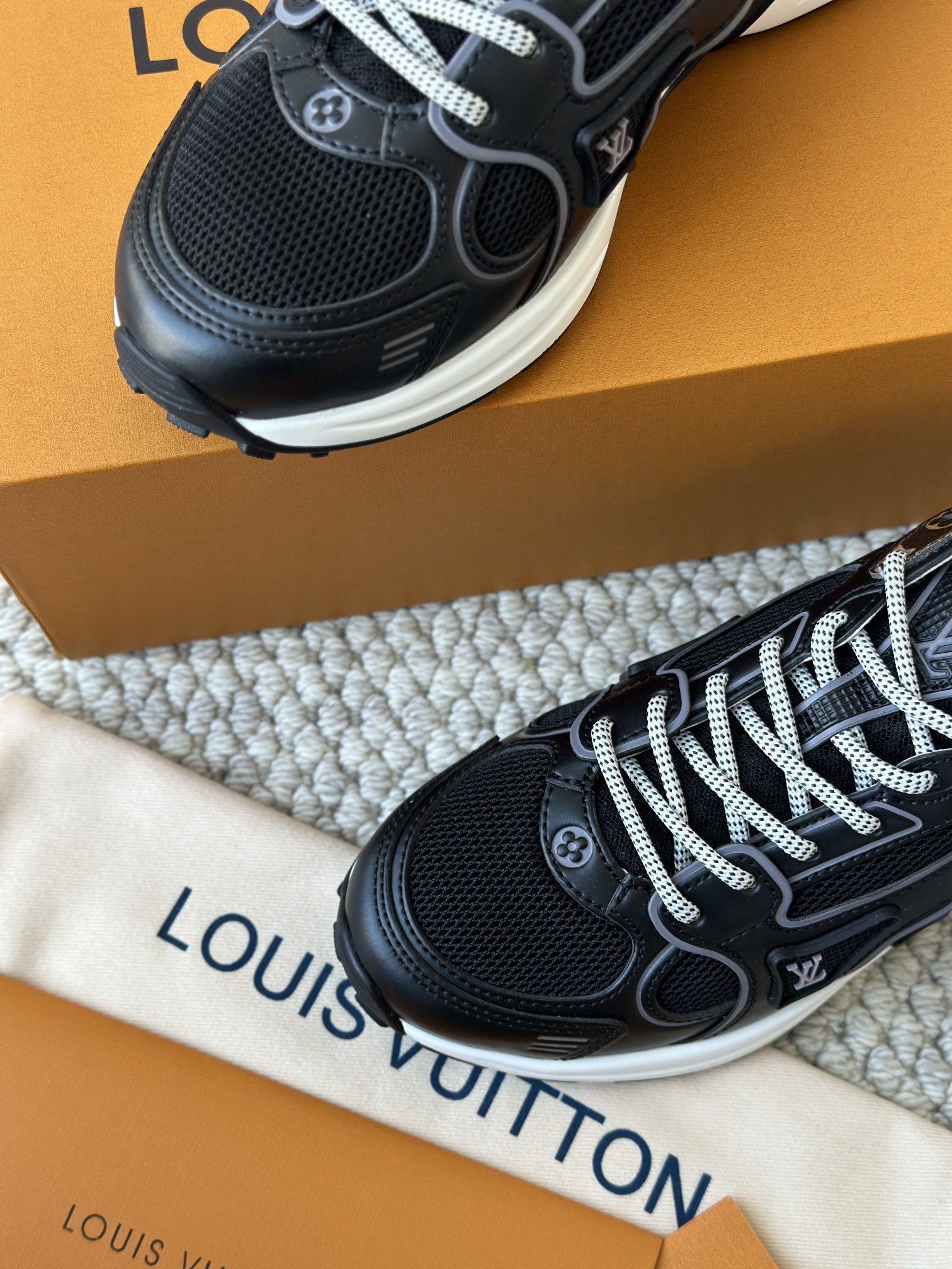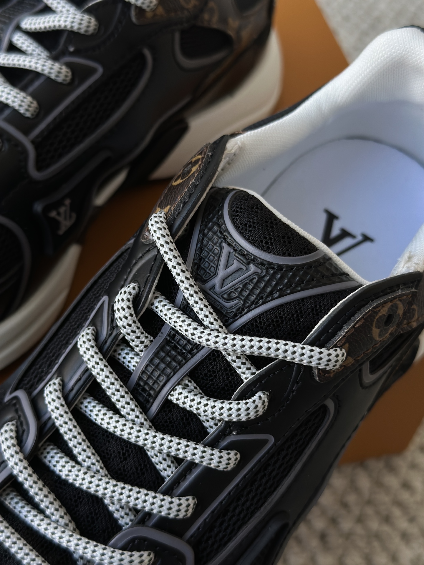 进口老花小牛皮拼接网面鞋面 运动圈这波要人手一双了!! 颜值高还透气耐穿,触感细腻且耐用 彰显出LV品牌一贯的高品质追求