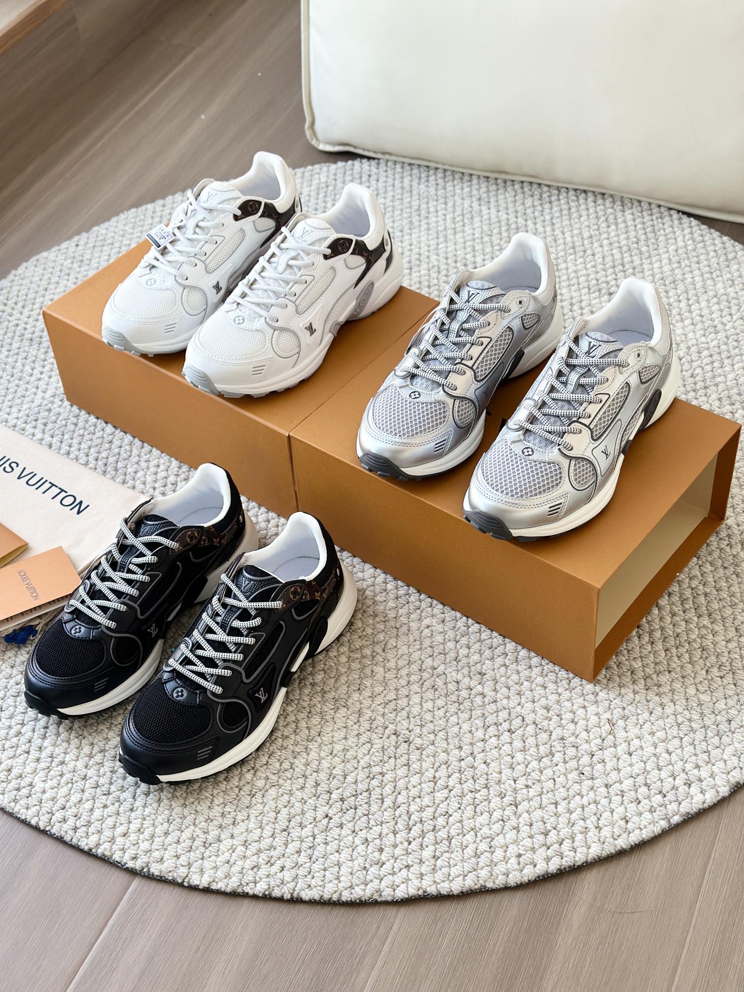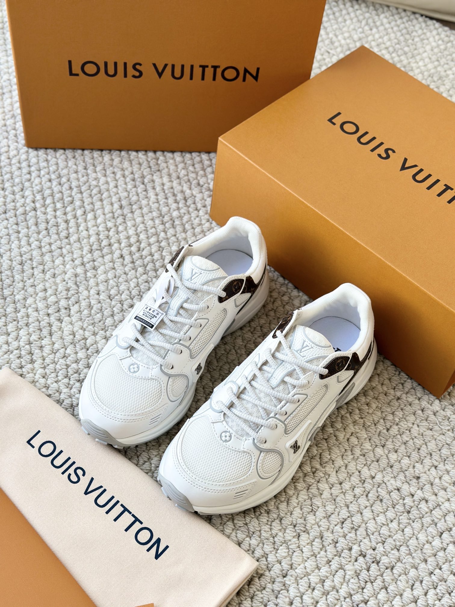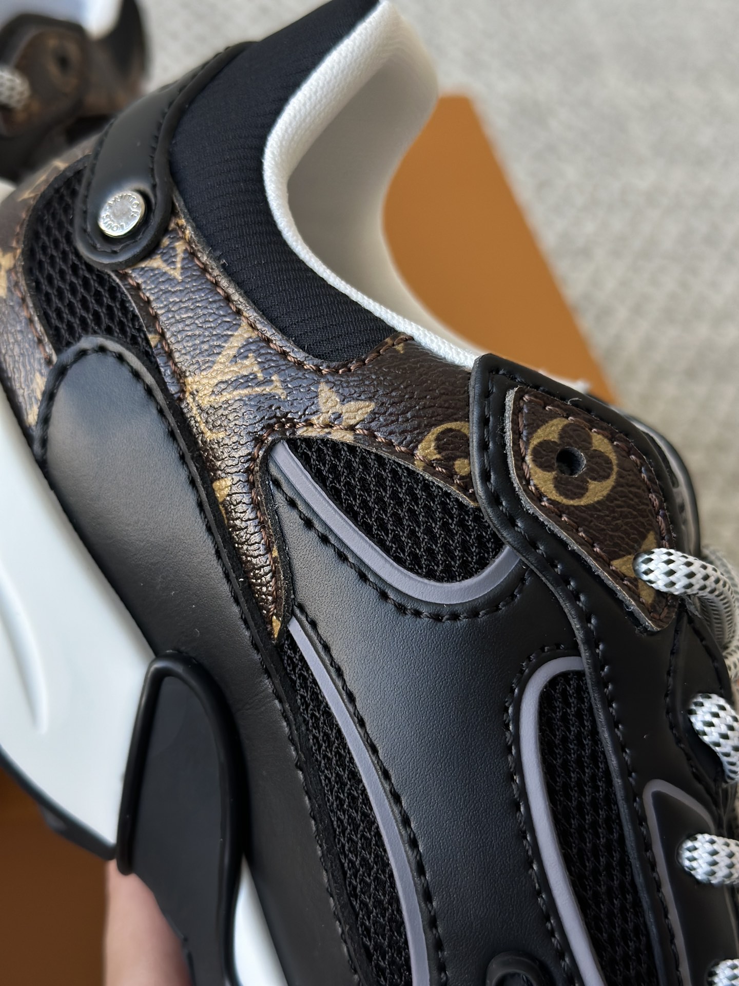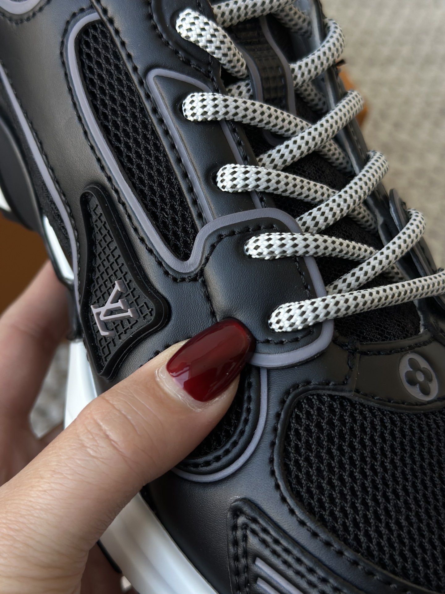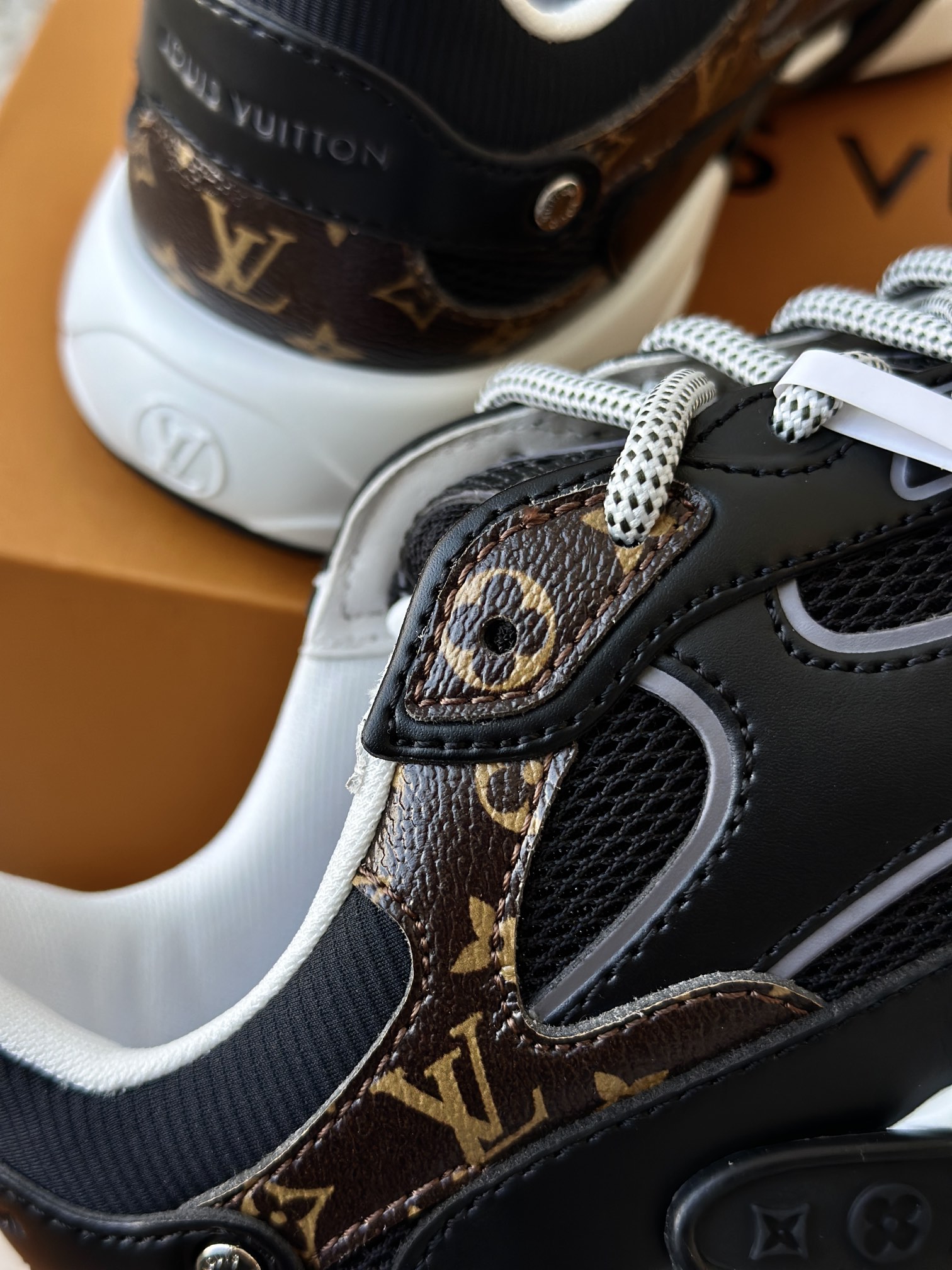 进口老花小牛皮拼接网面鞋面 运动圈这波要人手一双了!! 颜值高还透气耐穿,触感细腻且耐用 彰显出LV品牌一贯的高品质追求