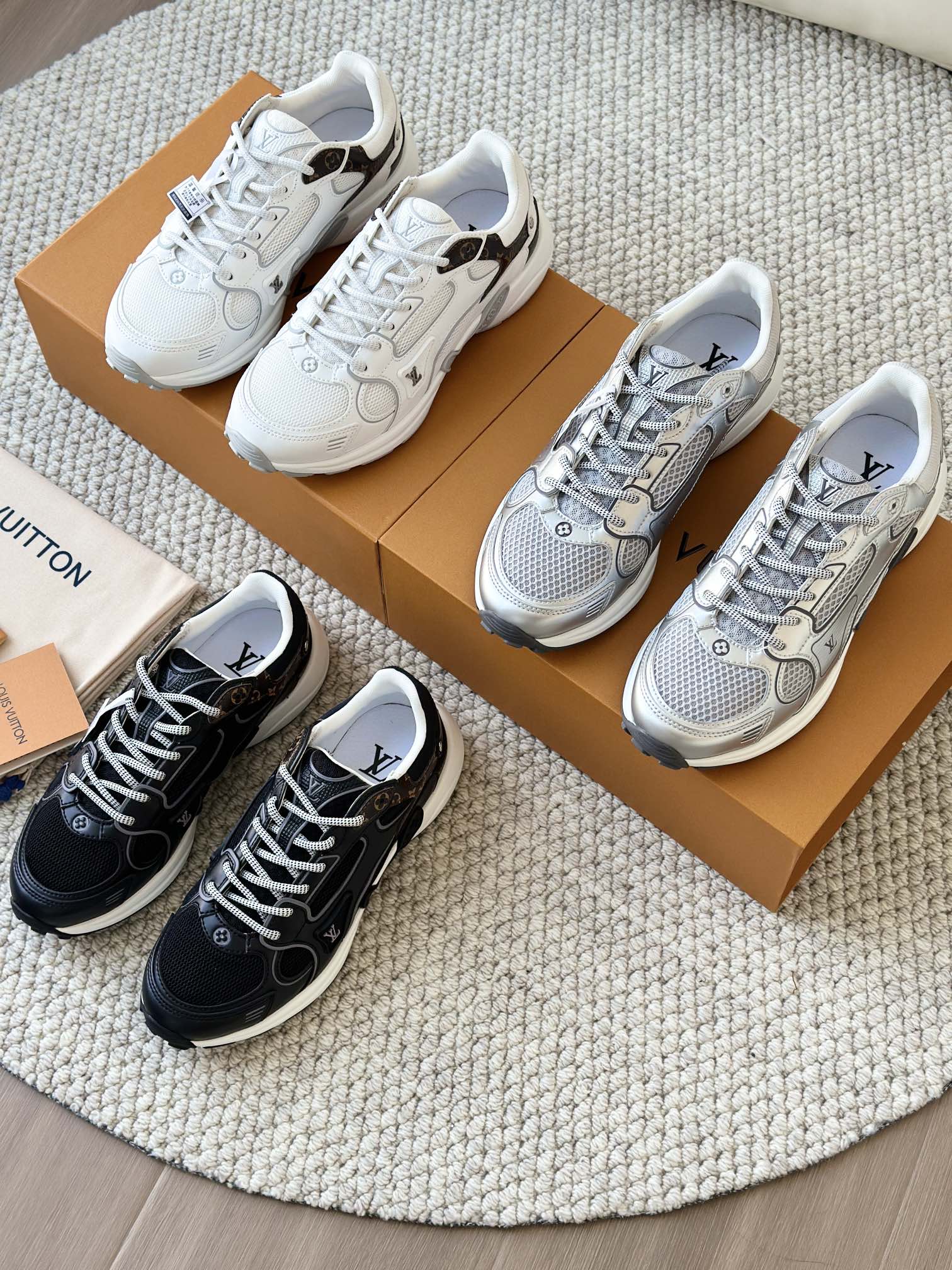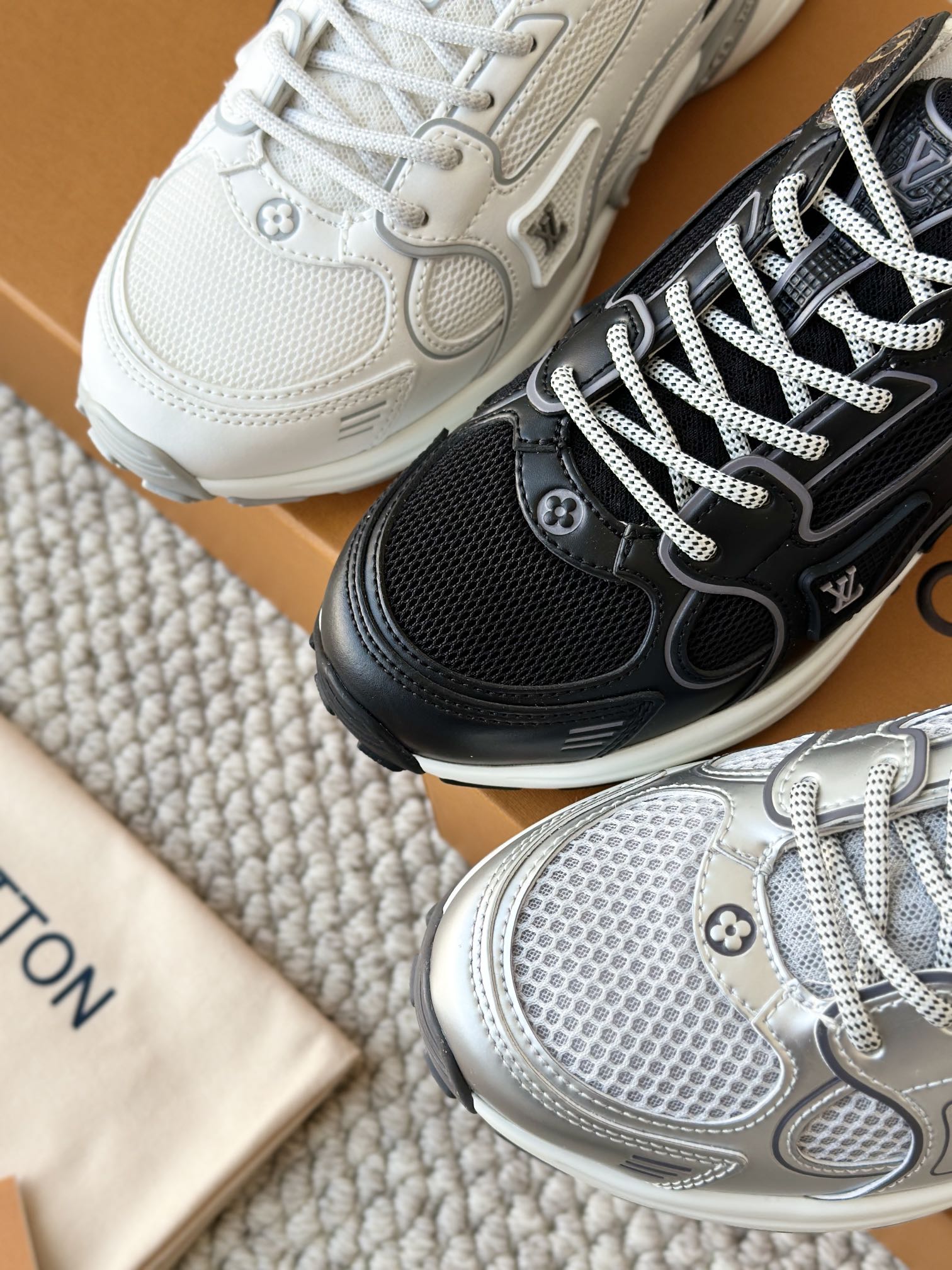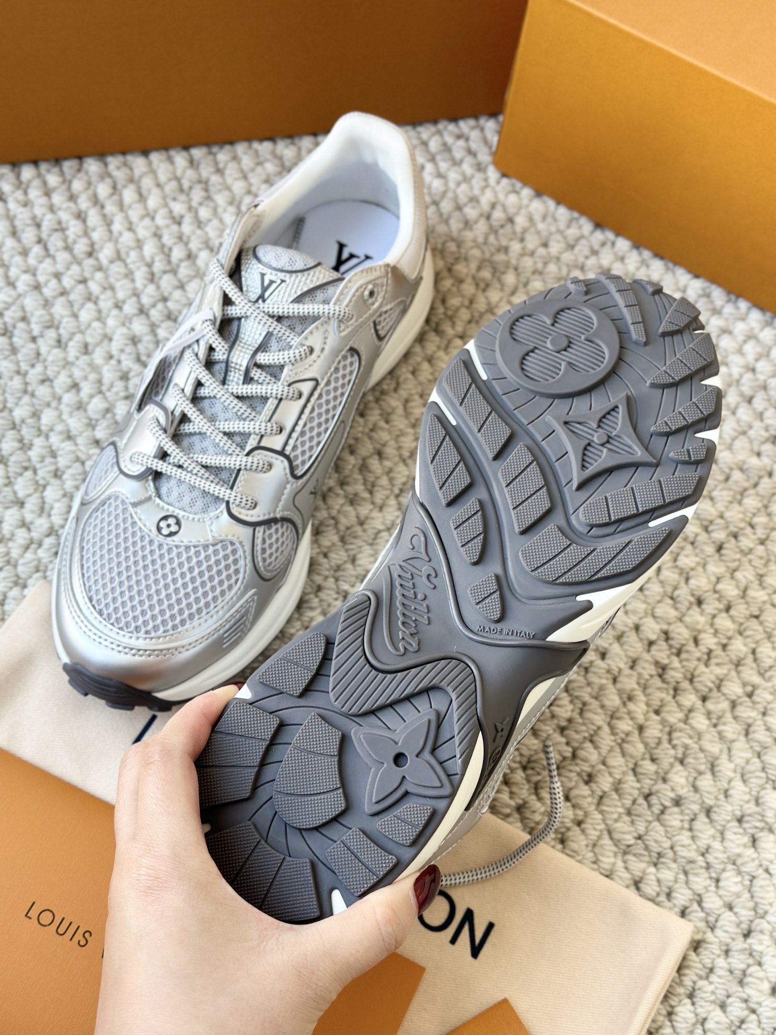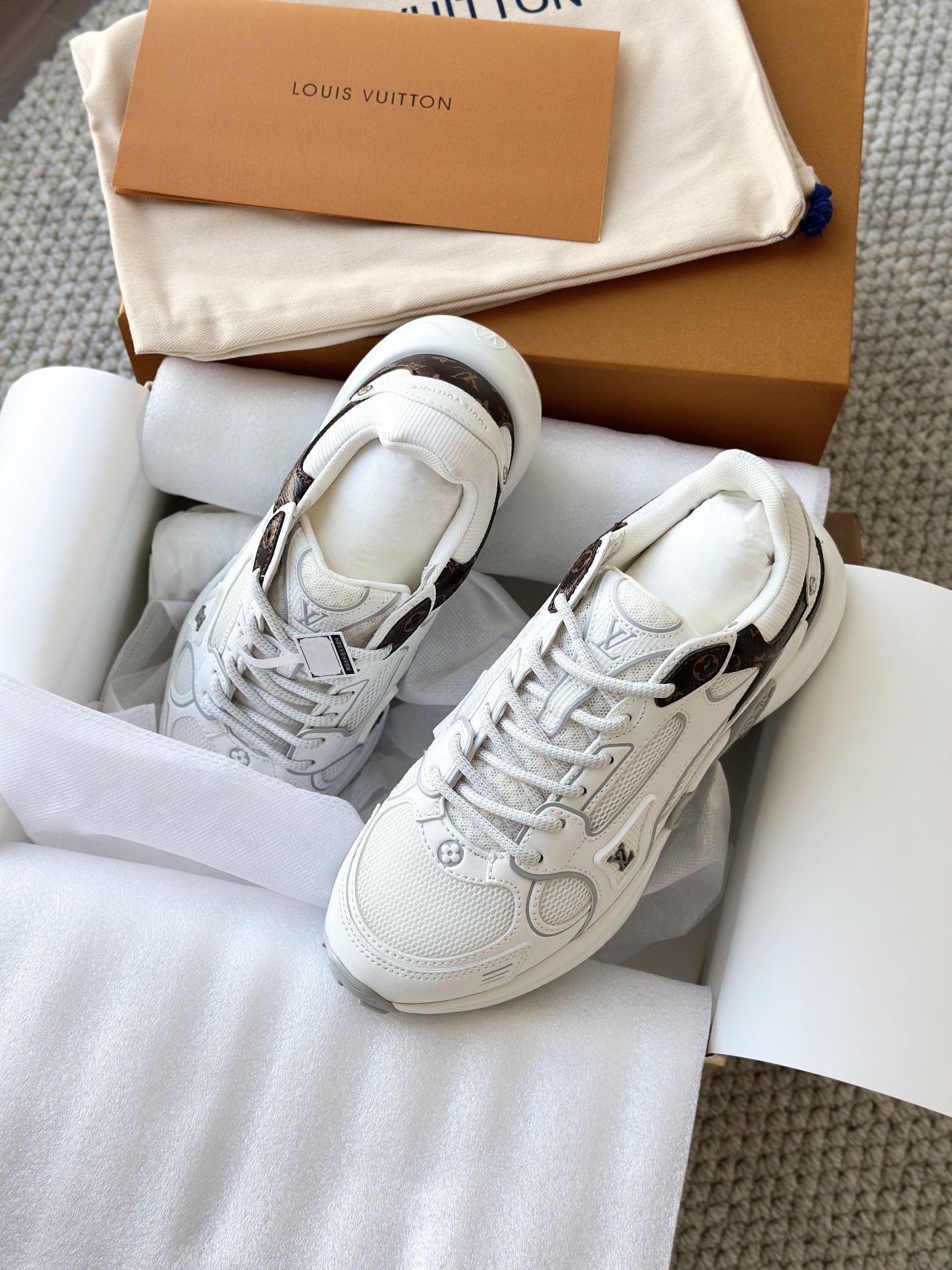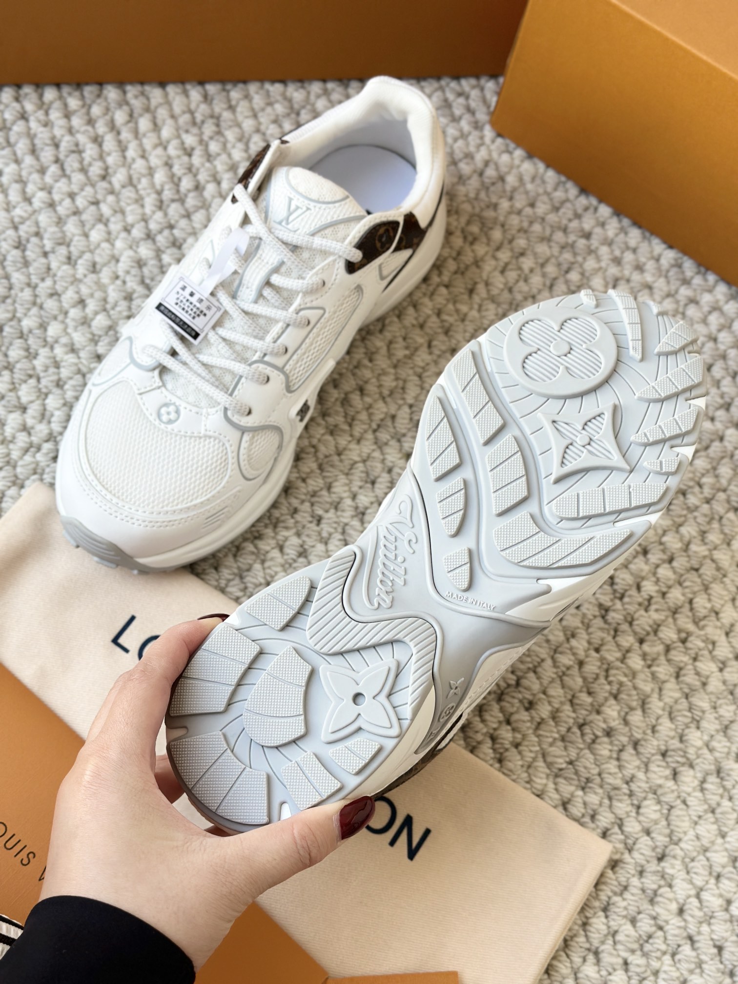 进口老花小牛皮拼接网面鞋面 运动圈这波要人手一双了!! 颜值高还透气耐穿,触感细腻且耐用 彰显出LV品牌一贯的高品质追求