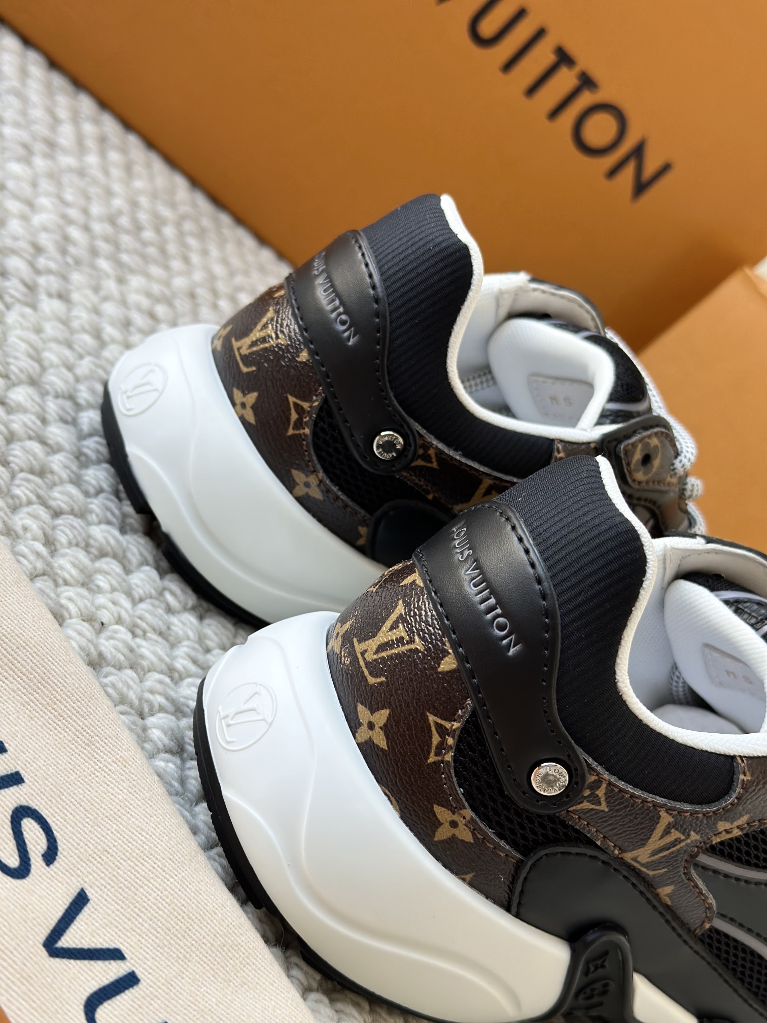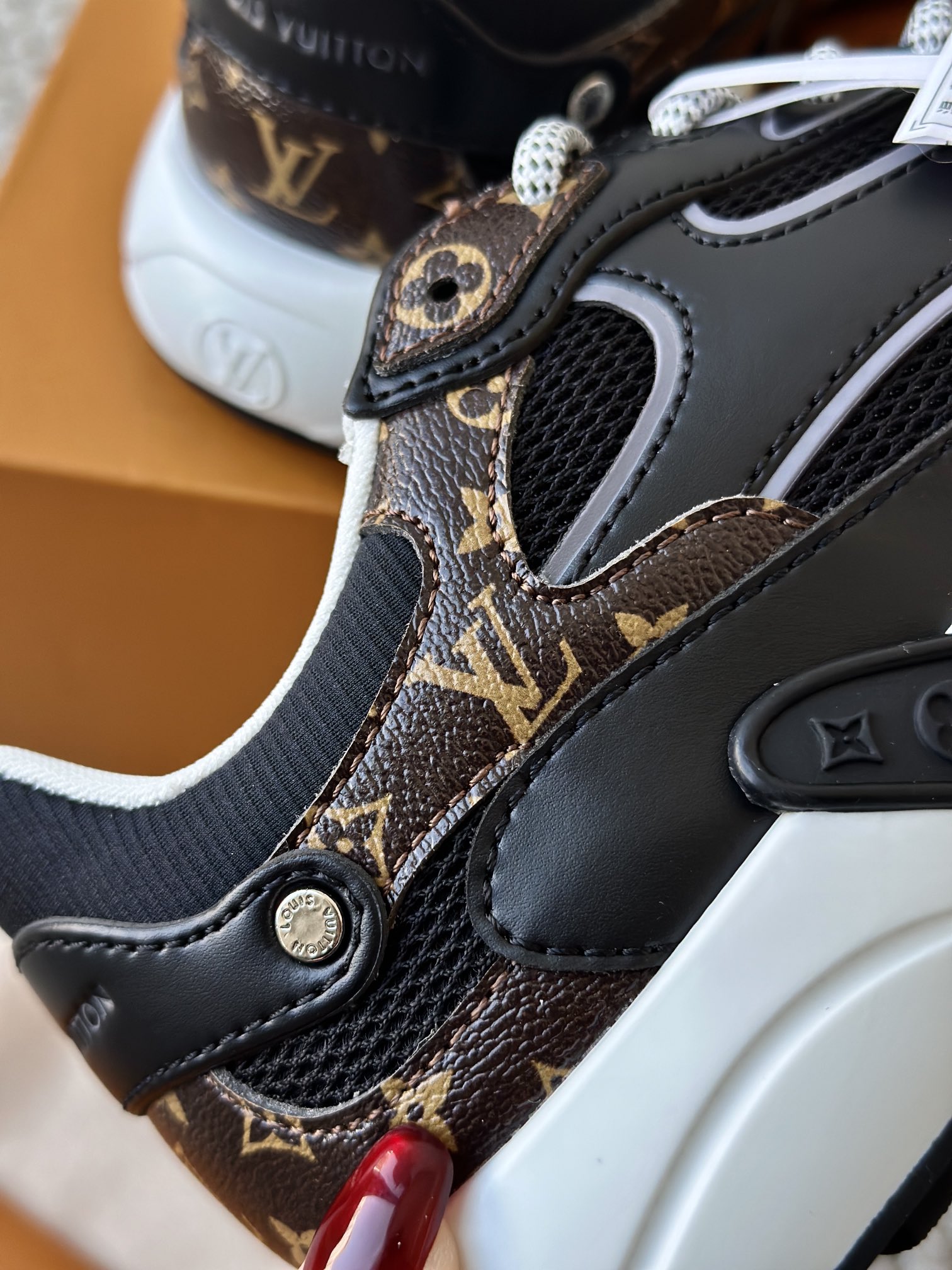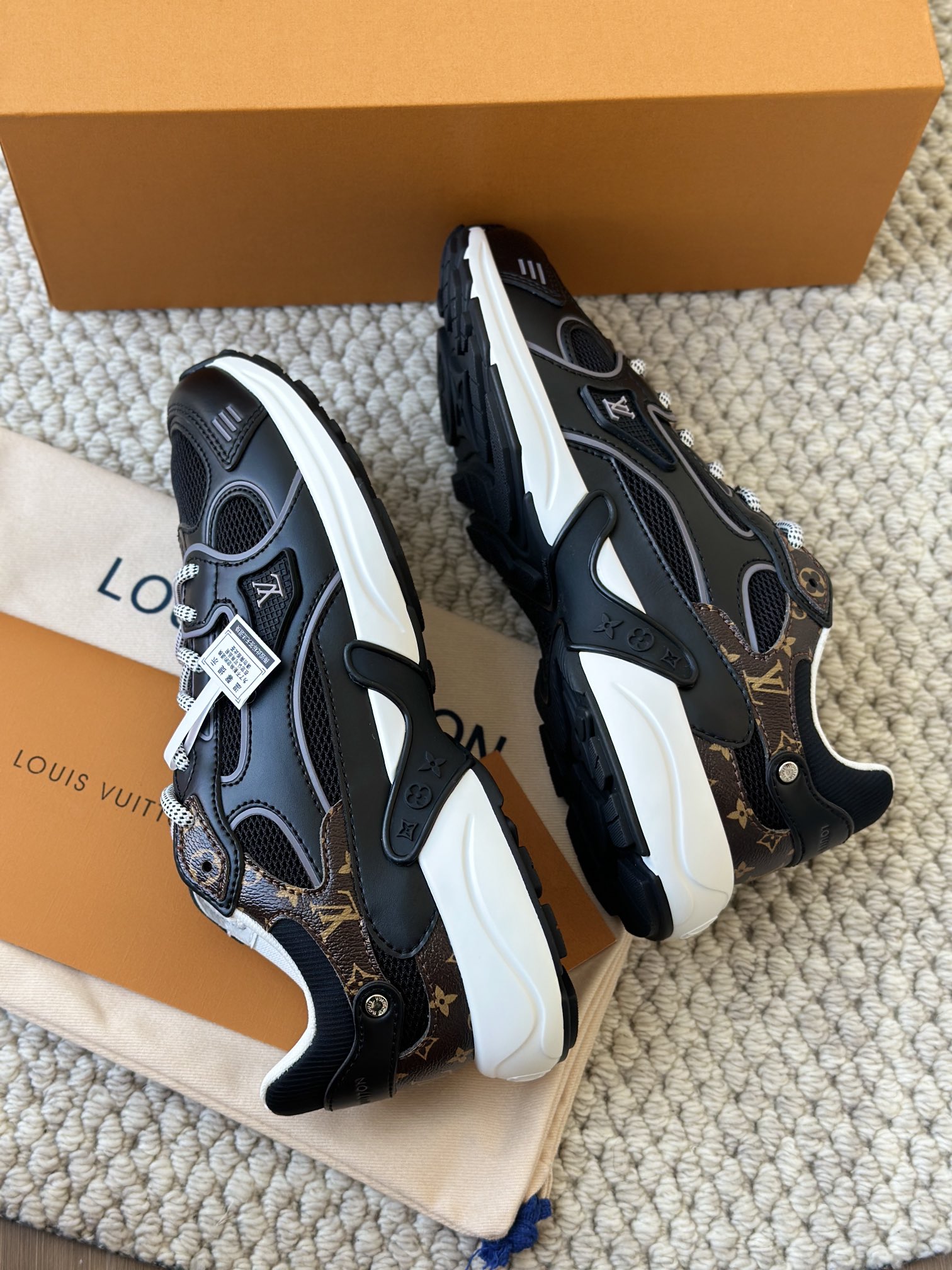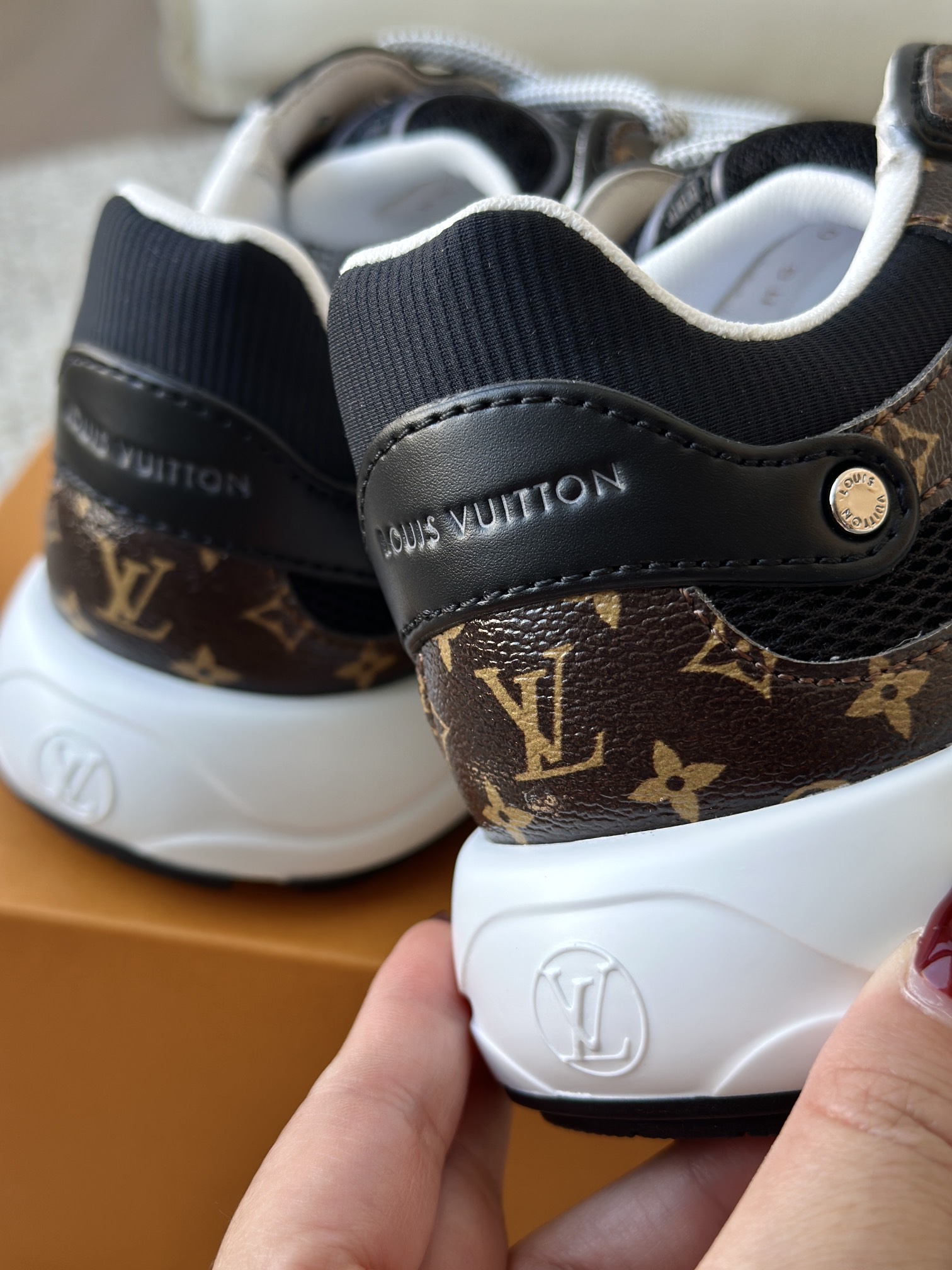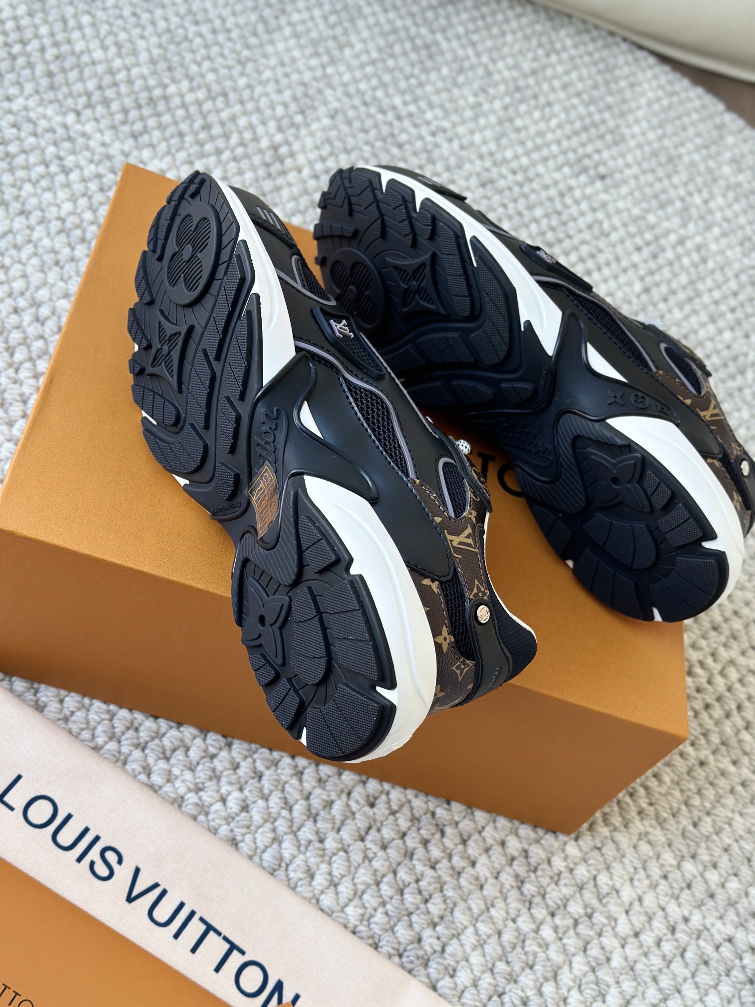 进口老花小牛皮拼接网面鞋面 运动圈这波要人手一双了!! 颜值高还透气耐穿,触感细腻且耐用 彰显出LV品牌一贯的高品质追求