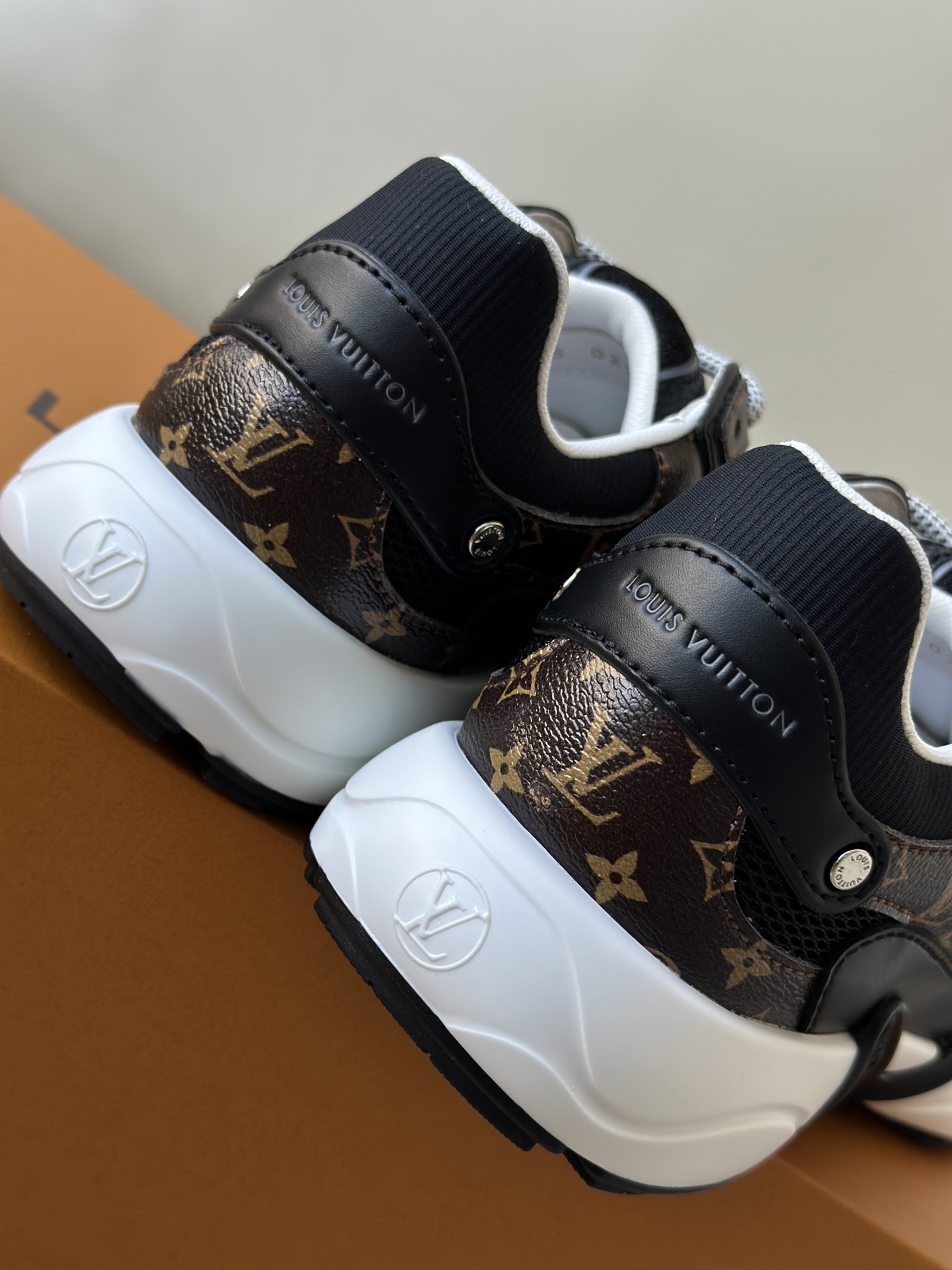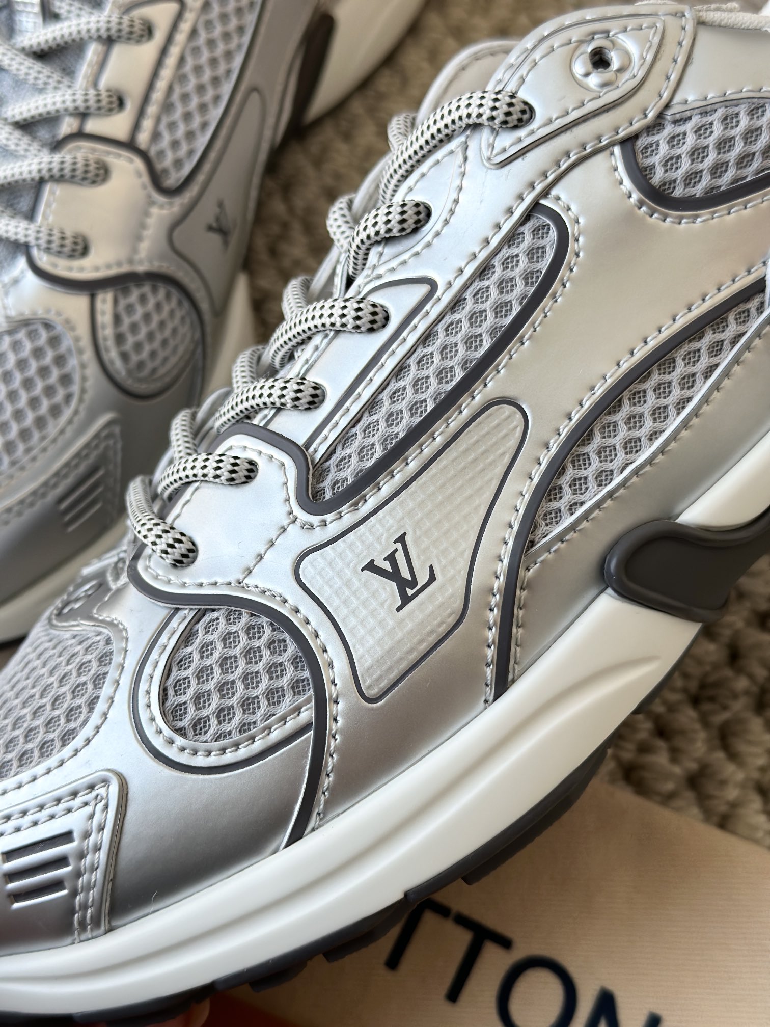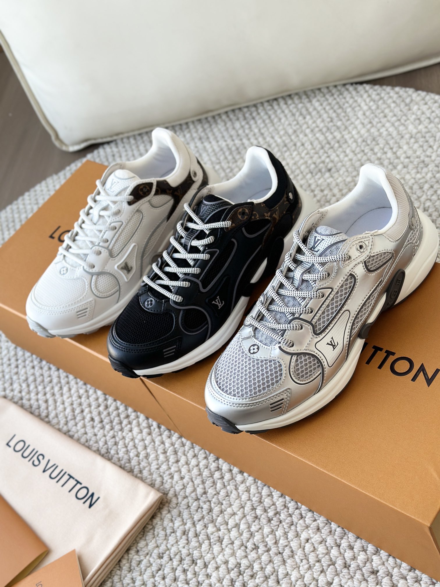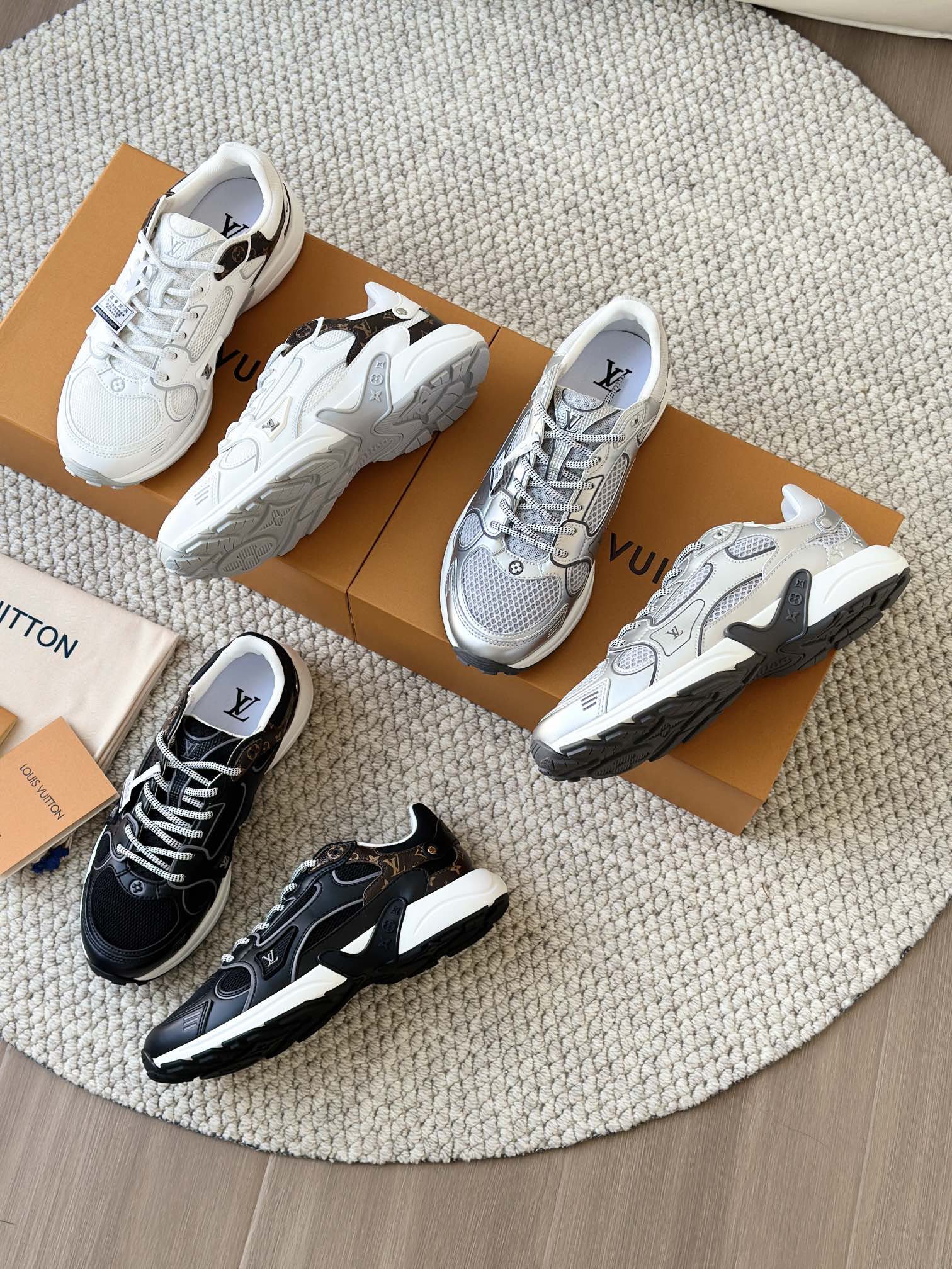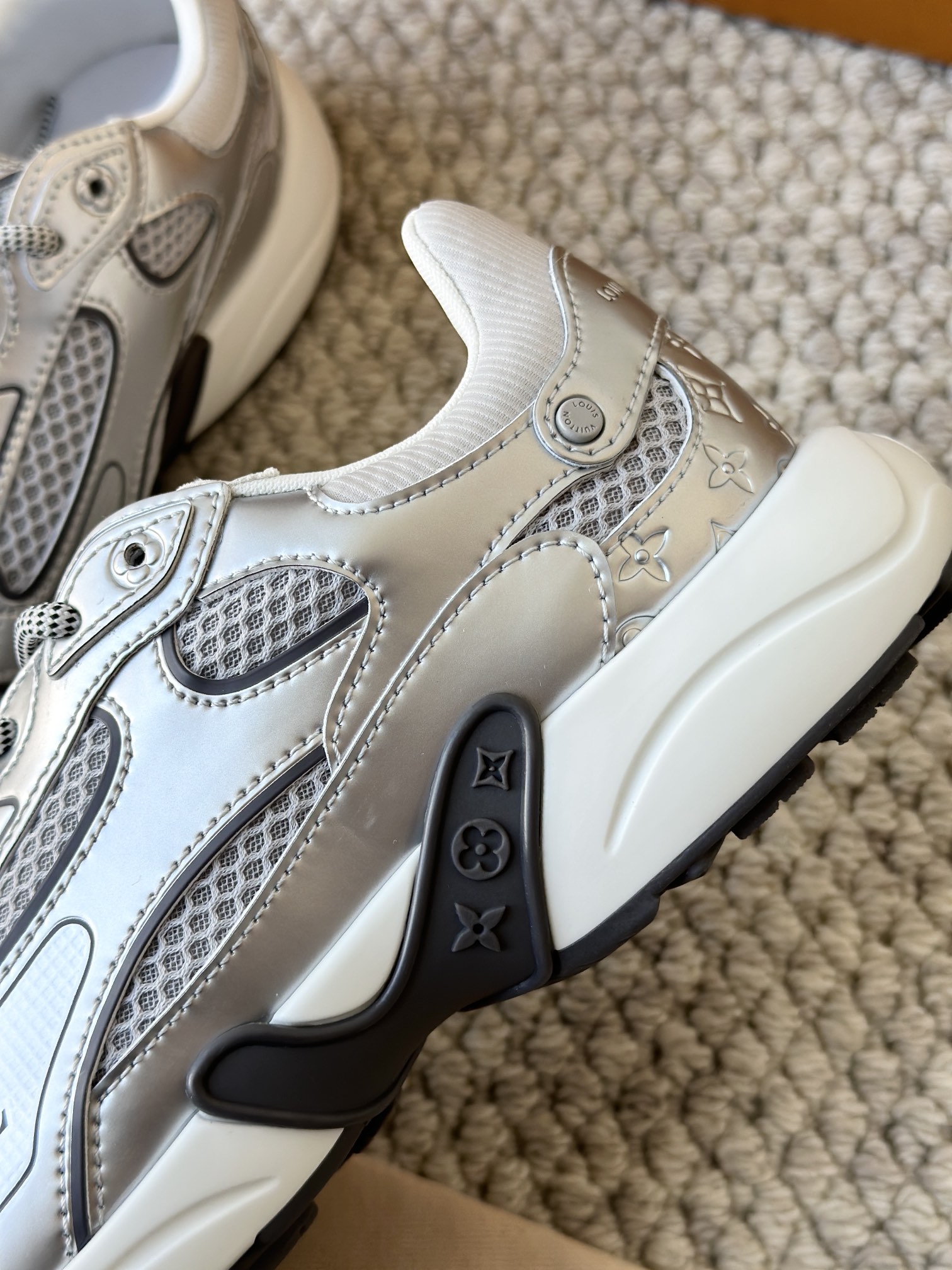进口老花小牛皮拼接网面鞋面 运动圈这波要人手一双了!! 颜值高还透气耐穿,触感细腻且耐用 彰显出LV品牌一贯的高品质追求