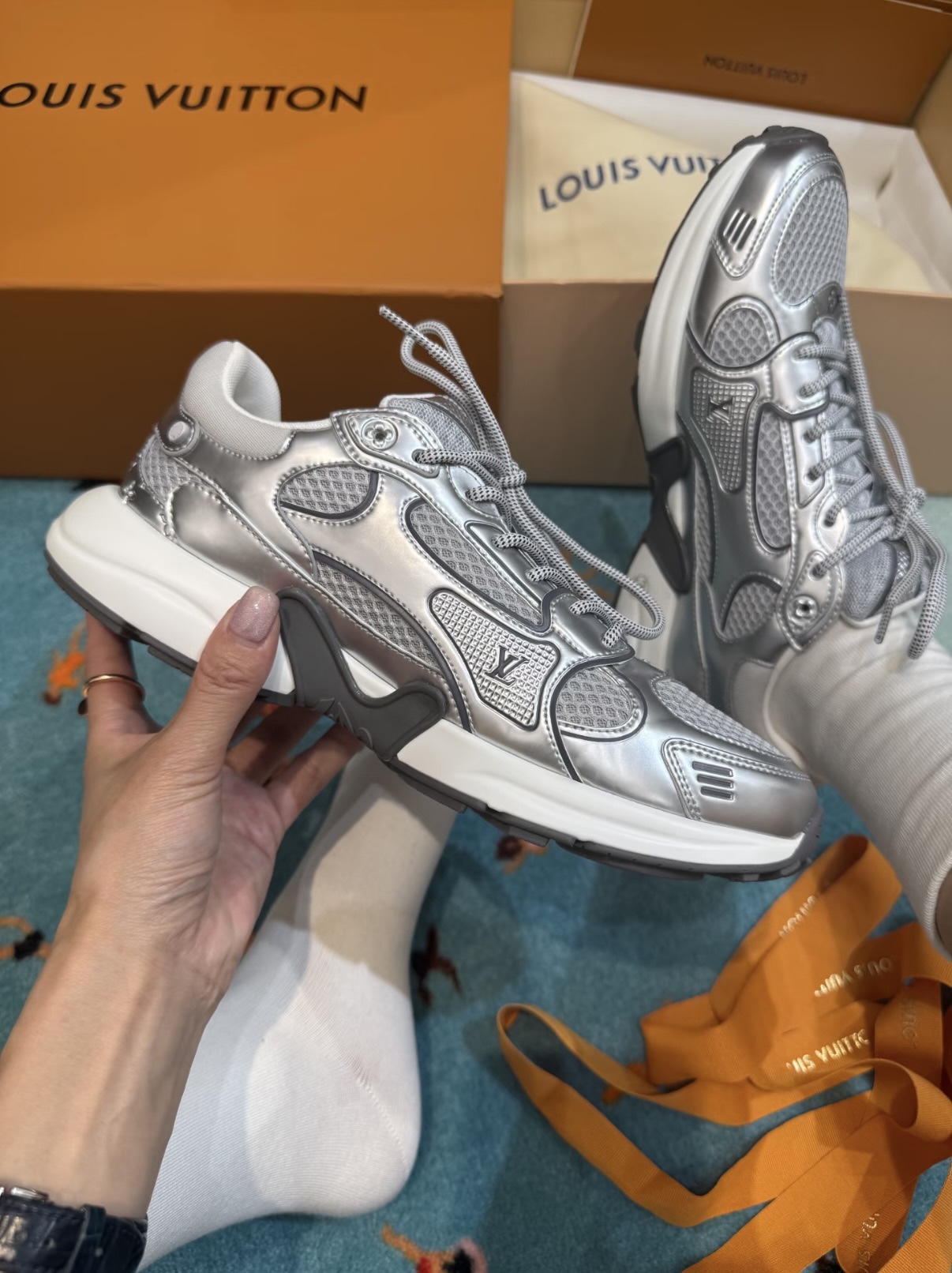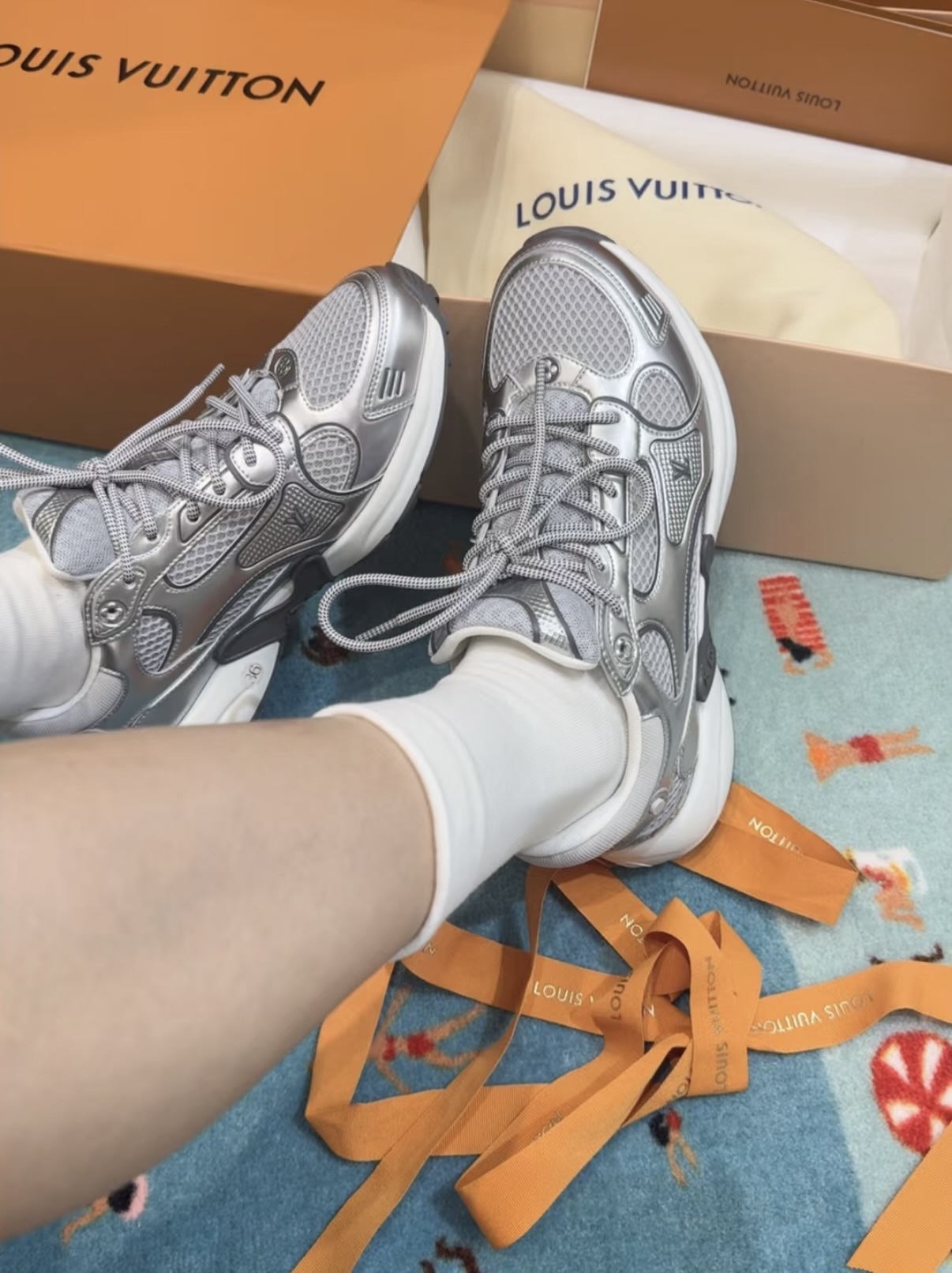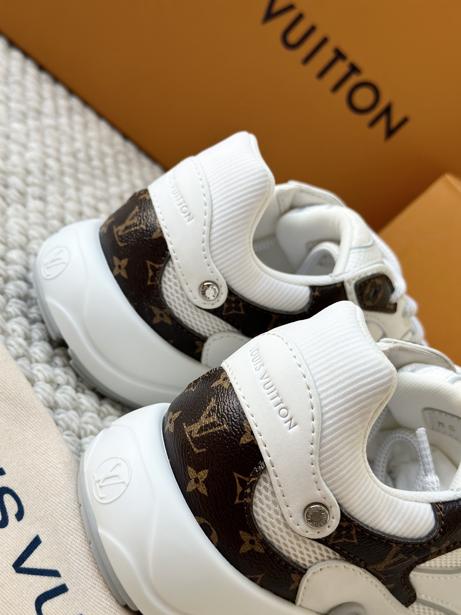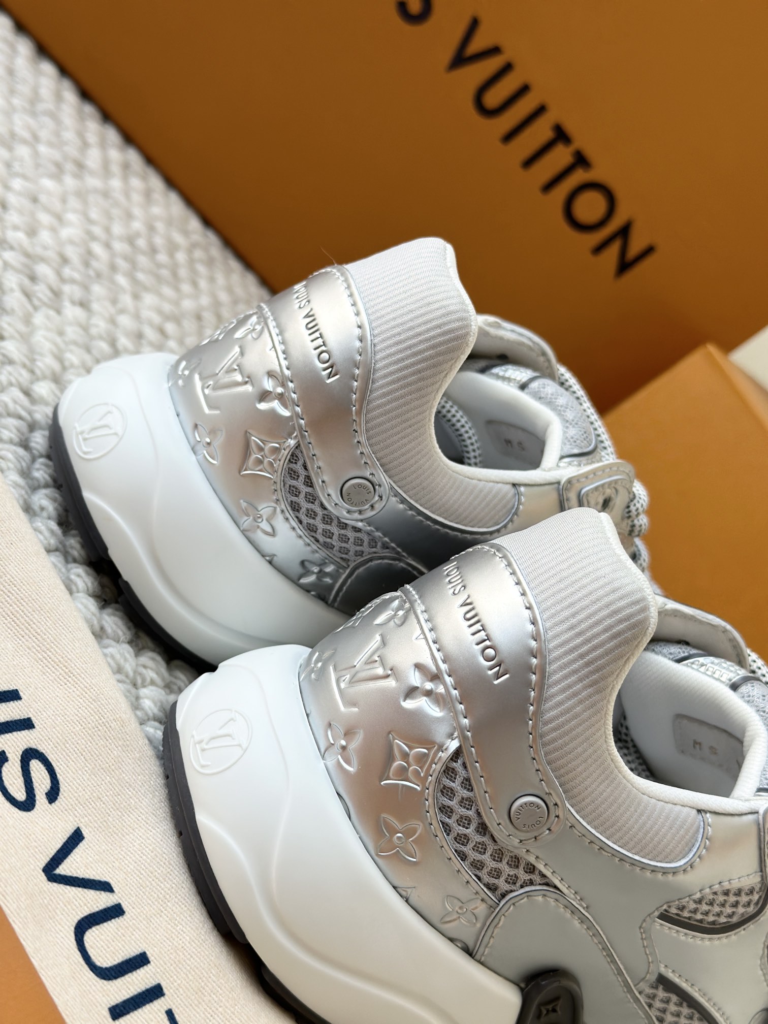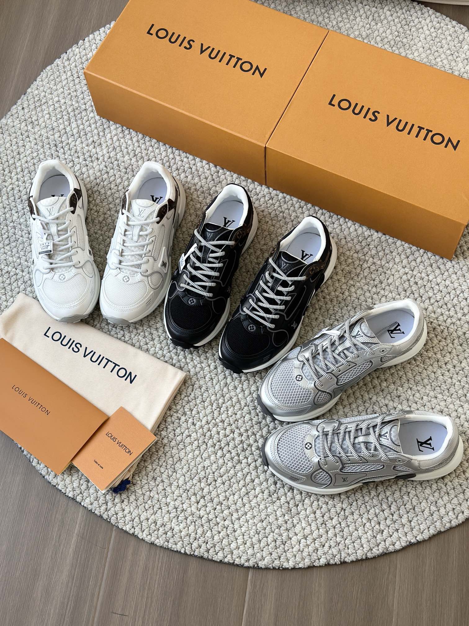 进口老花小牛皮拼接网面鞋面 运动圈这波要人手一双了!! 颜值高还透气耐穿,触感细腻且耐用 彰显出LV品牌一贯的高品质追求