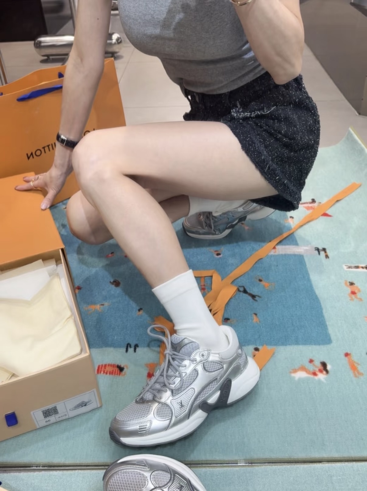 鞋面的进口老花牛皮材质经过精心挑选,触感细腻且耐用,彰显出LV品牌一贯的高品质追求