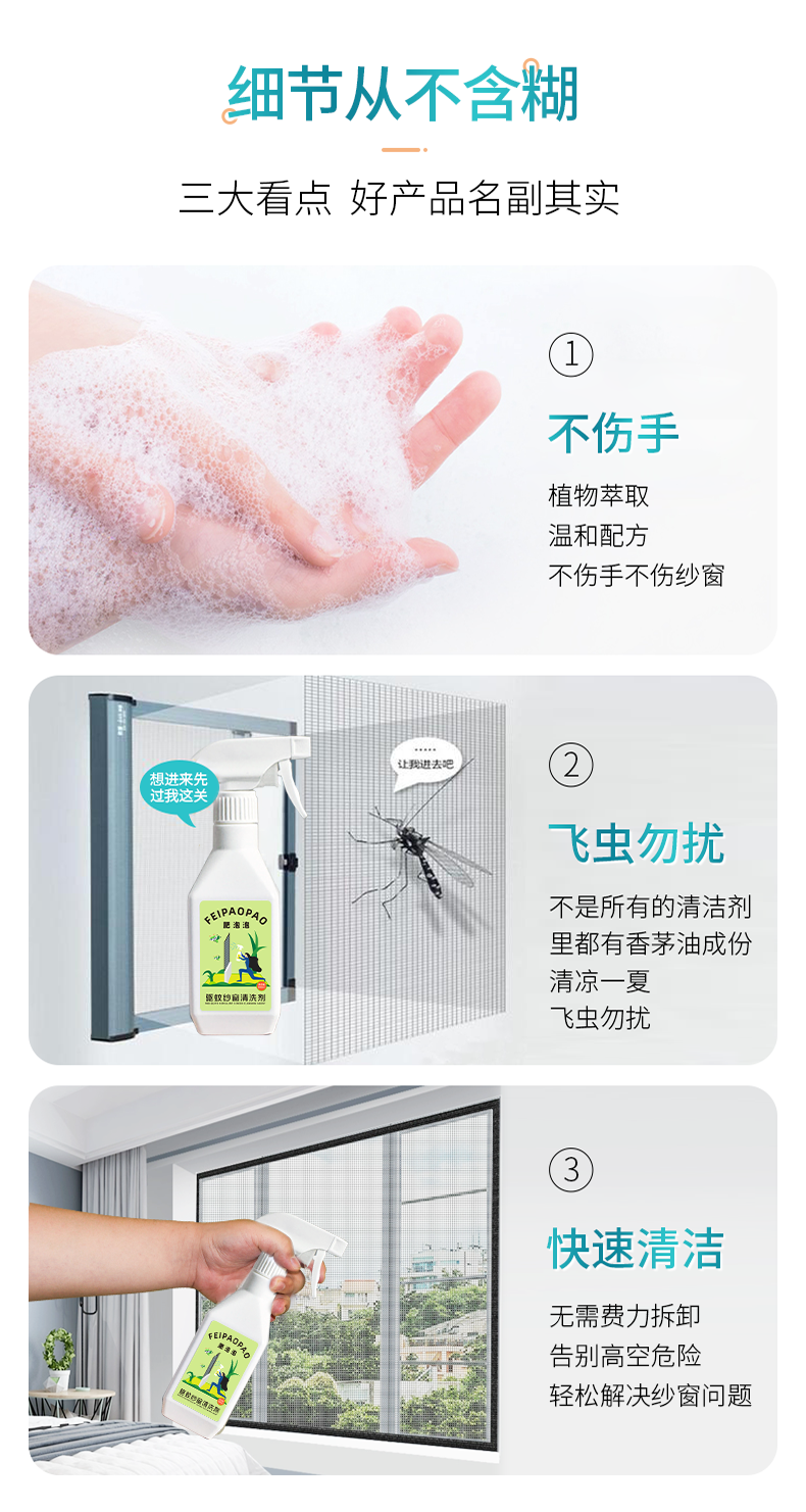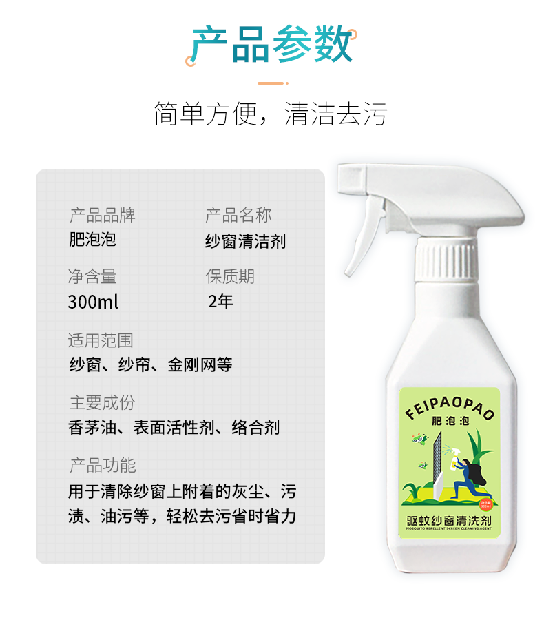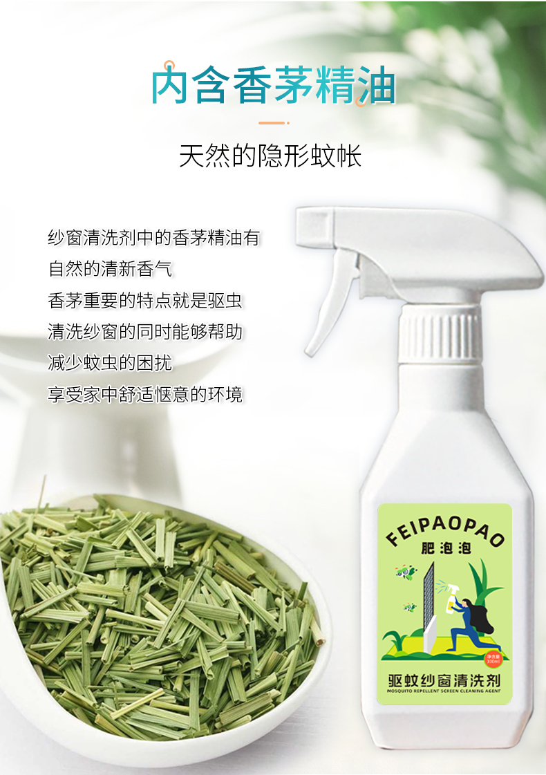 【洁净驱蚊二合一 】 肥泡泡纱窗专用清洁剂300ml | 免拆洗 不伤纱窗 清新去味 内含香茅精油