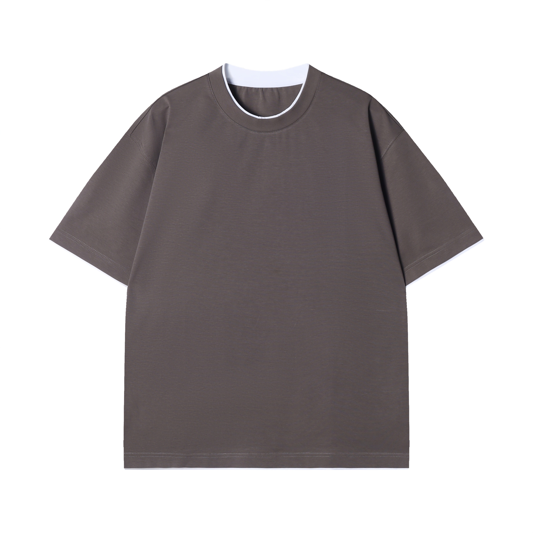 6583208早春新款时尚个性韩版简约撞色假两件短袖T恤百搭情侣套头上衣