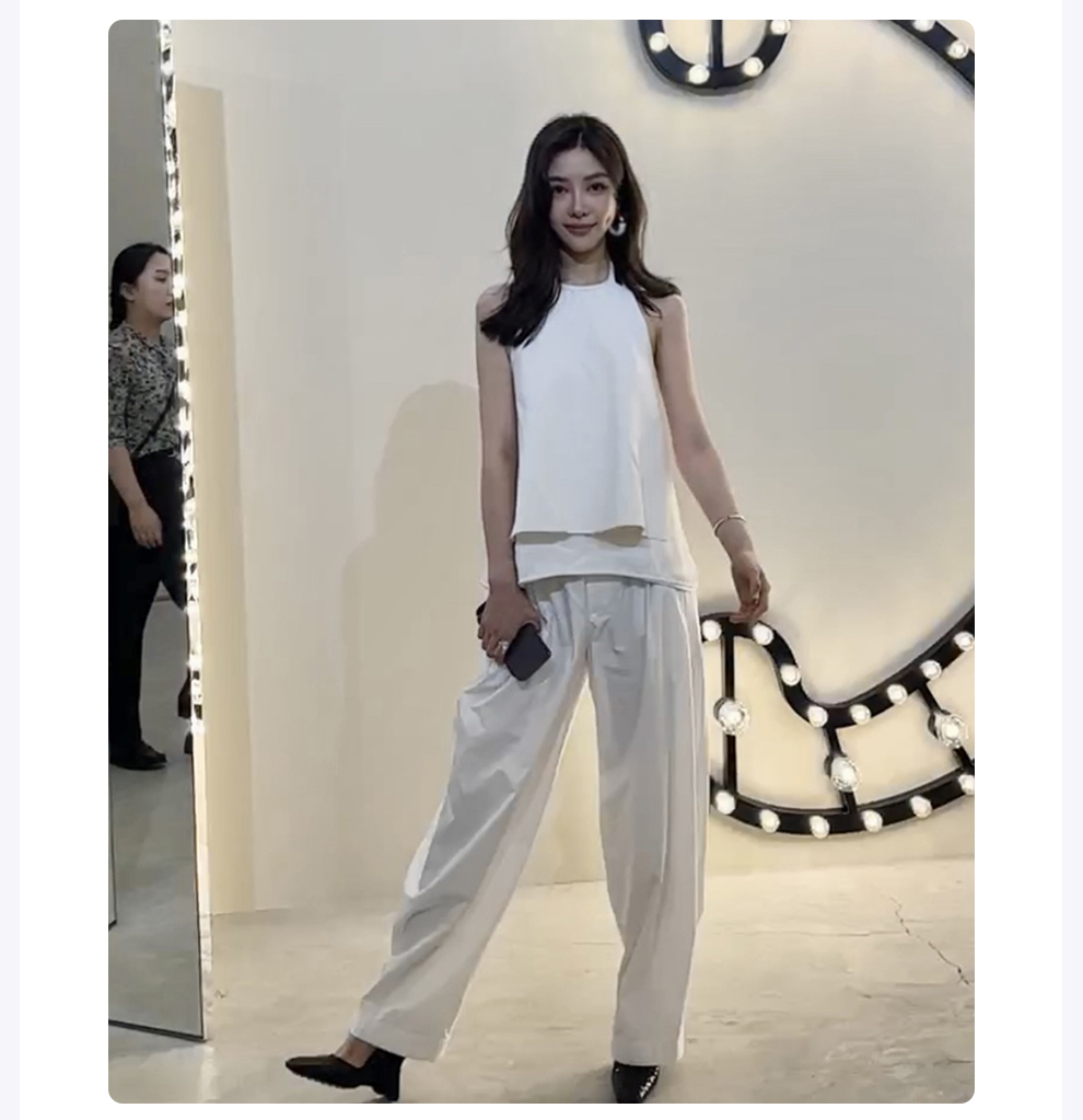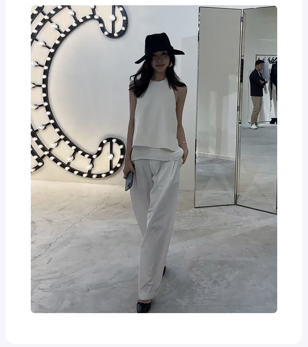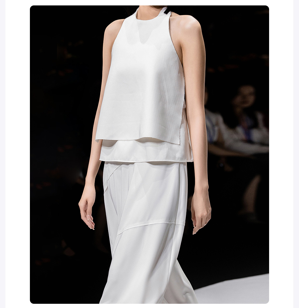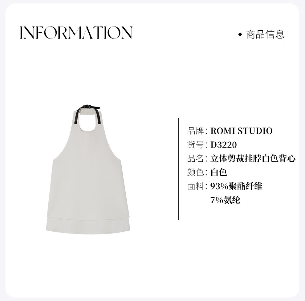 ROMI STUDIO“轻礼服”斜纹轻薄西装料立体剪裁挂脖白色背心D3220