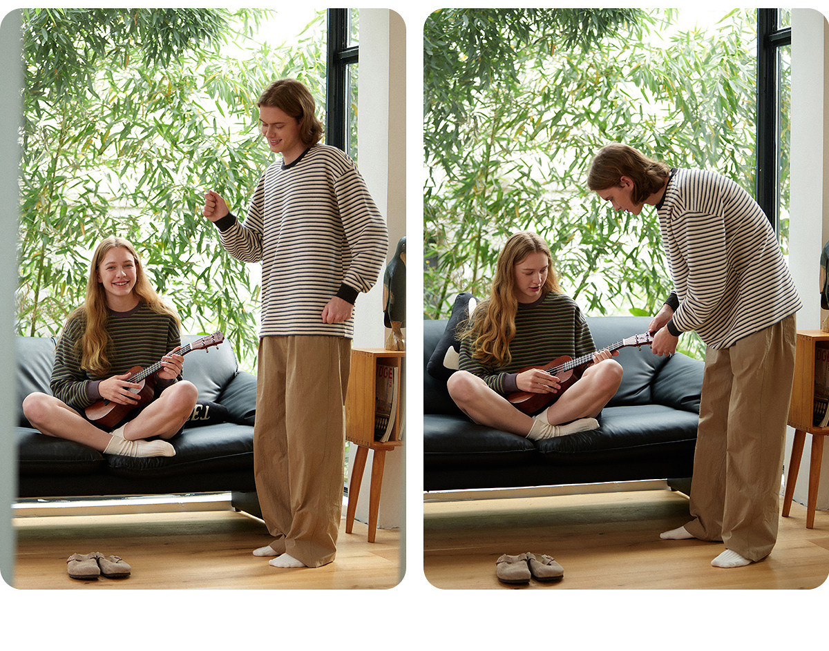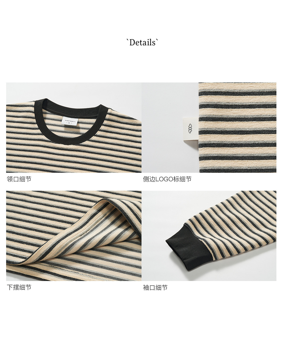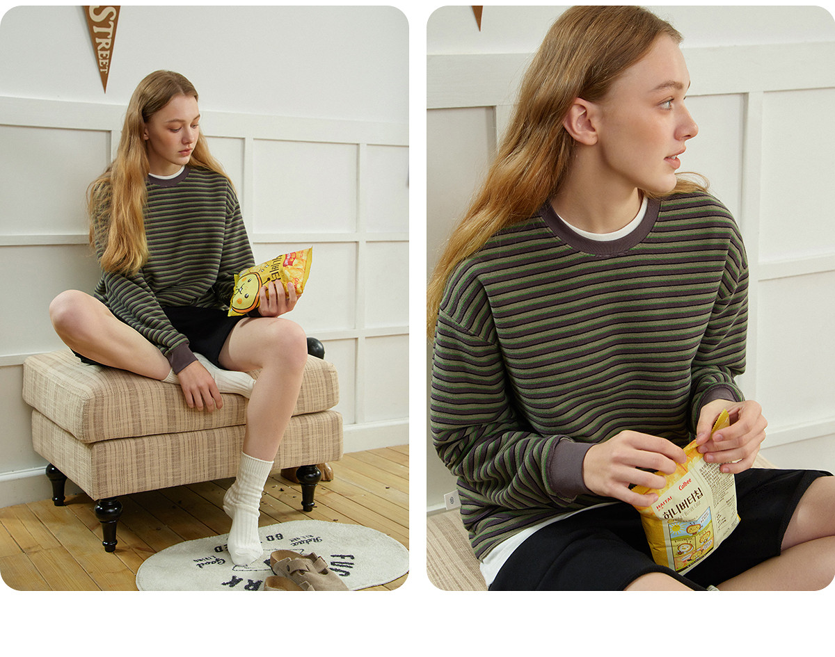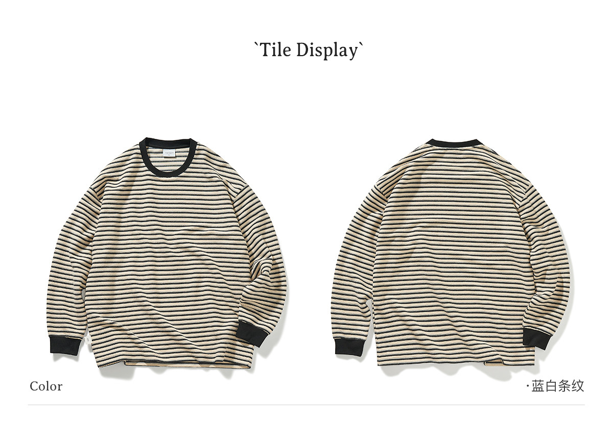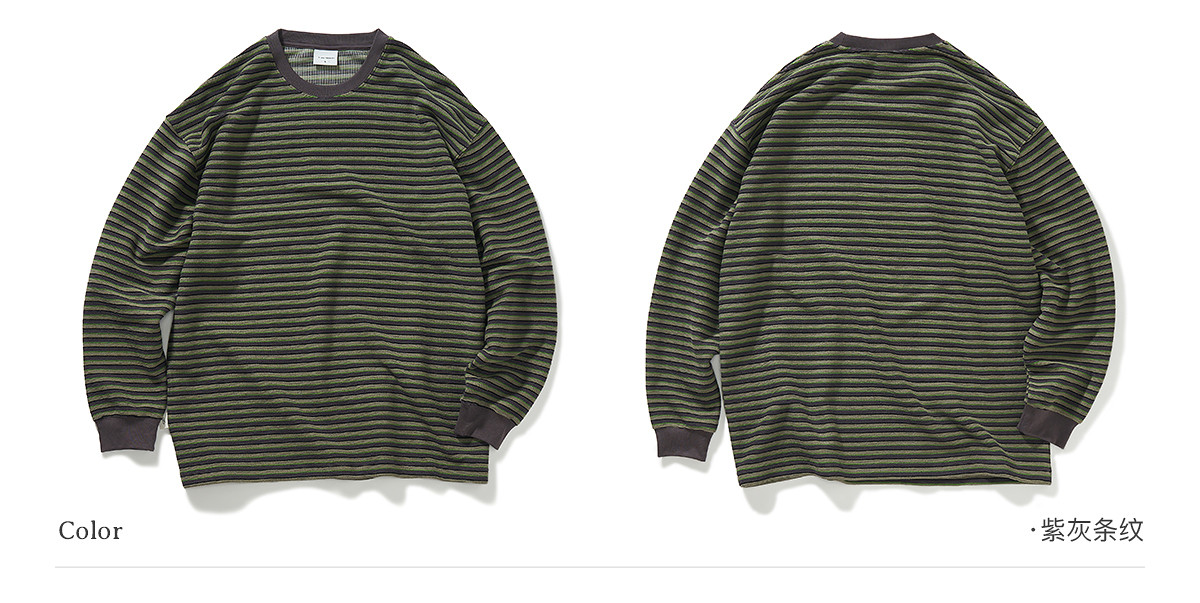 714street毛巾料条纹长袖T恤男女2025春季新款情侣装宽松圆领毛衣