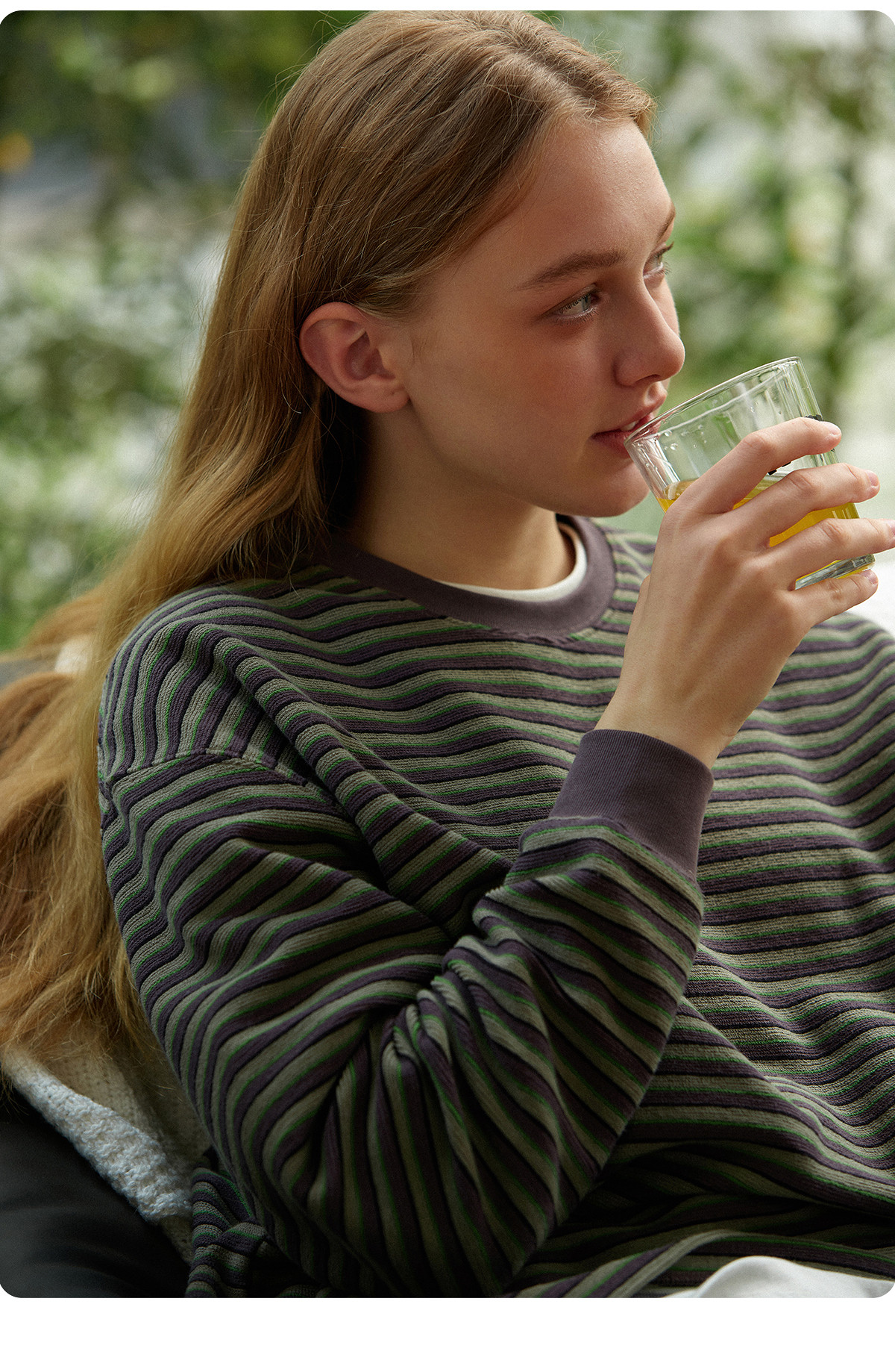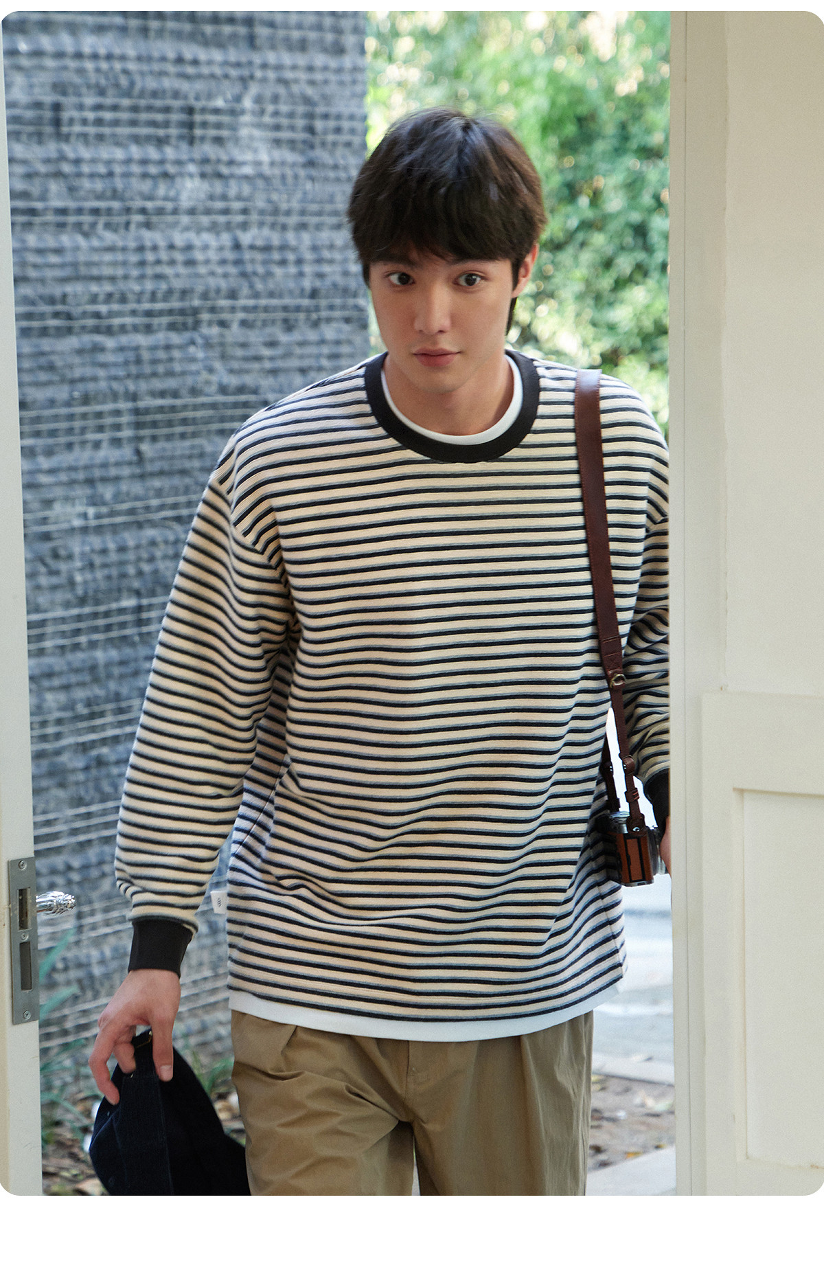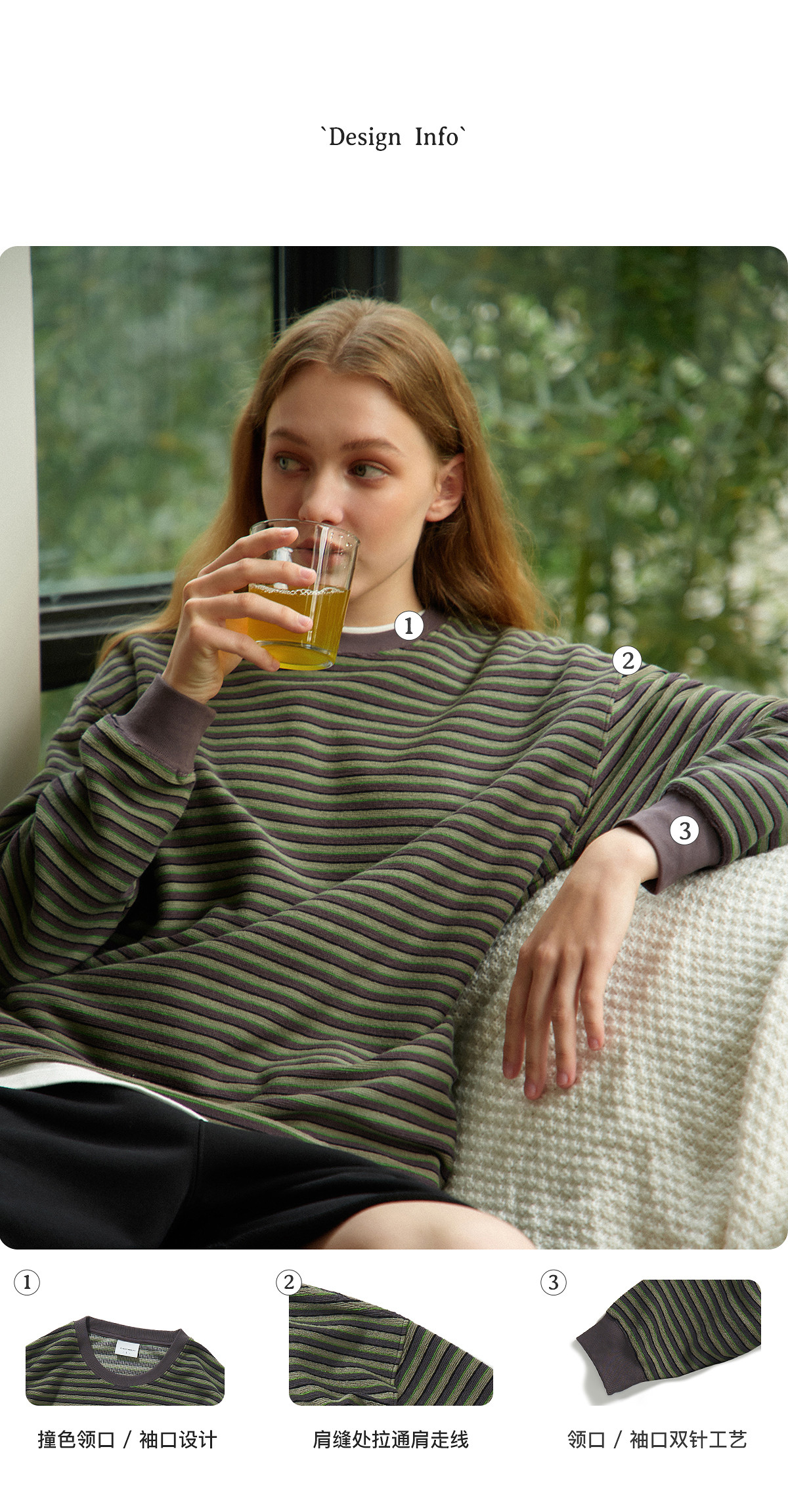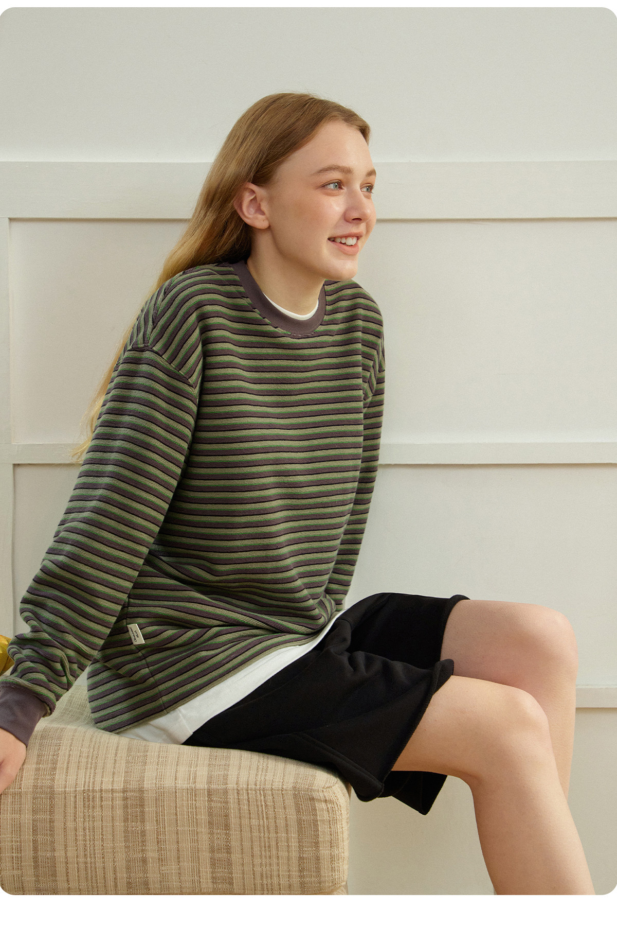 714street毛巾料条纹长袖T恤男女2025春季新款情侣装宽松圆领毛衣