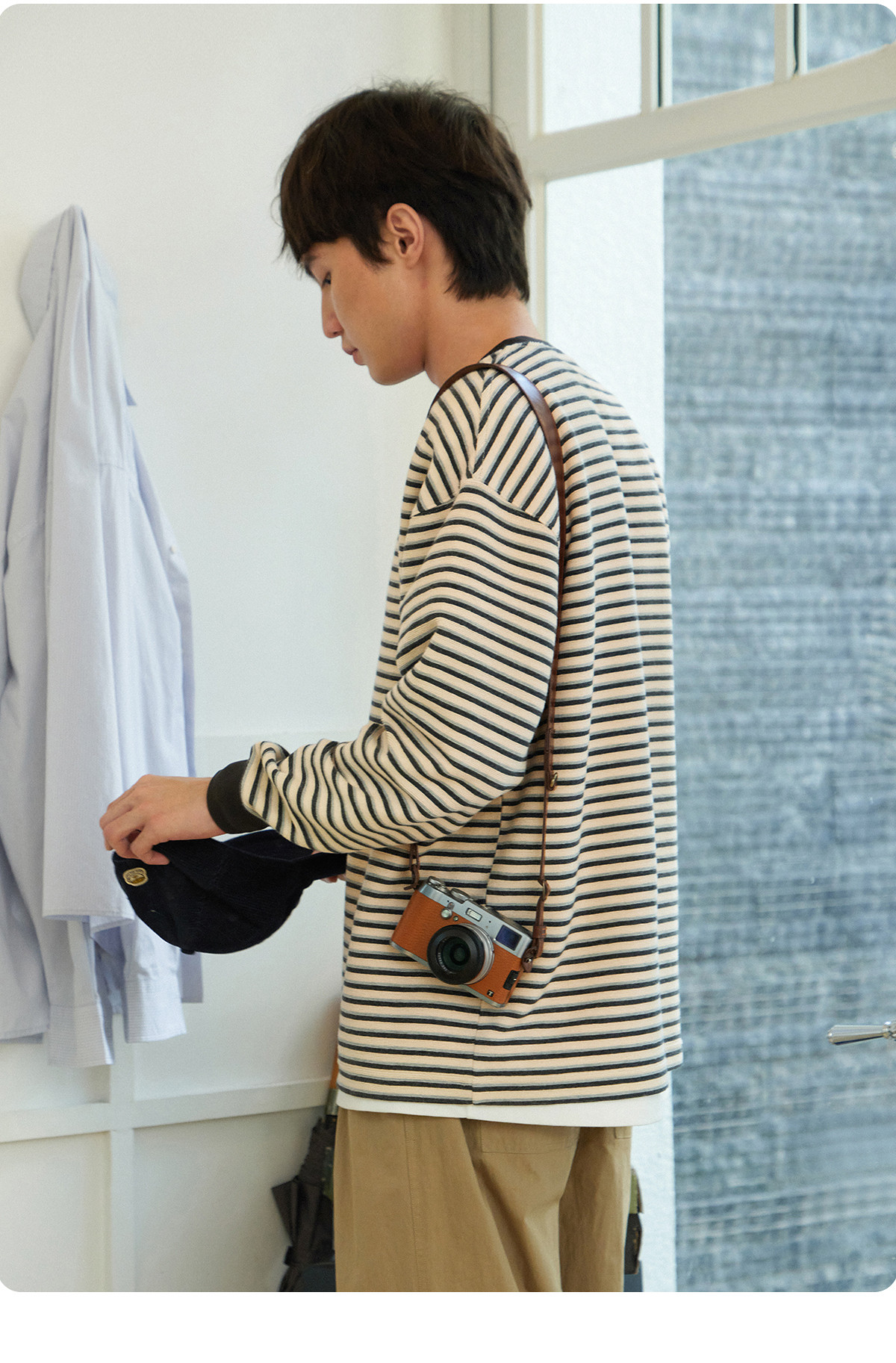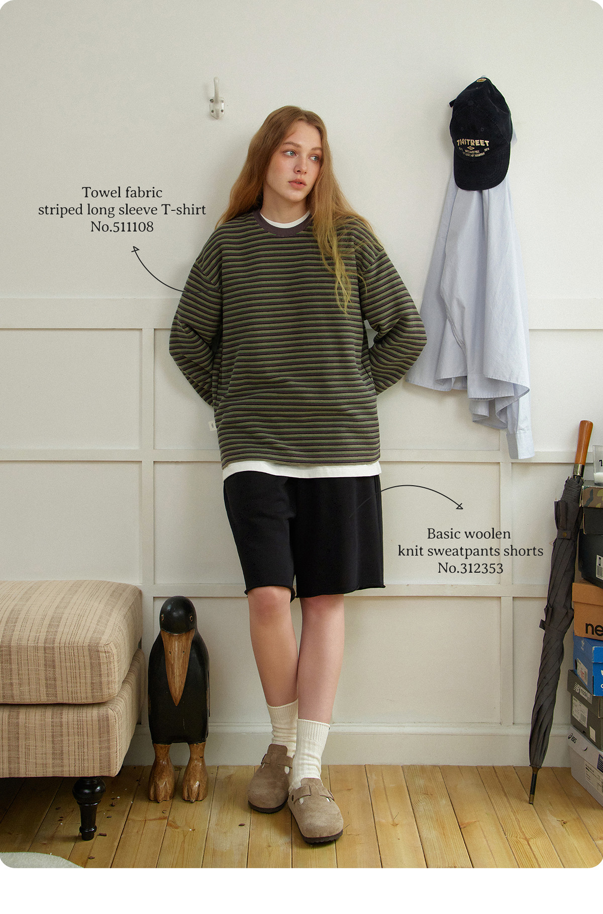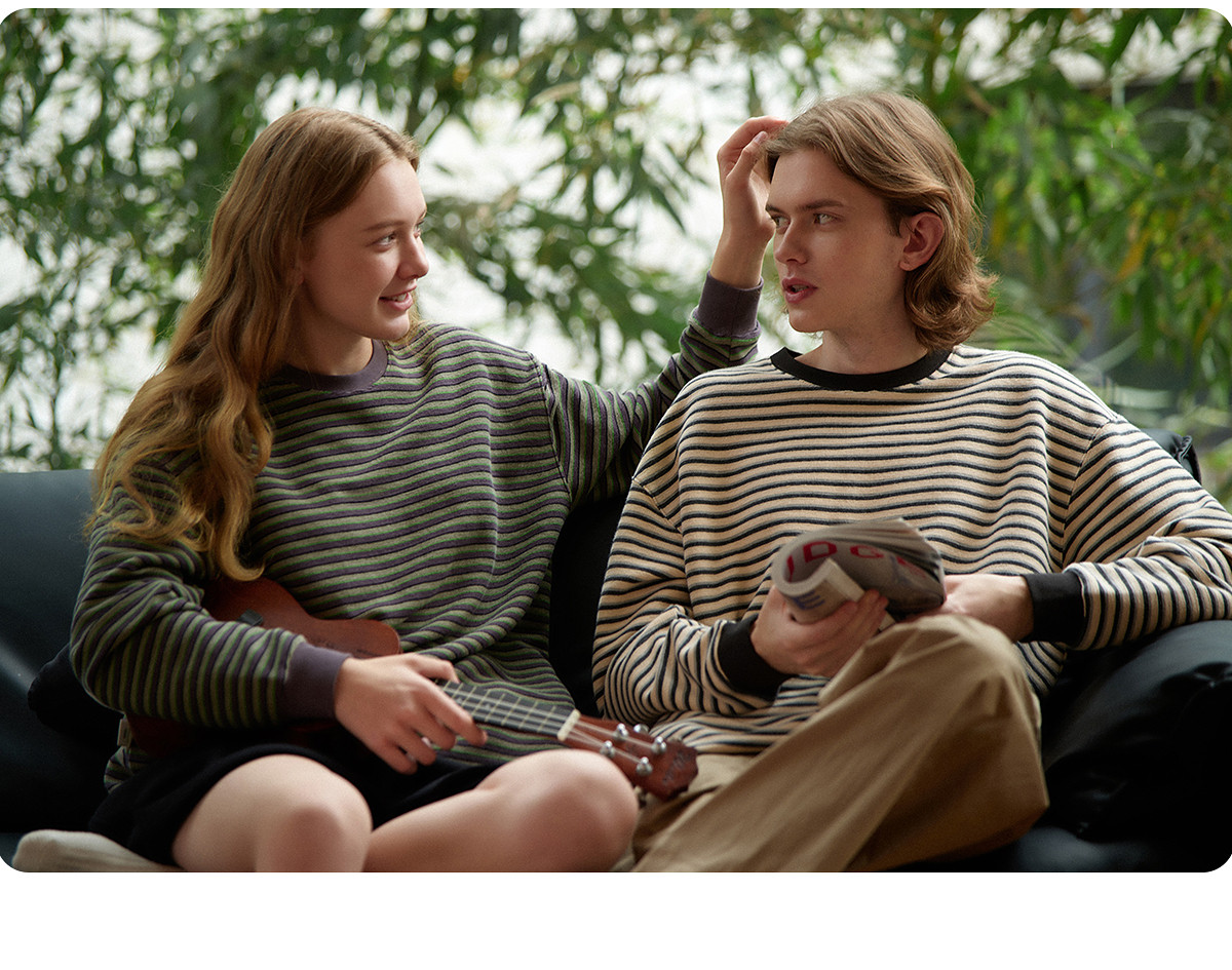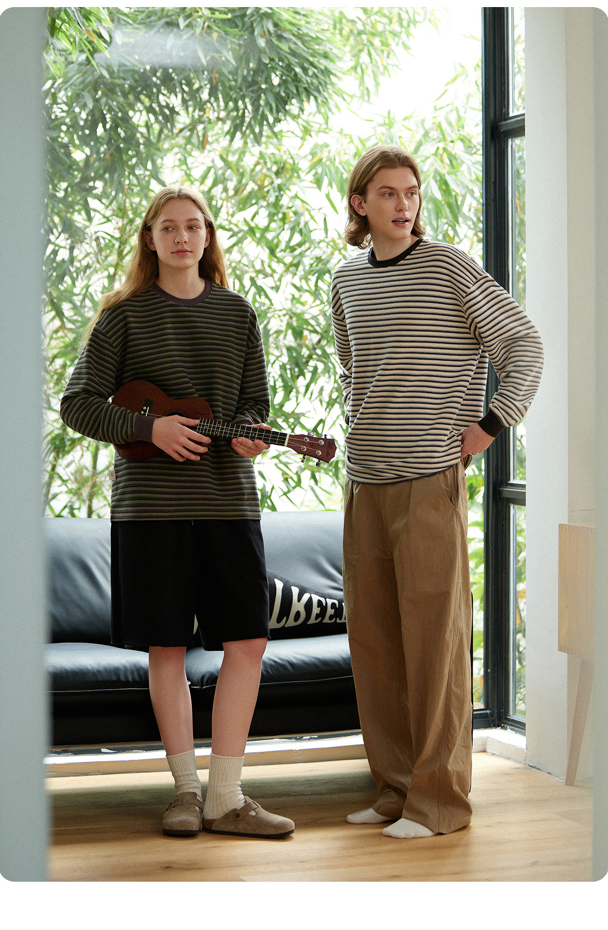 714street毛巾料条纹长袖T恤男女2025春季新款情侣装宽松圆领毛衣