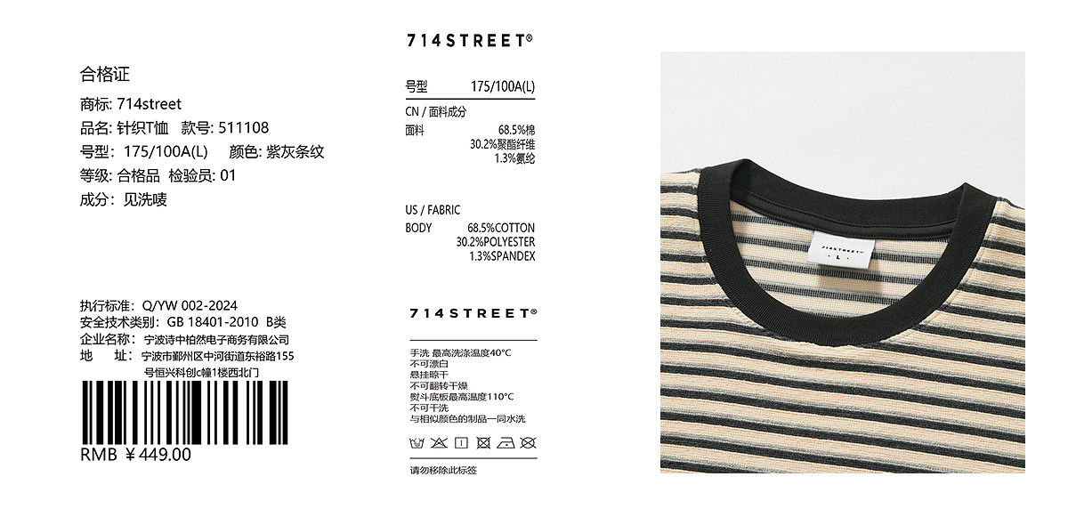 714street竹节纹渐变水洗直筒牛仔裤2026春季微宽松长裤男女同款
