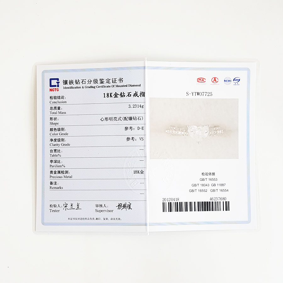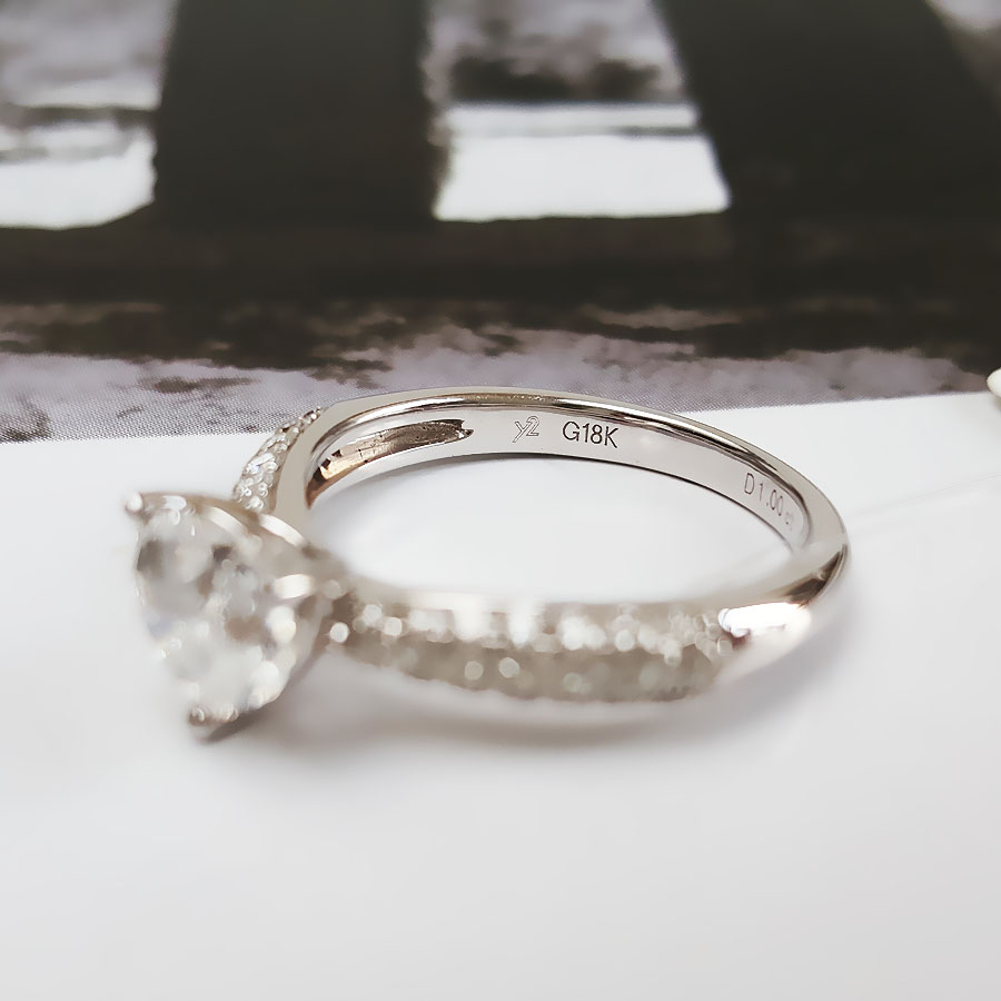 款式 | AU750白金经典简约三爪款心型1.0克拉钻石戒指 |