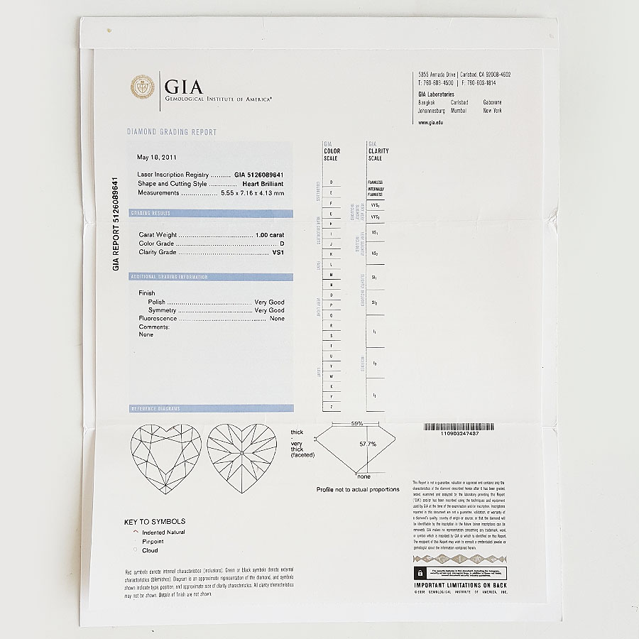 主石重量 | 1.0克拉(GIA:5126089641) |