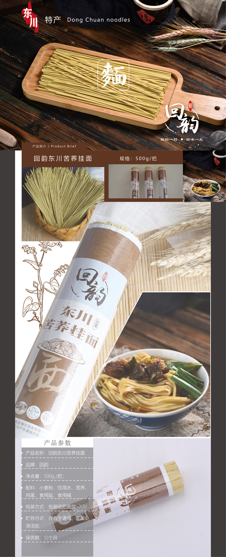 回韵东川苦荞面500g*3把装