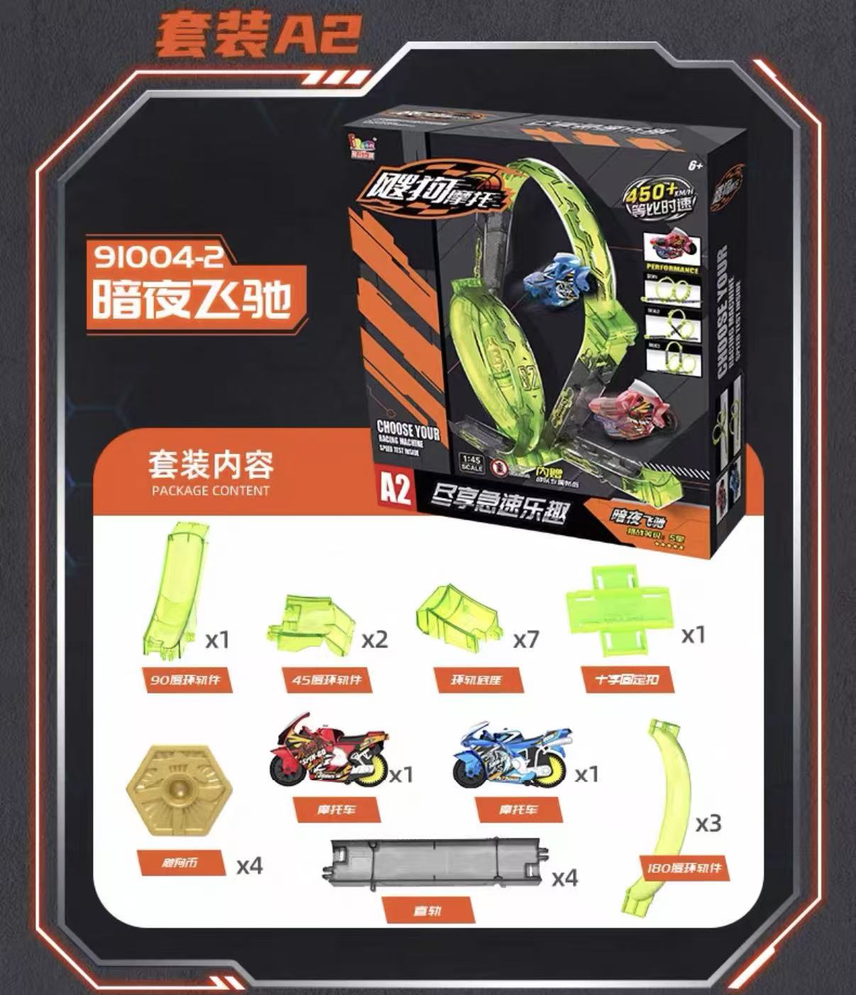 飕狗摩托车暗夜飞驰轨道套装儿童惯性滑行玩具新年礼物